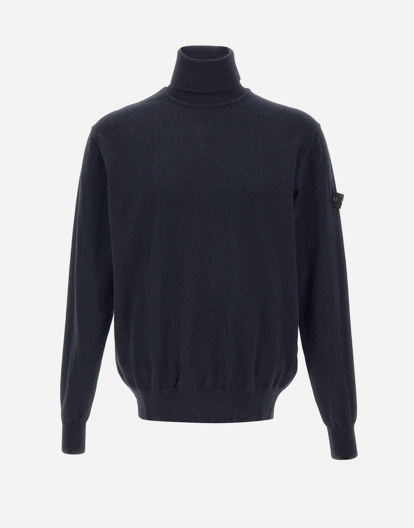 Maglia uomo Peuterey "Gorran 08" blu scuro, modello dolcevita realizzato in tricot di misto lana e cotone, caratterizzato da una texture morbida e compatta. Il design essenziale è impreziosito dal collo alto e dai dettagli a costine su polsini, fondo e collo, che assicurano una vestibilità confortevole e un aspetto curato. Sul braccio sinistro è applicato con due piccoli bottoncini il logo Peuterey Trilogy, simbolo iconico del brand. Un capo versatile e raffinato, perfetto per affrontare il freddo con stile ed eleganza. Made in Italy.