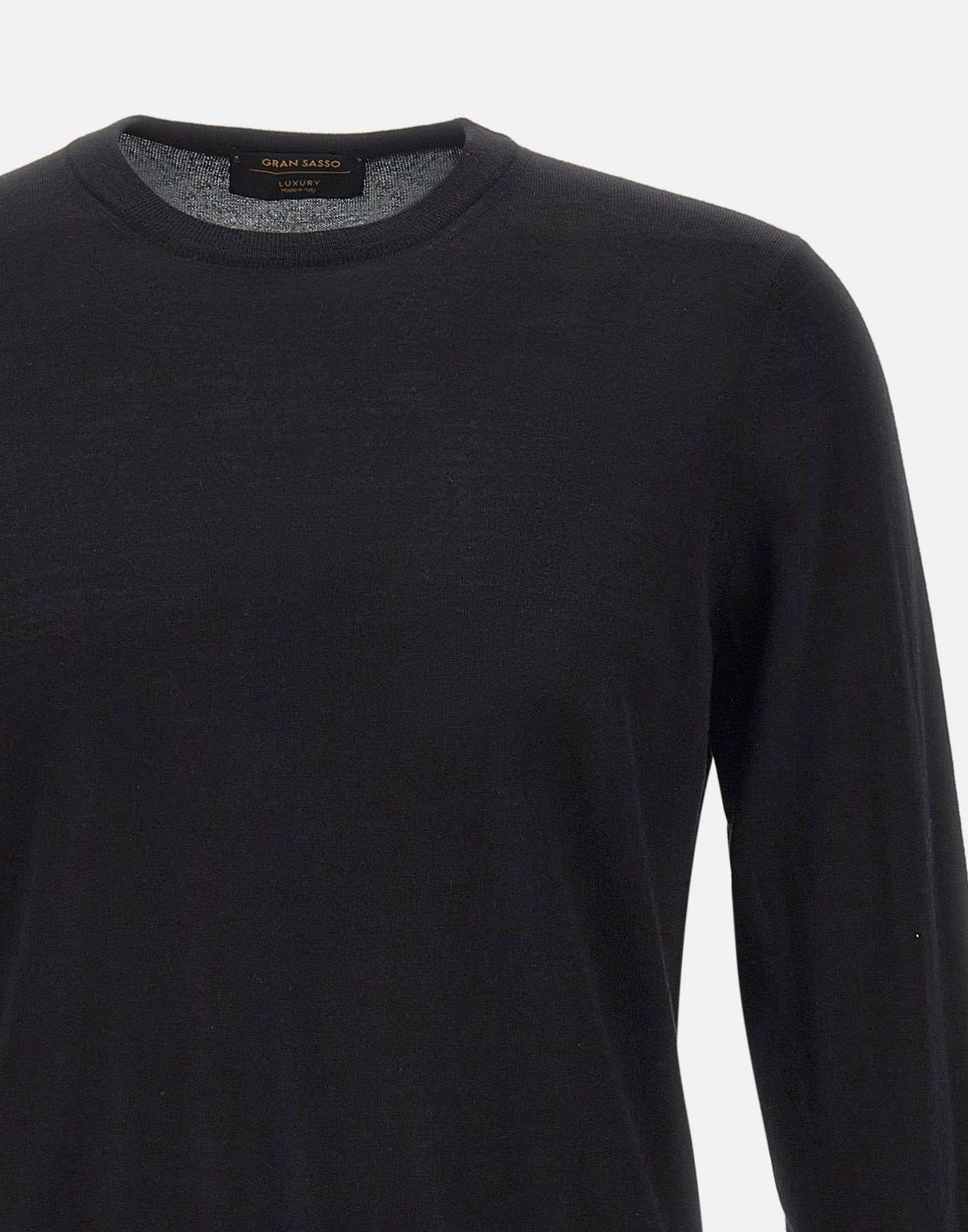 Maglia uomo Gran Sasso della Luxury Collection, un capo di alta qualità che unisce eleganza, comfort e artigianalità italiana. Realizzata con una preziosa composizione di cashmere e lana, offre una texture morbida, setosa e traspirante. Proposta nel classico nero, presenta maniche lunghe, girocollo classico, bordi a costine e una vestibilità regular fit che valorizza ogni silhouette. Un capo 100% made in Italy, perfetto per chi cerca raffinatezza e qualità senza tempo