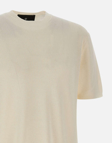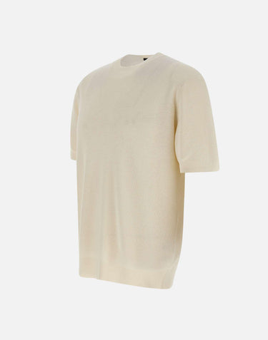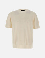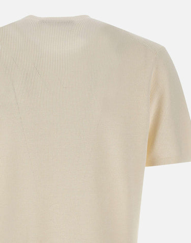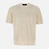 Maglia uomo Filippo De Laurentiis in crêpe di cotone, colore latte, maniche corte, girocollo, orli a costine, filato leggero e fresco ultracomfort, regular fit, made in Italy.