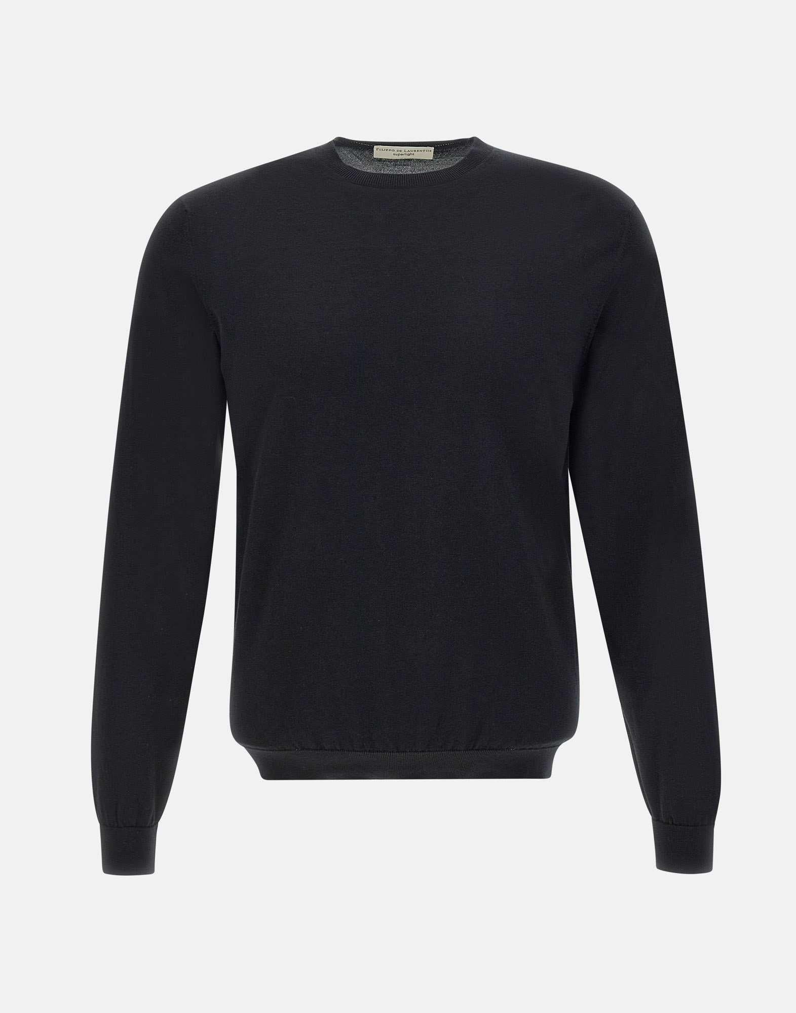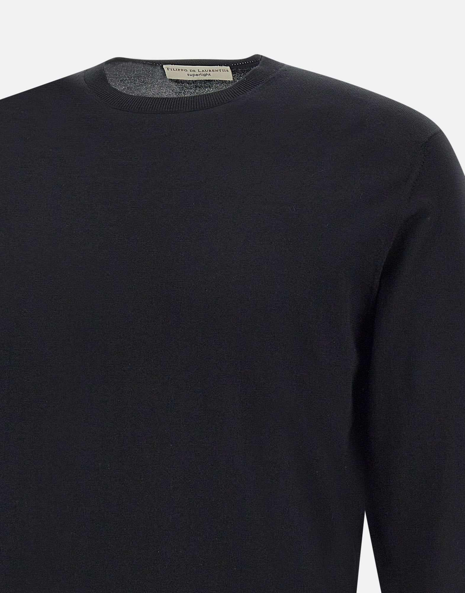 Maglia uomo Filippo De Laurentiis in cotone superlight, colore nero, girocollo, maniche lunghe, orli a costine, regular fit. Made in Italy.