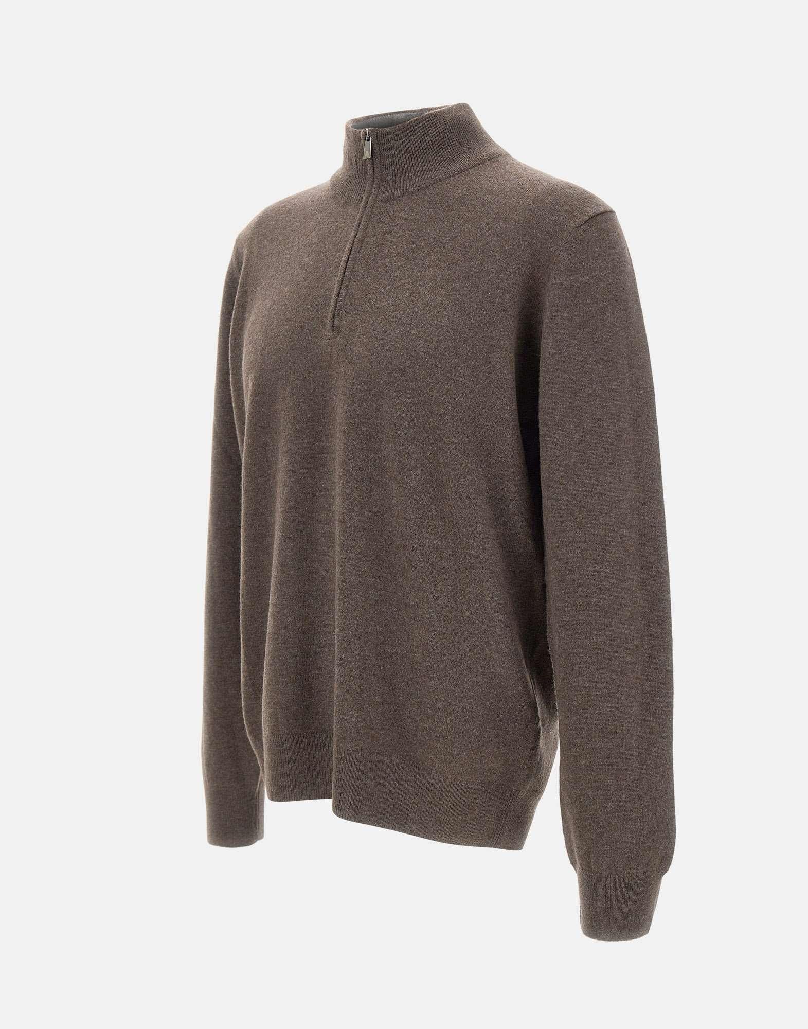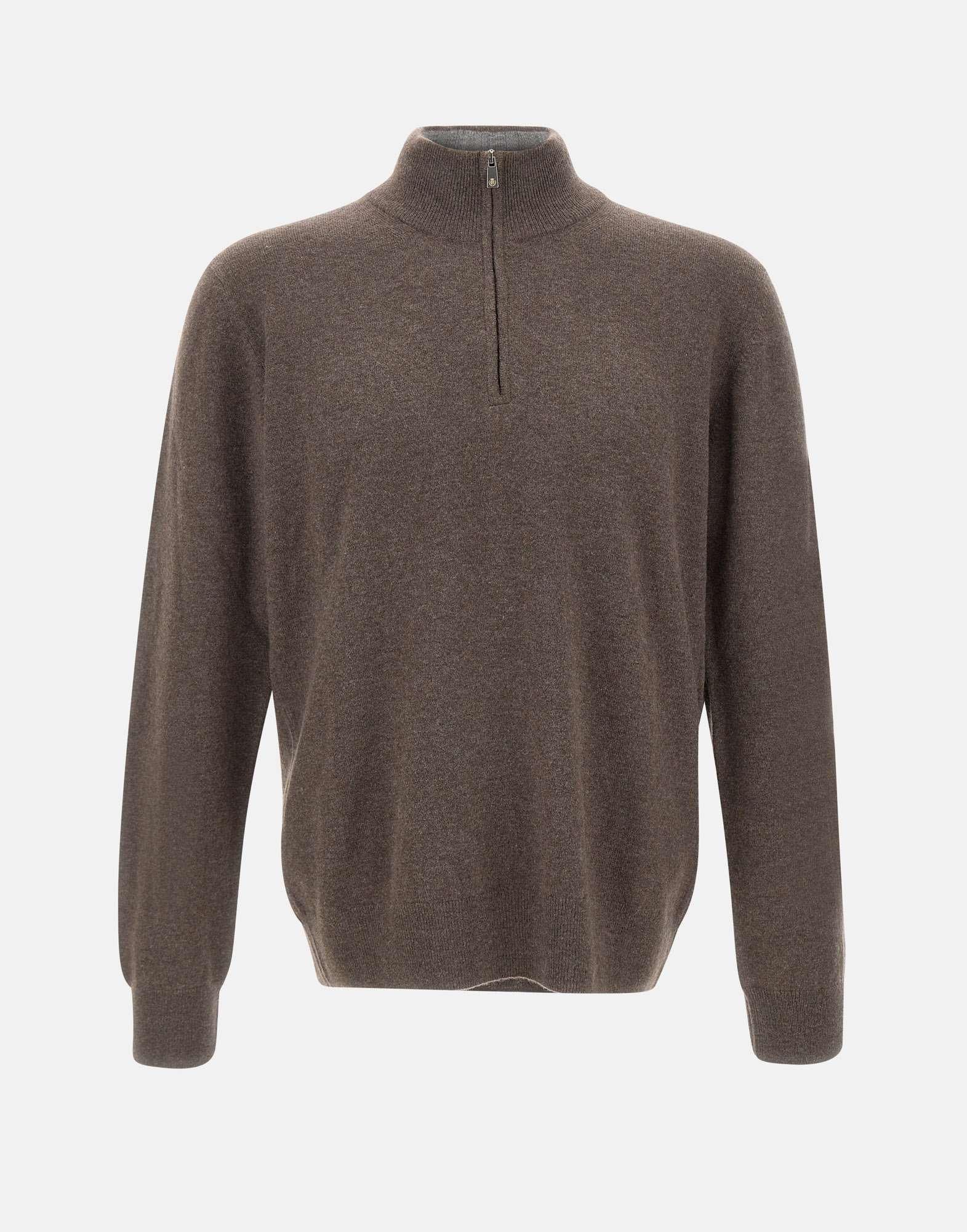 Maglia Della Ciana Cashmere color tortora intenso, realizzata in pregiato misto lana e cashmere per una morbidezza e un calore unici. Design con colletto in piedi e chiusura a mezza zip, perfetta per uno stile raffinato e contemporaneo. Rifinita con bordi a costine su polsini e fondo per una vestibilità confortevole e duratura. Regular fit. Made in Italy, garanzia di qualità e artigianalità.