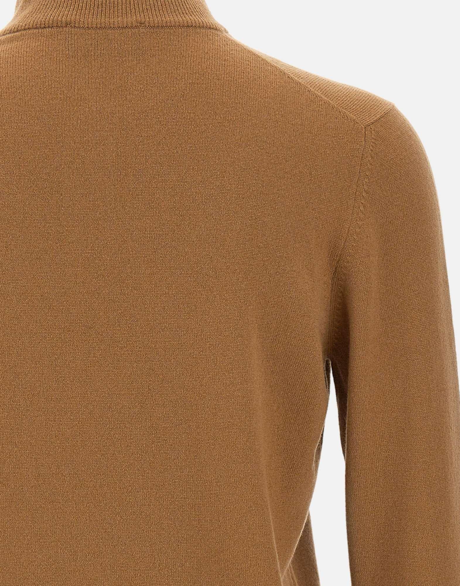 Maglia Gran Sasso in lana e cashmere nel color cammello, il perfetto equilibrio tra lusso, comfort e artigianalità italiana. Il modello lupetto presenta un collo alto con chiusura mezza zip, ideale per regolare la vestibilità e aggiungere un tocco moderno e raffinato.I bordi a costine e la vestibilità regular fit assicurano una linea elegante e confortevole, perfetta per look casual chic o più formali. Made in Italy.