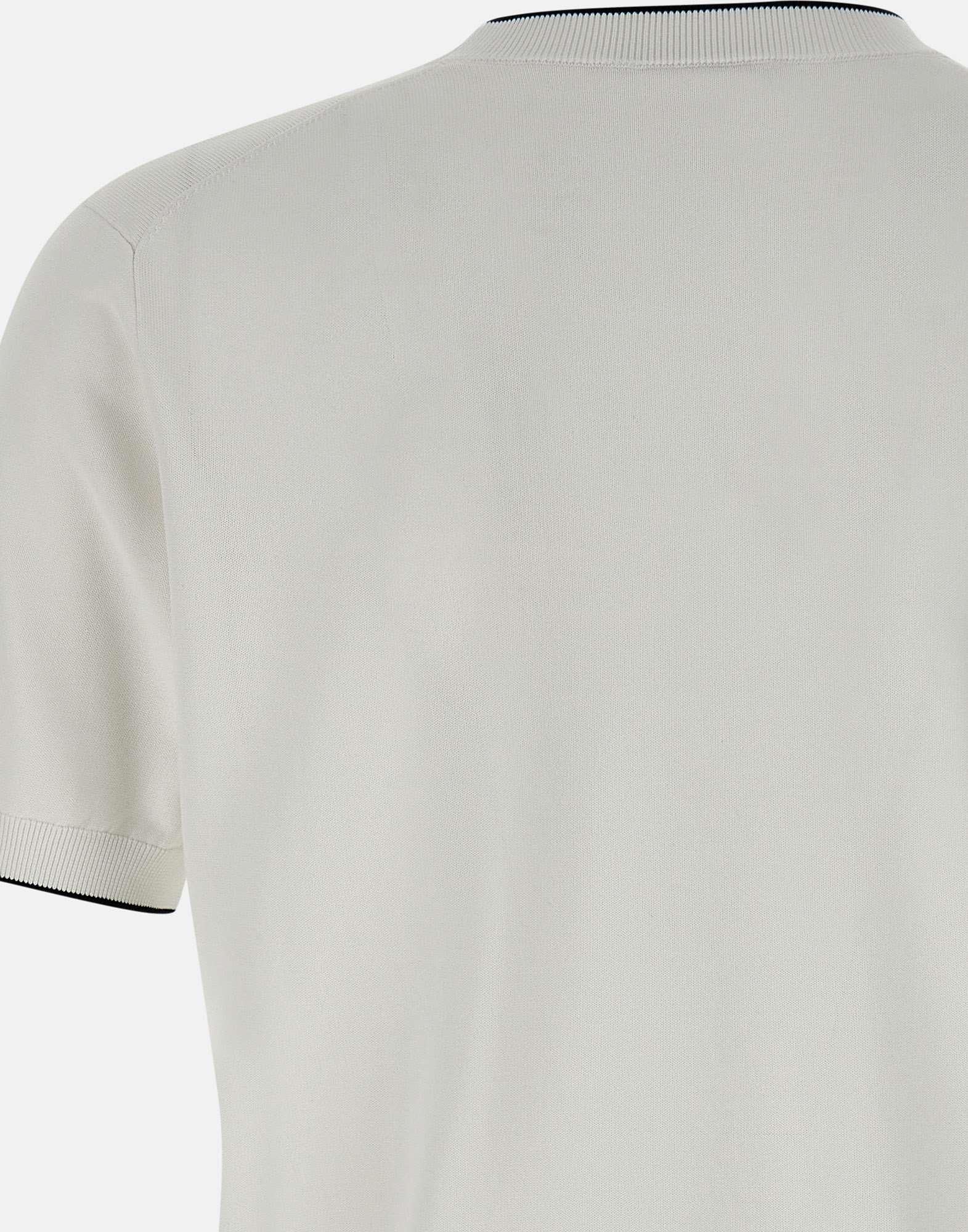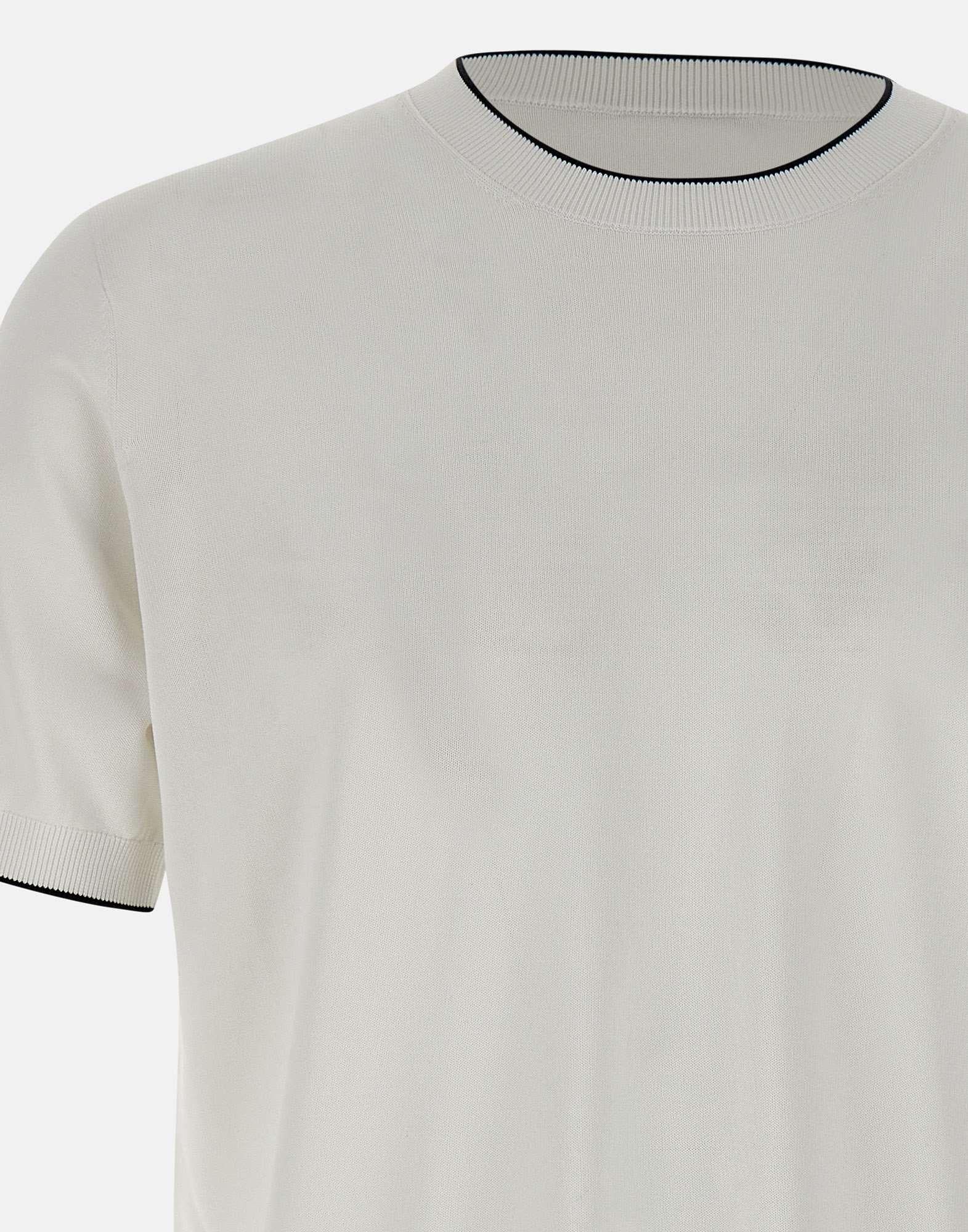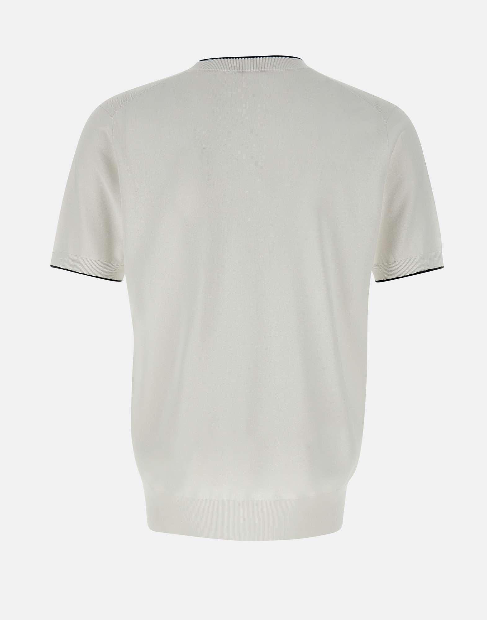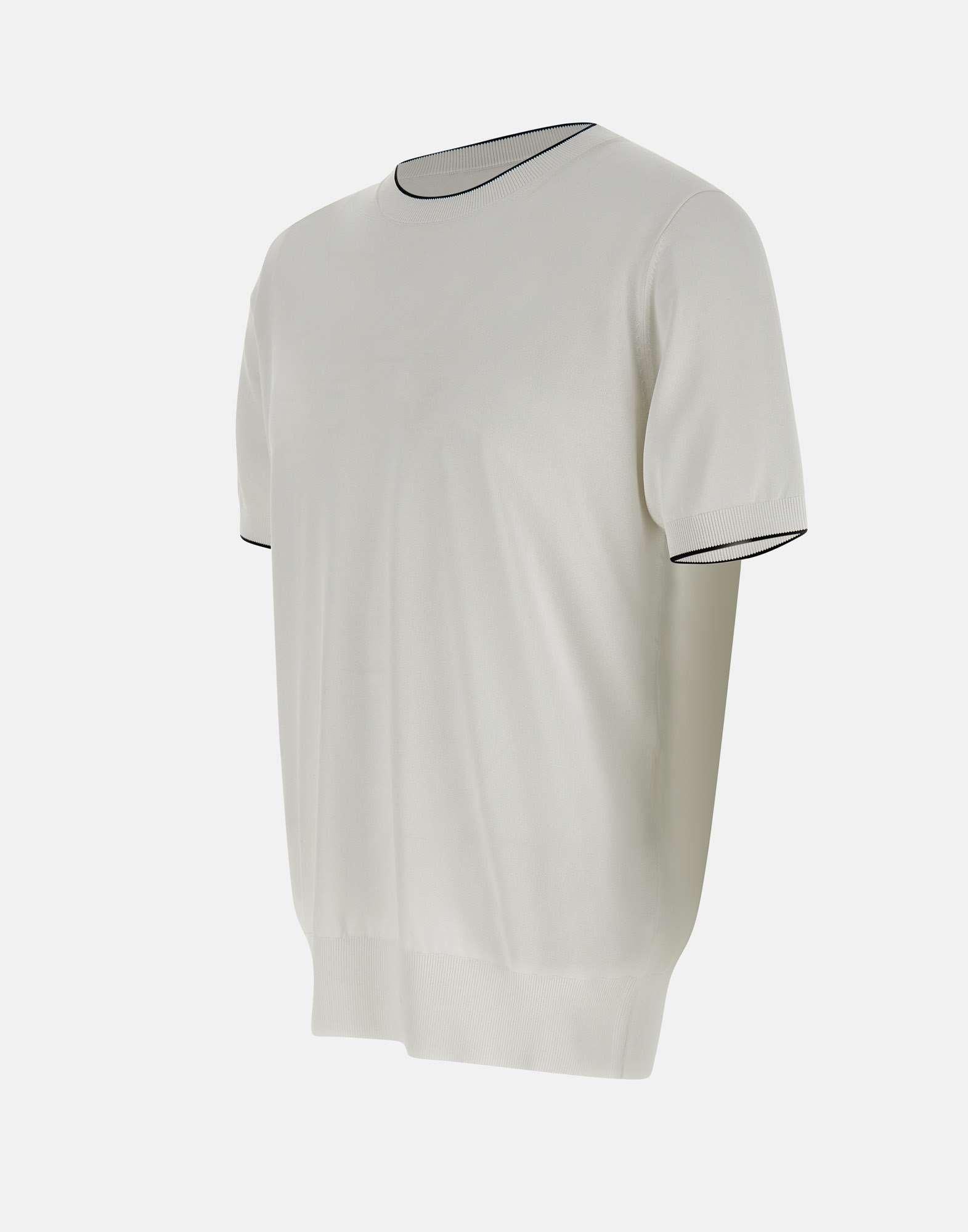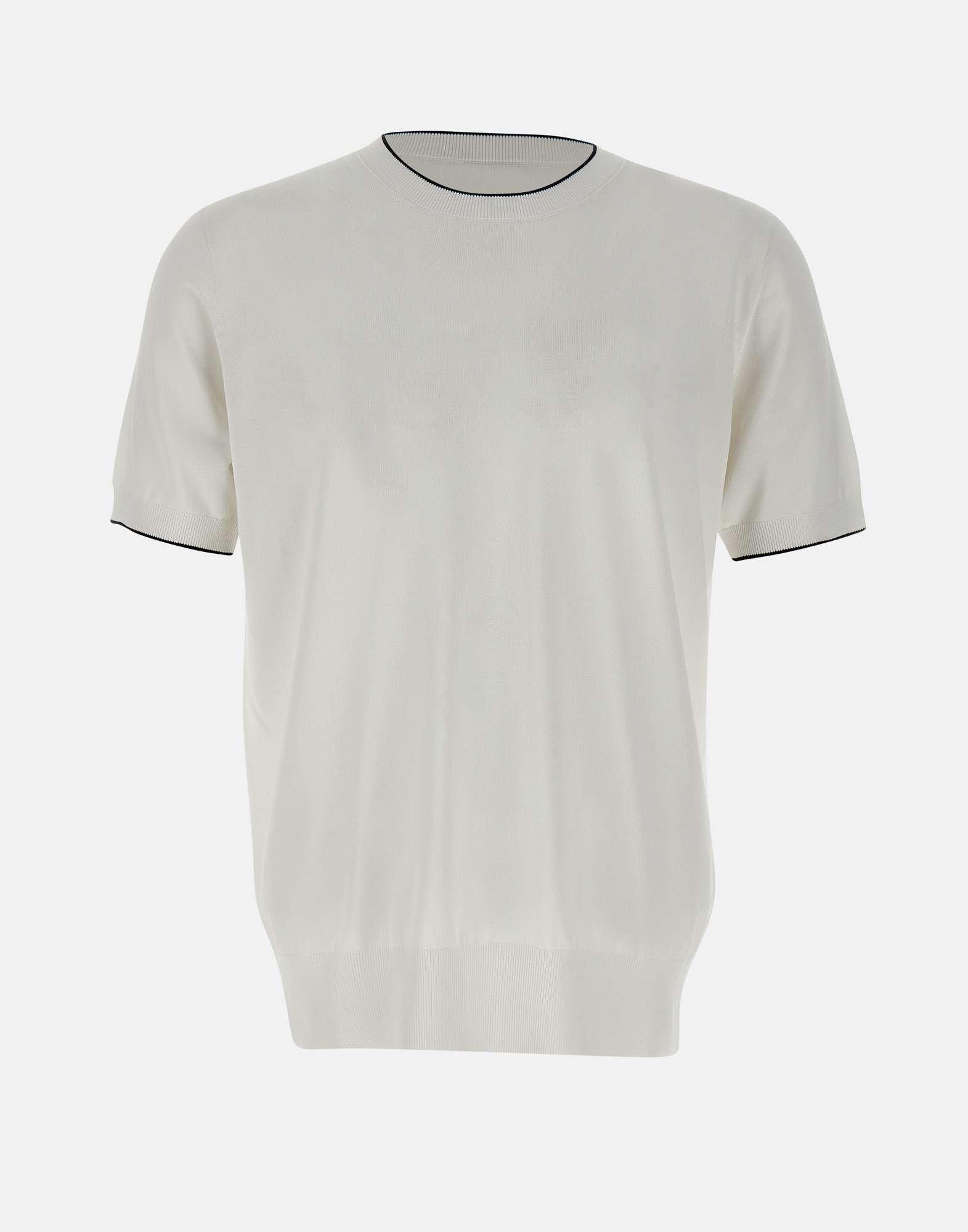 Maglia uomo Kangra, colore bianco, in viscosa e cotone, maniche corte, girocollo, bordi a costine con riga colore a contrasto, regular fit.