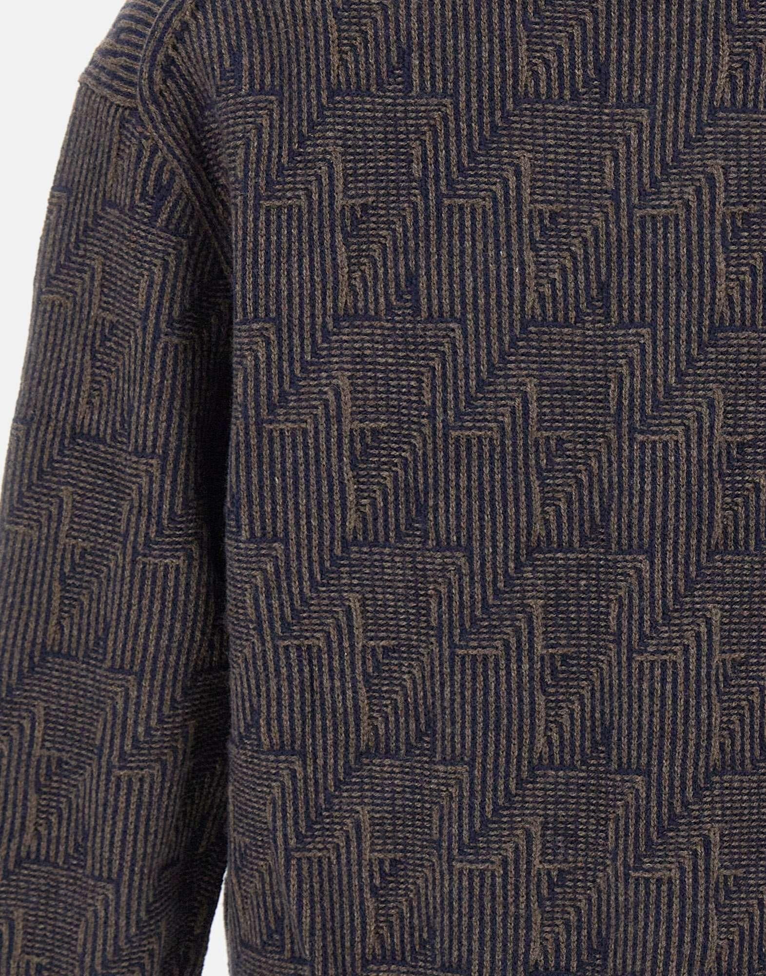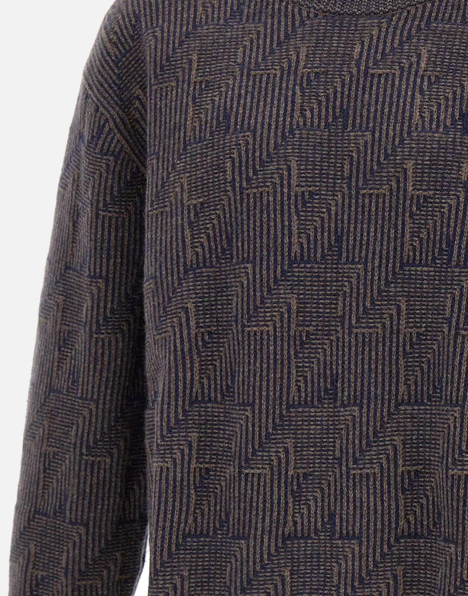 Maglia Paul Smith "Sweater Crew Neck" in 100% lana merino, caratterizzata da una raffinata fantasia optical nei toni del blu violaceo e marrone. Il modello presenta girocollo, maniche lunghe e bordi a costine a contrasto, con una lavorazione a punto fine che valorizza la texture del filato. Un capo iconico e confortevole dal regular fit, perfetto per look sofisticati e contemporanei.