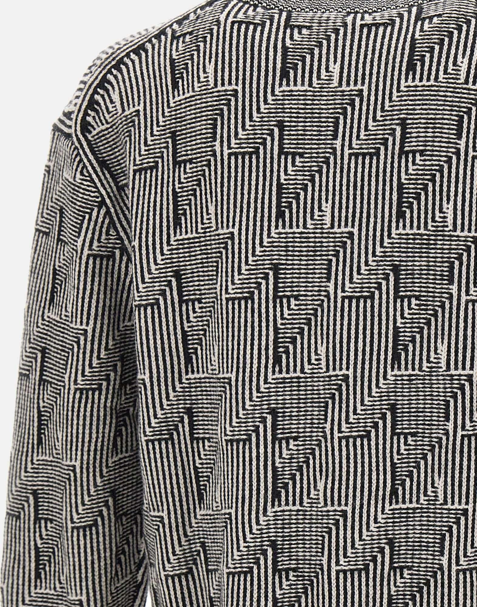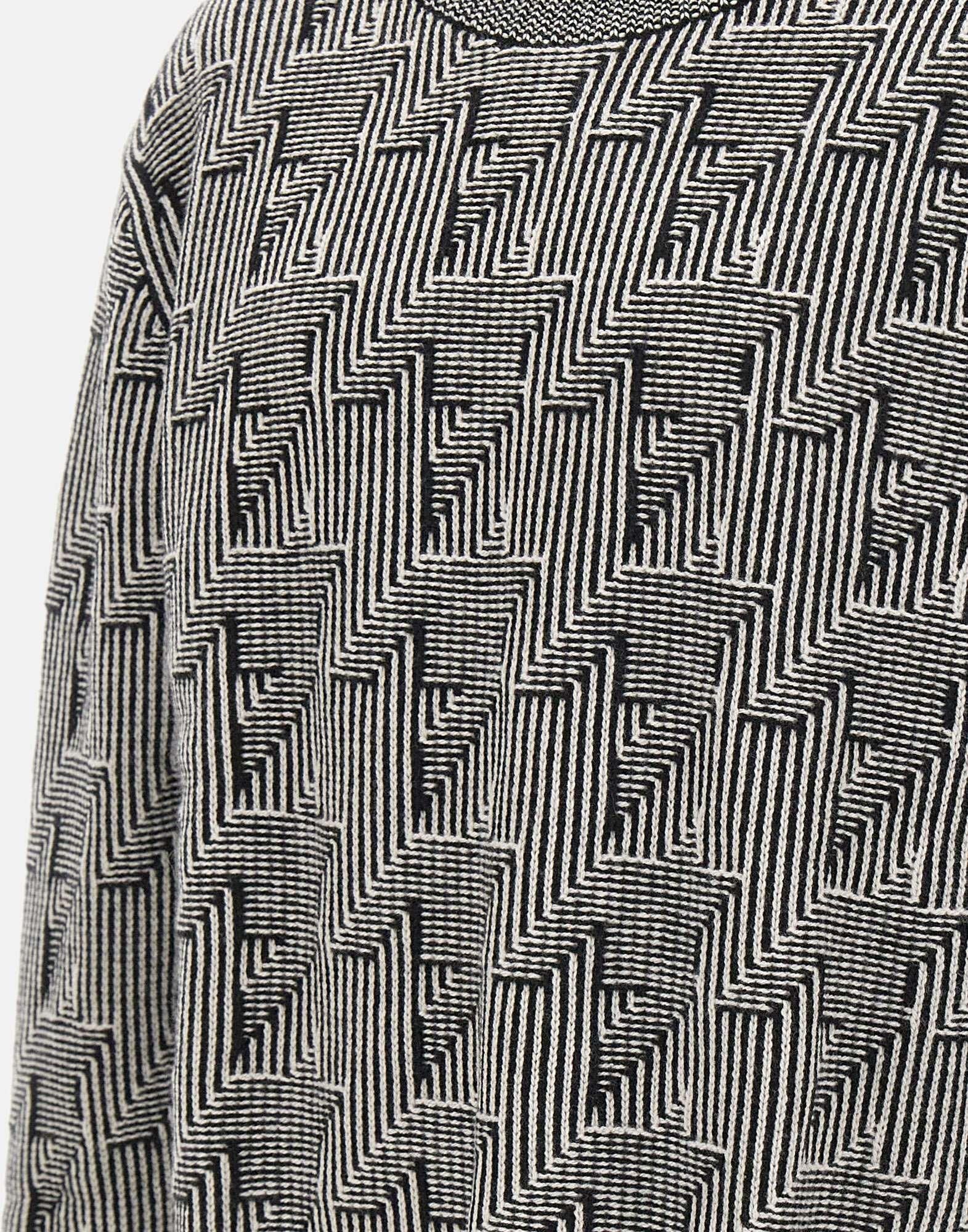 Maglia Paul Smith "Sweater Crew Neck" in 100% lana merino, caratterizzata da una raffinata fantasia optical nei toni del nero e bianco. Il modello presenta girocollo, maniche lunghe e bordi a costine a contrasto, con una lavorazione a punto fine che valorizza la texture del filato. Un capo iconico e confortevole dal regular fit, perfetto per look sofisticati e contemporanei.