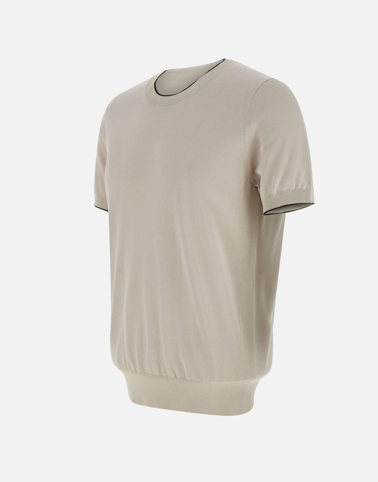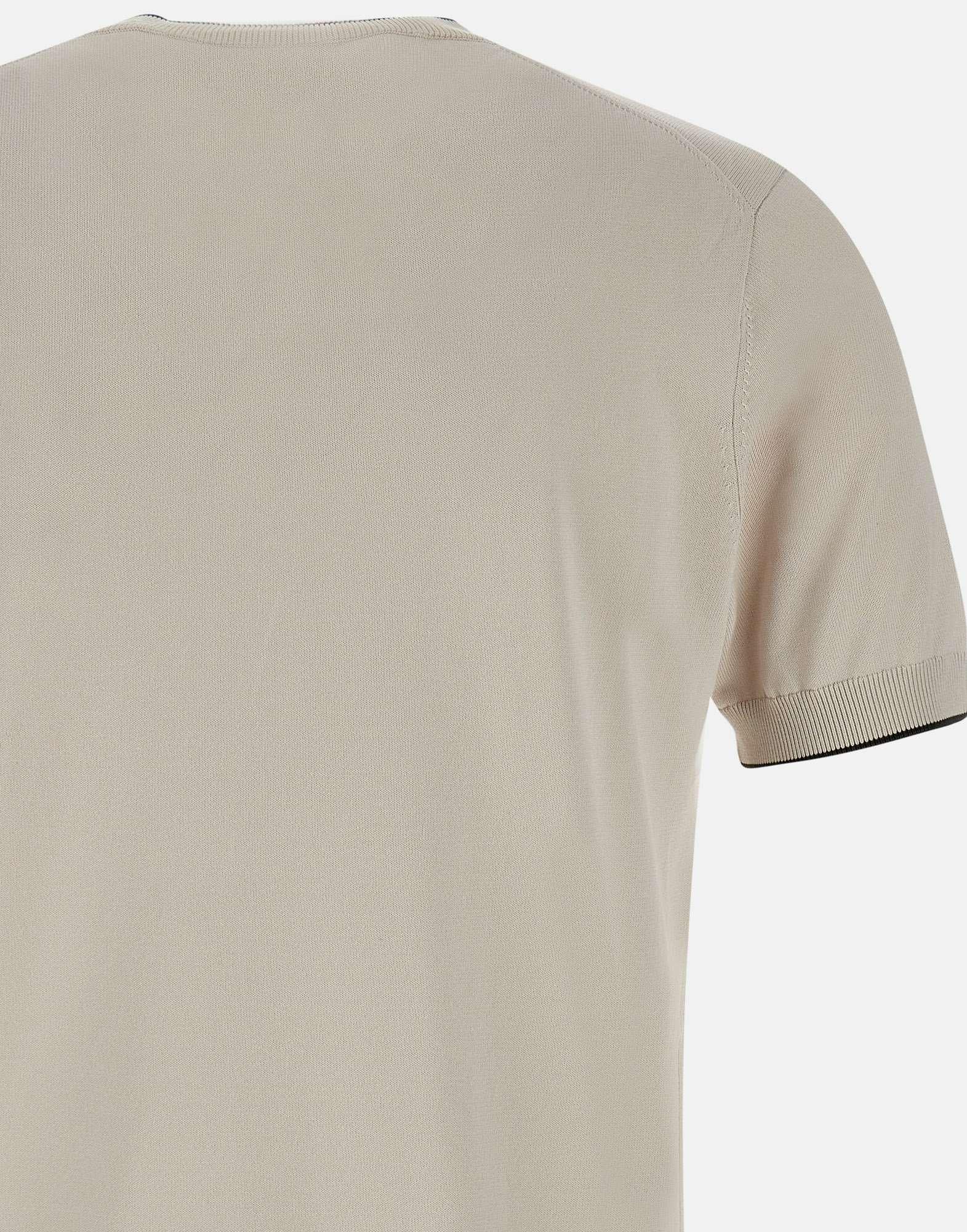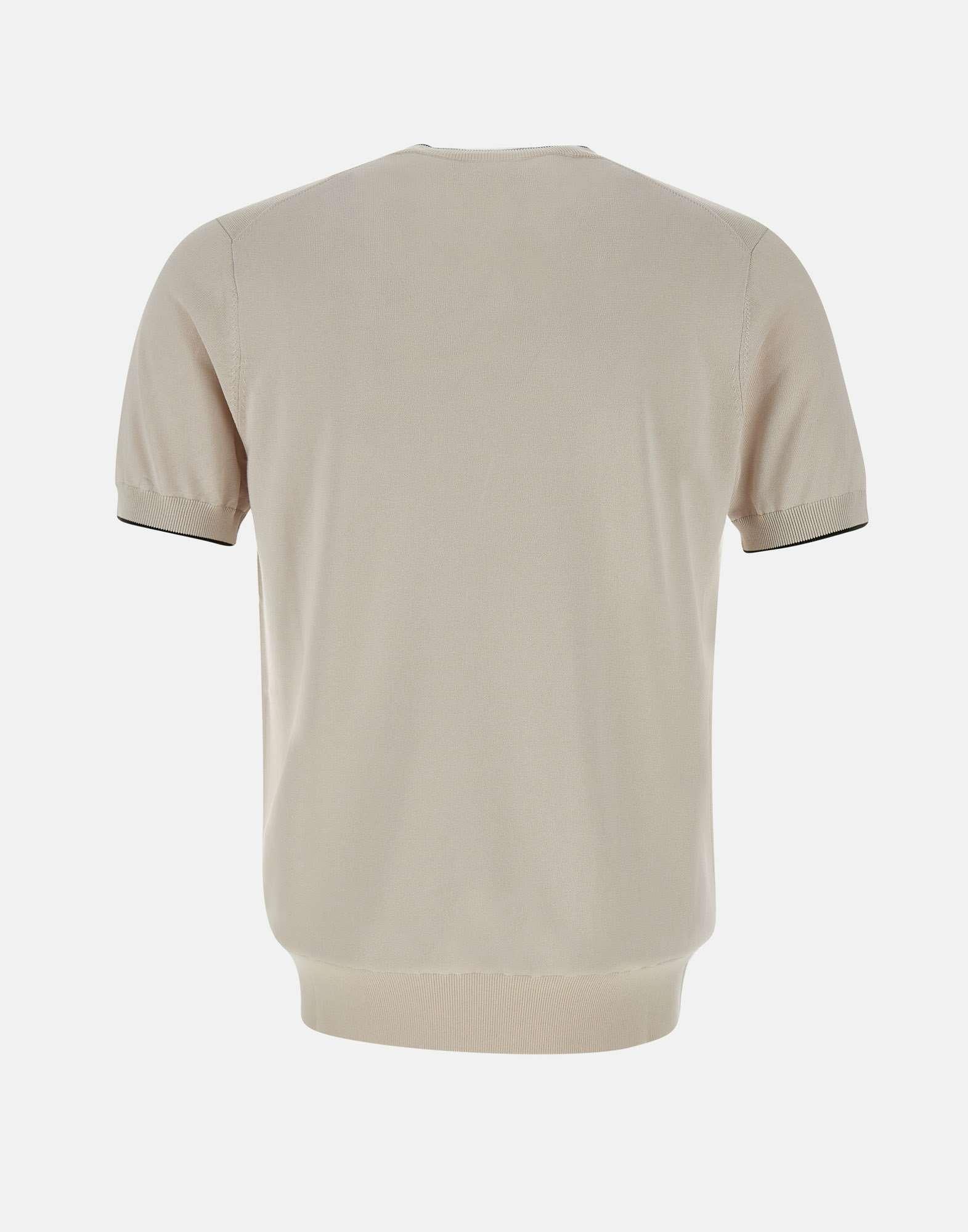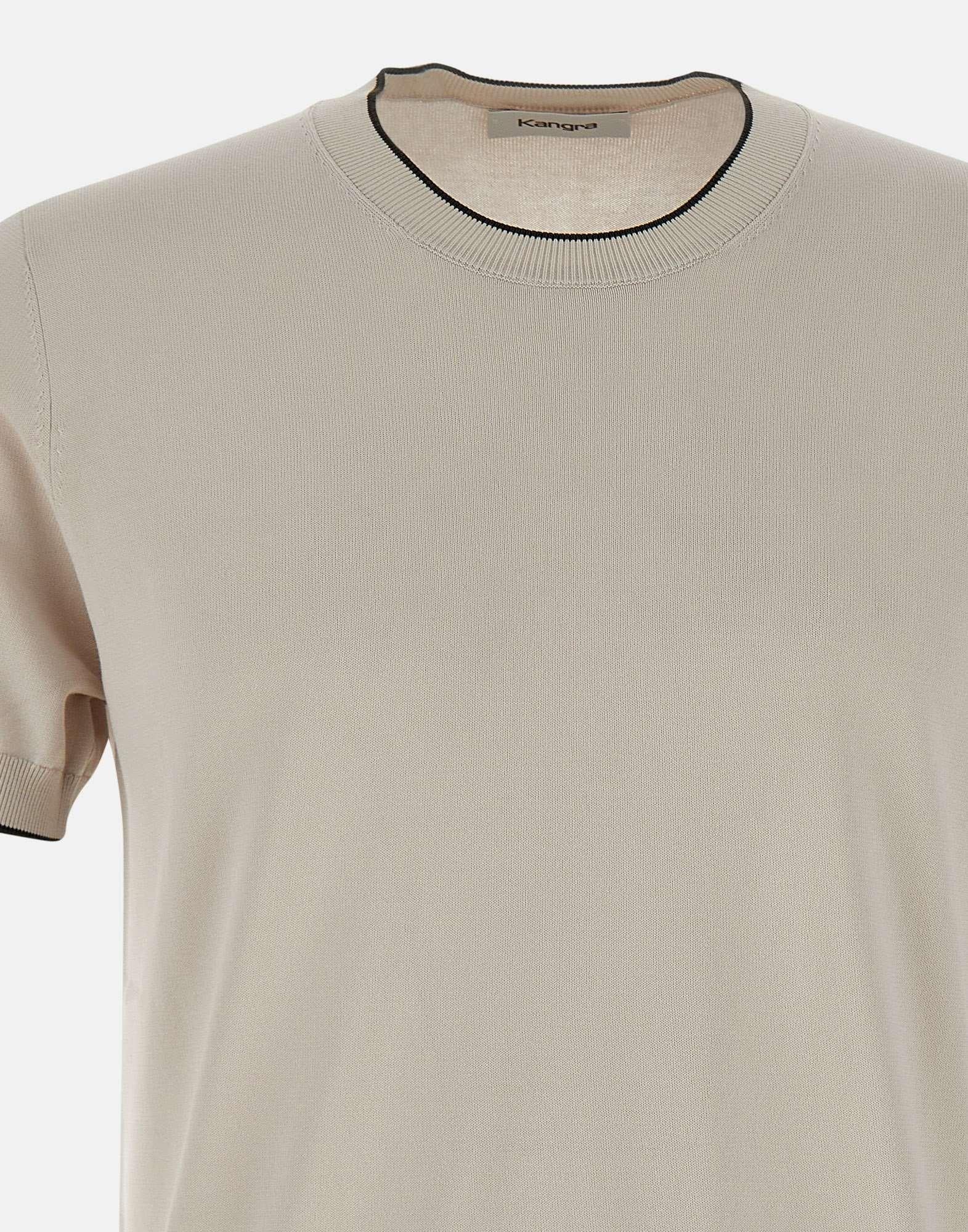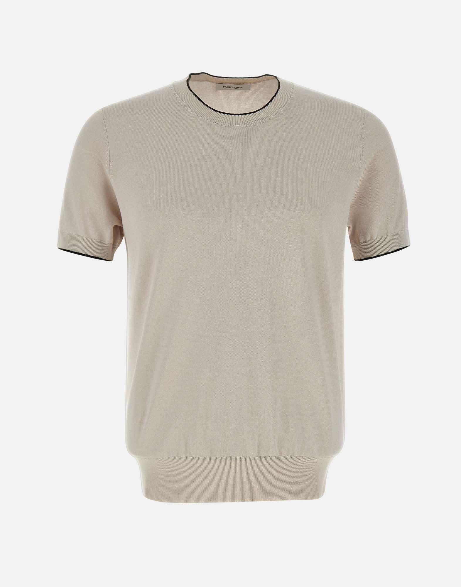 T-shirt uomo Kangra in cotone e viscosa, colore ecrù, profili a contrasto di colore, bordi a costine, girocollo, maniche corte, regular fit