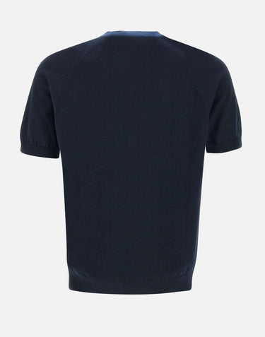 T-shirt uomo Gran Sasso in cotone organico, blu navy, maniche corte, girocollo con profilo a contrasto di colore, bordi a costine, regular fit, made in Italy