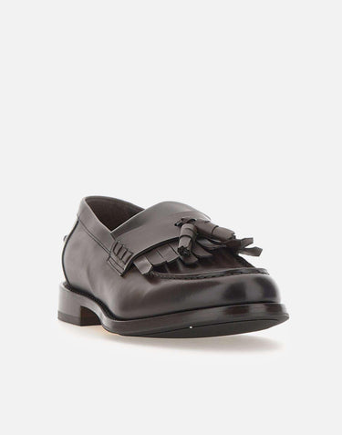 Mocassini Doucal’s "Decò" realizzati in pelle liscia color testa di moro, impreziositi da nappine decorative e impunture a contrasto che ne sottolineano l’artigianalità. La soletta logata, la suola in cuoio e gomma tono su tono e la calzata regolare garantiscono comfort e durata. Un modello elegante e senza tempo, simbolo della maestria calzaturiera italiana.