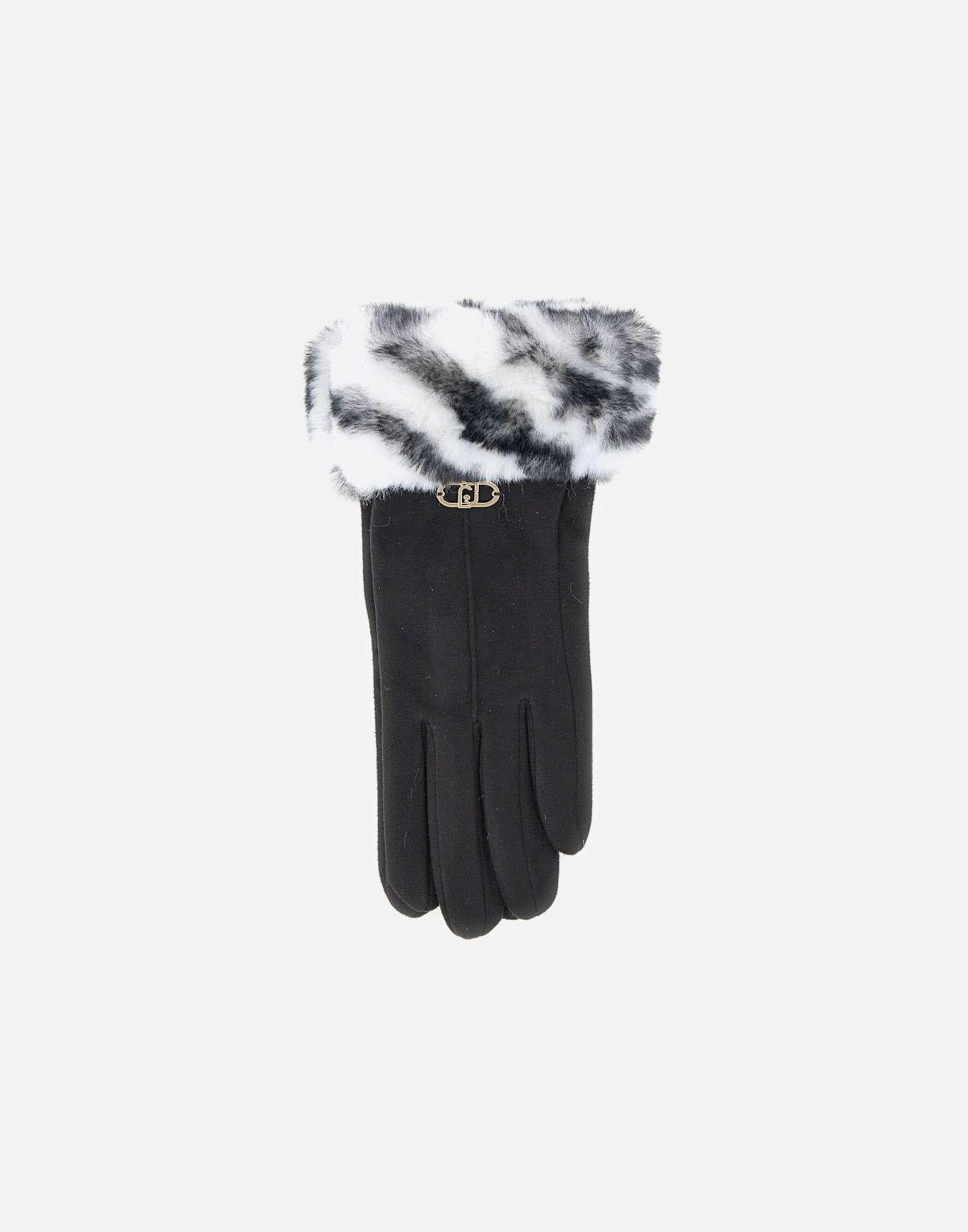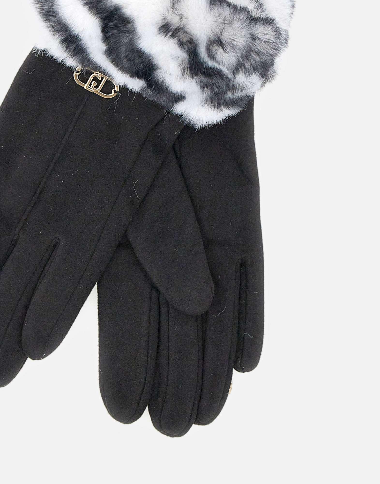 Guanti donna Liu-Jo in tessuto effetto scamosciato nero, eleganti e femminili. Presentano logo in metallo sul polso e dettaglio in pelliccia sintetica meshato in bianco e nero che aggiunge un tocco morbido e sofisticato. Taglia unica, perfetti per completare con stile i look invernali.
