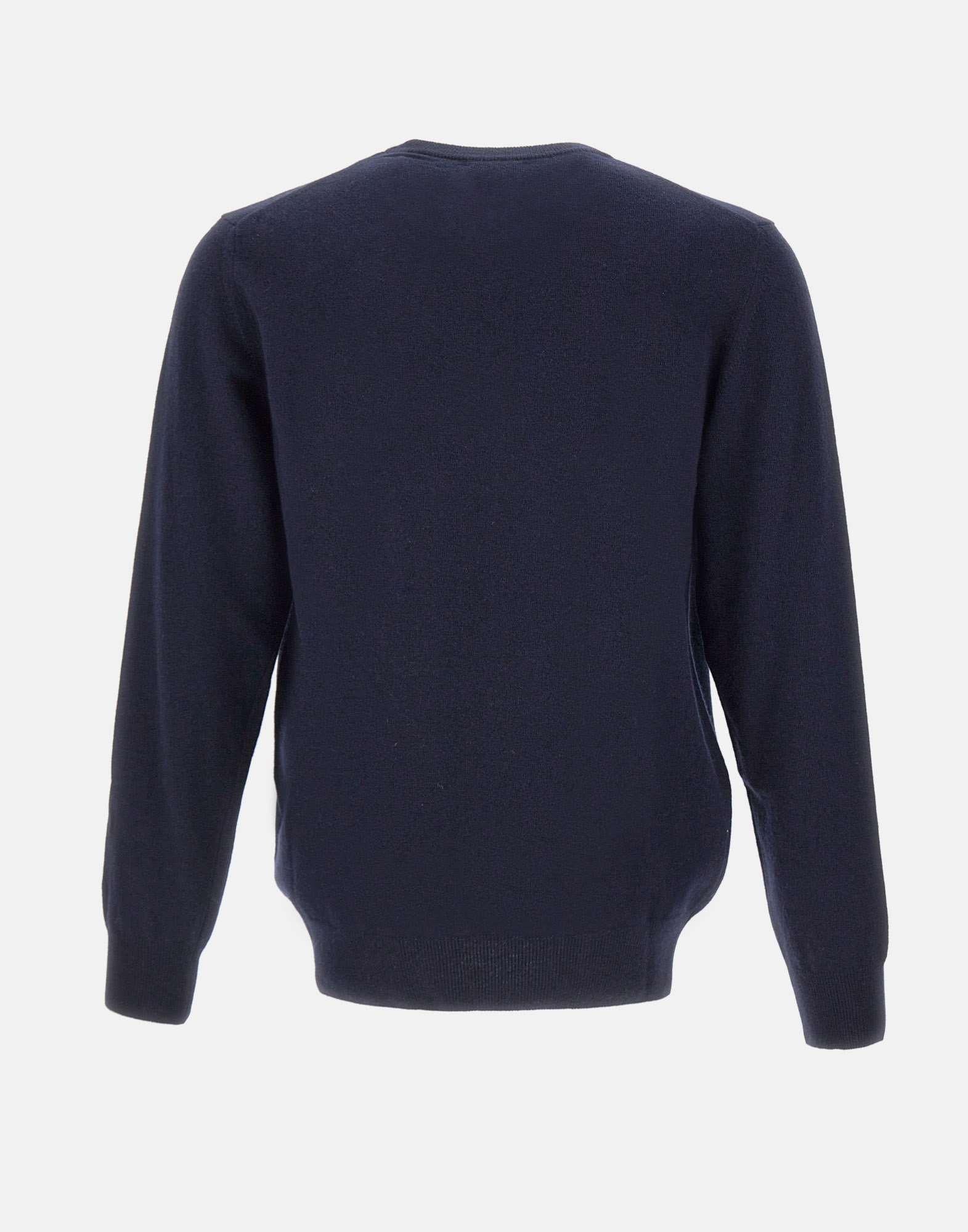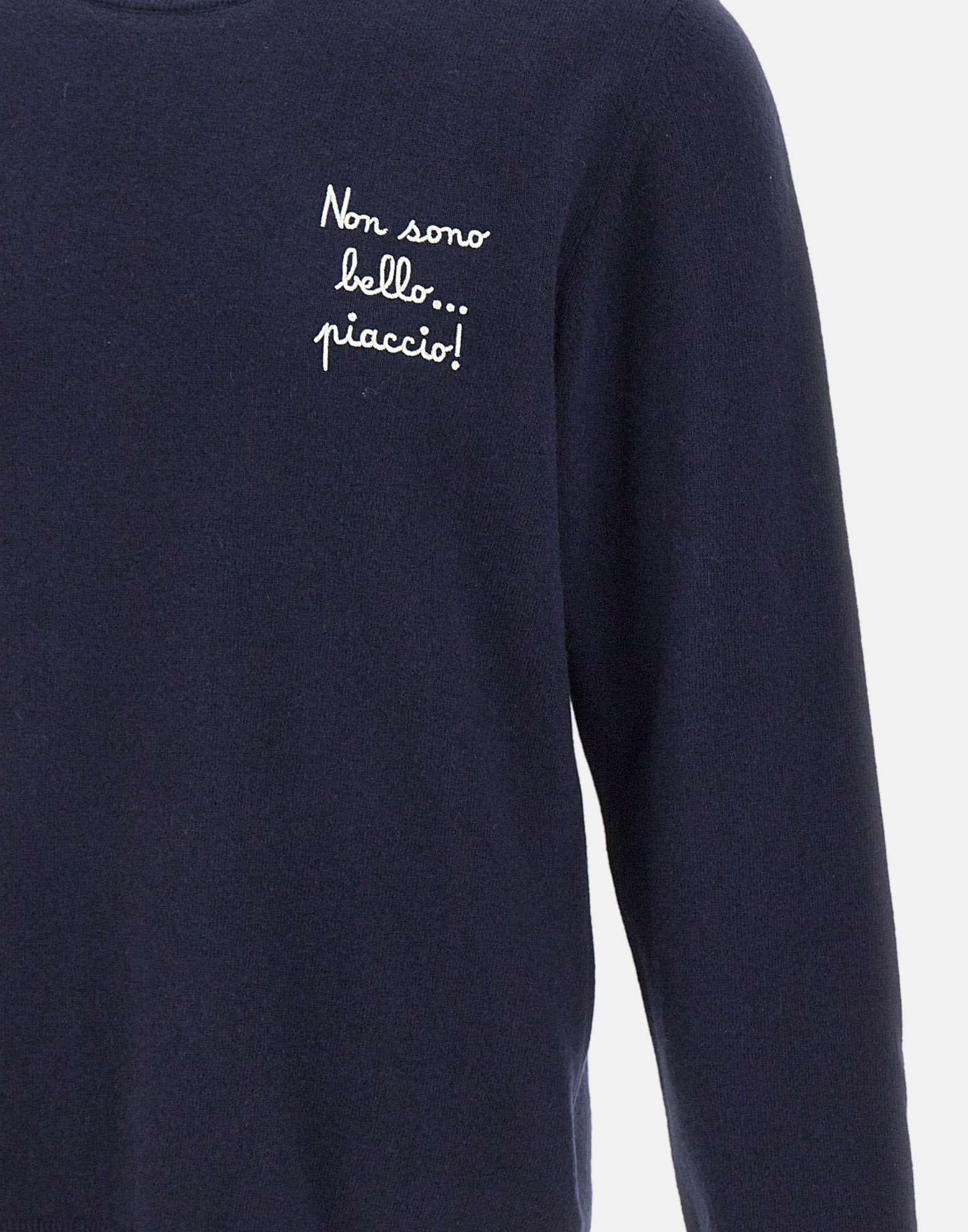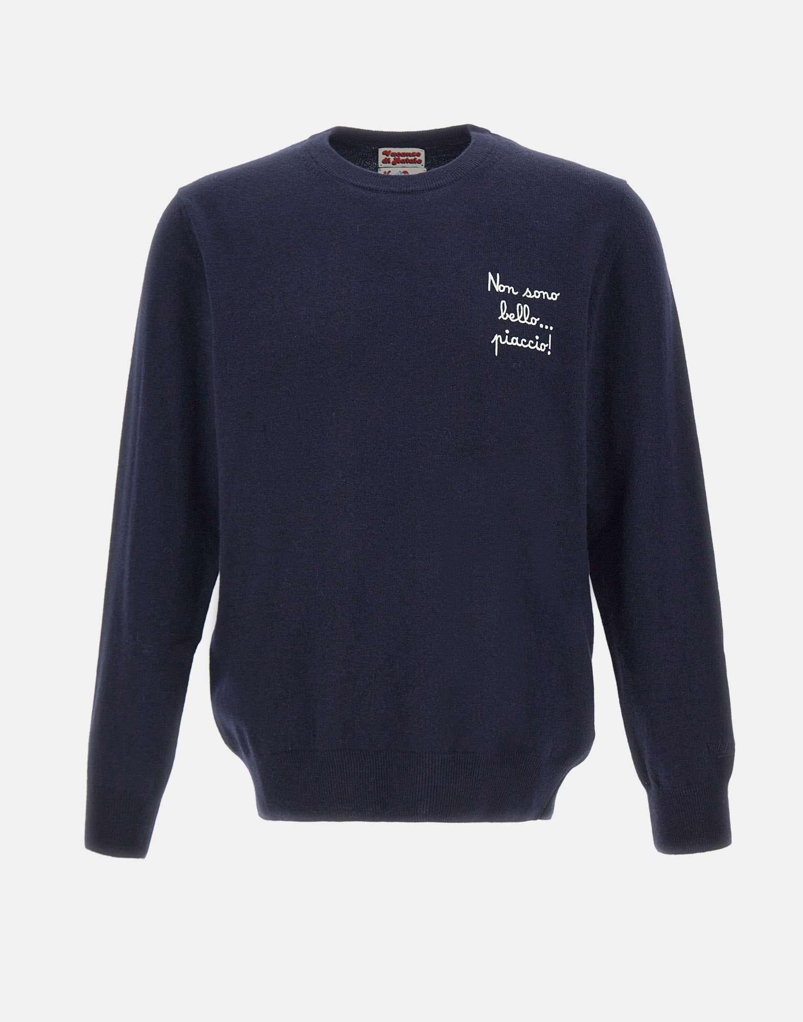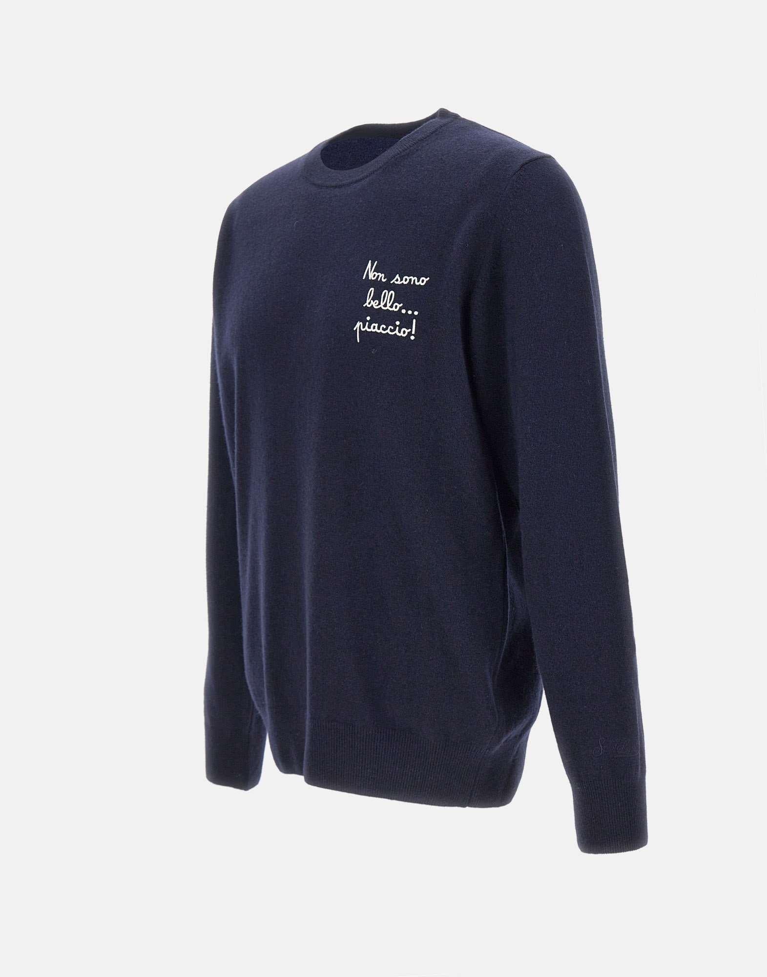 Mc2 Saint Barth "Heron Vacanze Non sono bello piaccio" Vacanze di Natale Limited Edition, maglia colore blu navy realizzata in morbido filato caldo misto lana e cashmere, ideale per le feste invernali. Presenta maniche lunghe, girocollo classico e bordi a costine per una vestibilità confortevole. Il logo a contrasto di colore e ricamo sul petto aggiunge un tocco iconico e completa il design. Regular fit.