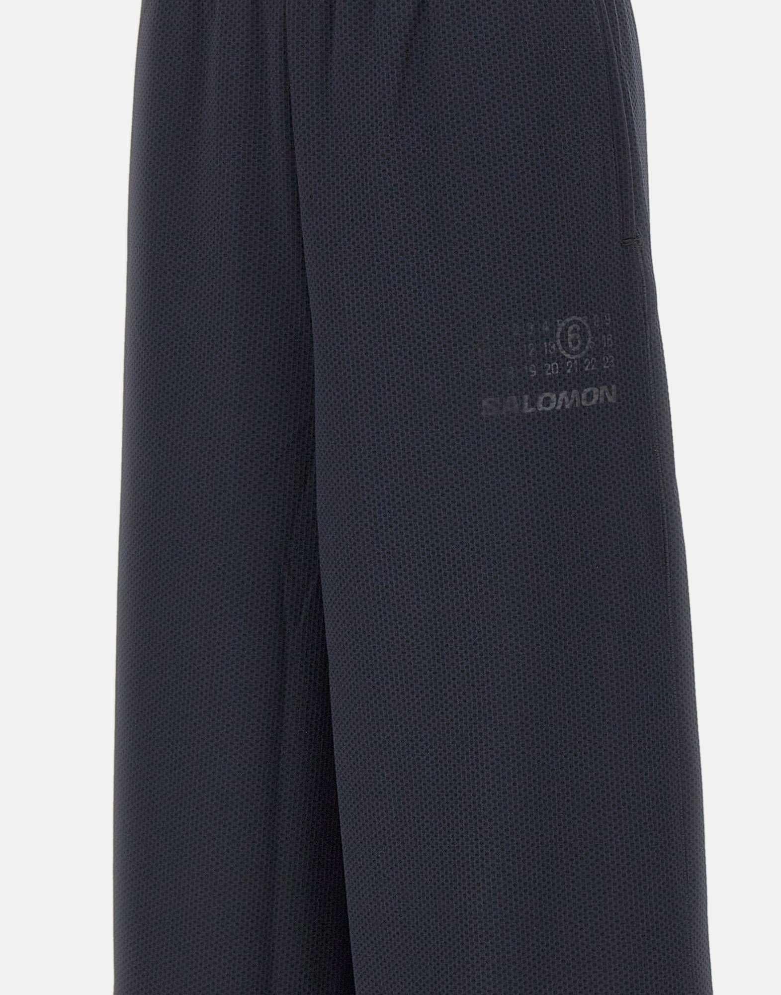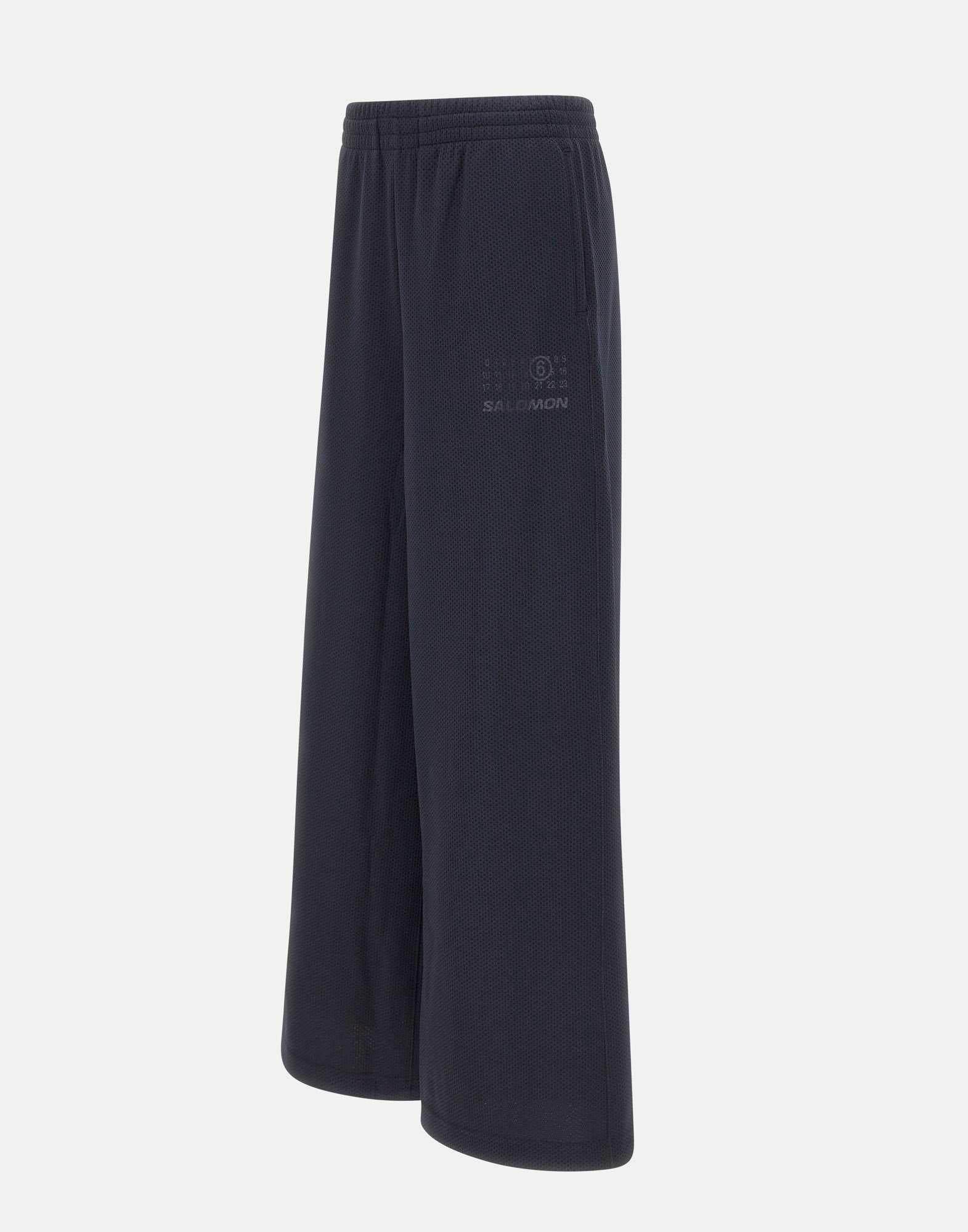 Pantaloni MM6 Maison Margiela x Salomon combinano funzionalità outdoor e design fashion-forward in un capo dallo stile deciso e contemporaneo. Realizzati in tessuto tecnico a trama nido d'ape di alta qualità, sono proposti nellessenziale color nero. La silhouette extra wide è definita da una vita elasticata con coulisse, tasche laterali a filo e fondo gamba regolabile da 32 cm, per una vestibilità dinamica e personalizzabile. Il look è arricchito dal logo Signature Numeric tono su tono sul davanti e dalliconica impuntura bianca MM6 sul retro, segno distintivo della maison. Il taglio relaxed fit li rende perfetti per chi cerca un pantalone tecnico ma dal forte impatto estetico.