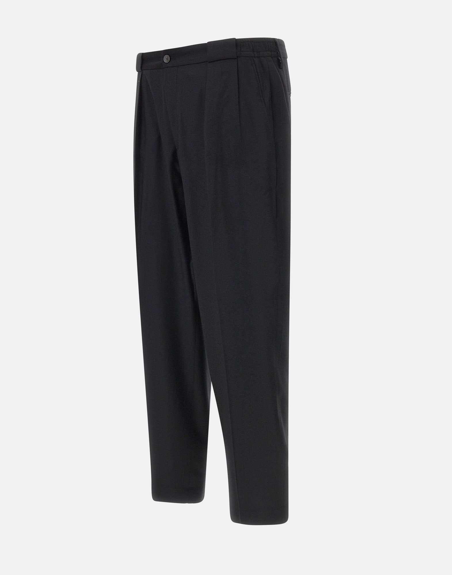 Pantaloni uomo Briglia 1949 "PortobelloS", nero, in lana e cashmere, Luxury Fabric Collection, Linea “Racconta la Sartoria”, vita regolare parzialmente elasticata con passanti per cintura, chiusura con zip e bottone logato in tinta, tasche laterali a filetto, doppia pince frontale, tasche posteriori con bottoni logati, vestibilità regolare easy fit. Fondo: 18 cm. Lavaggio a mano. Made in Italy.