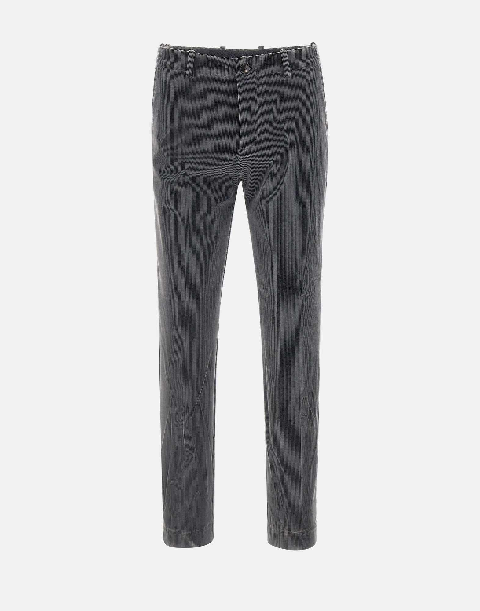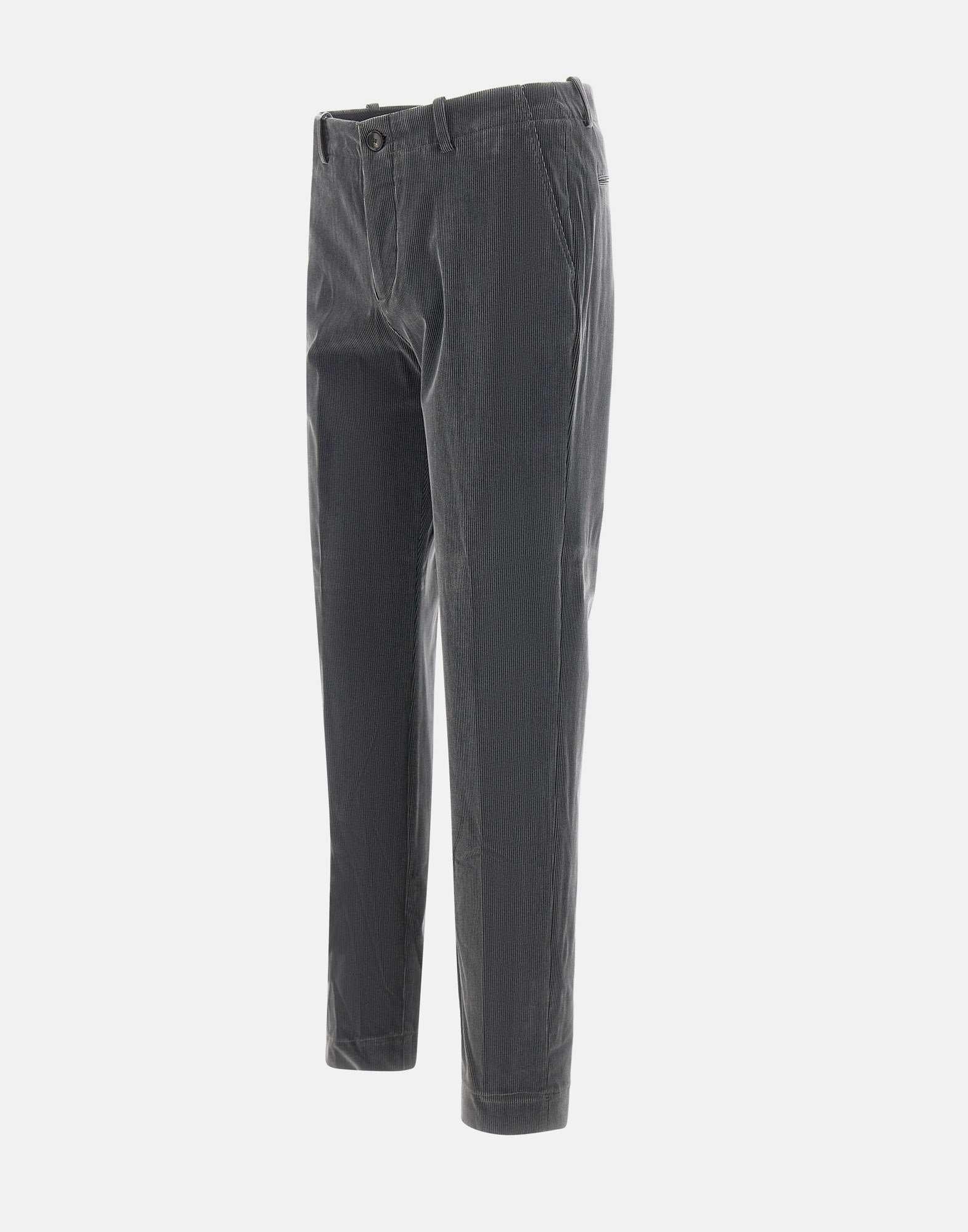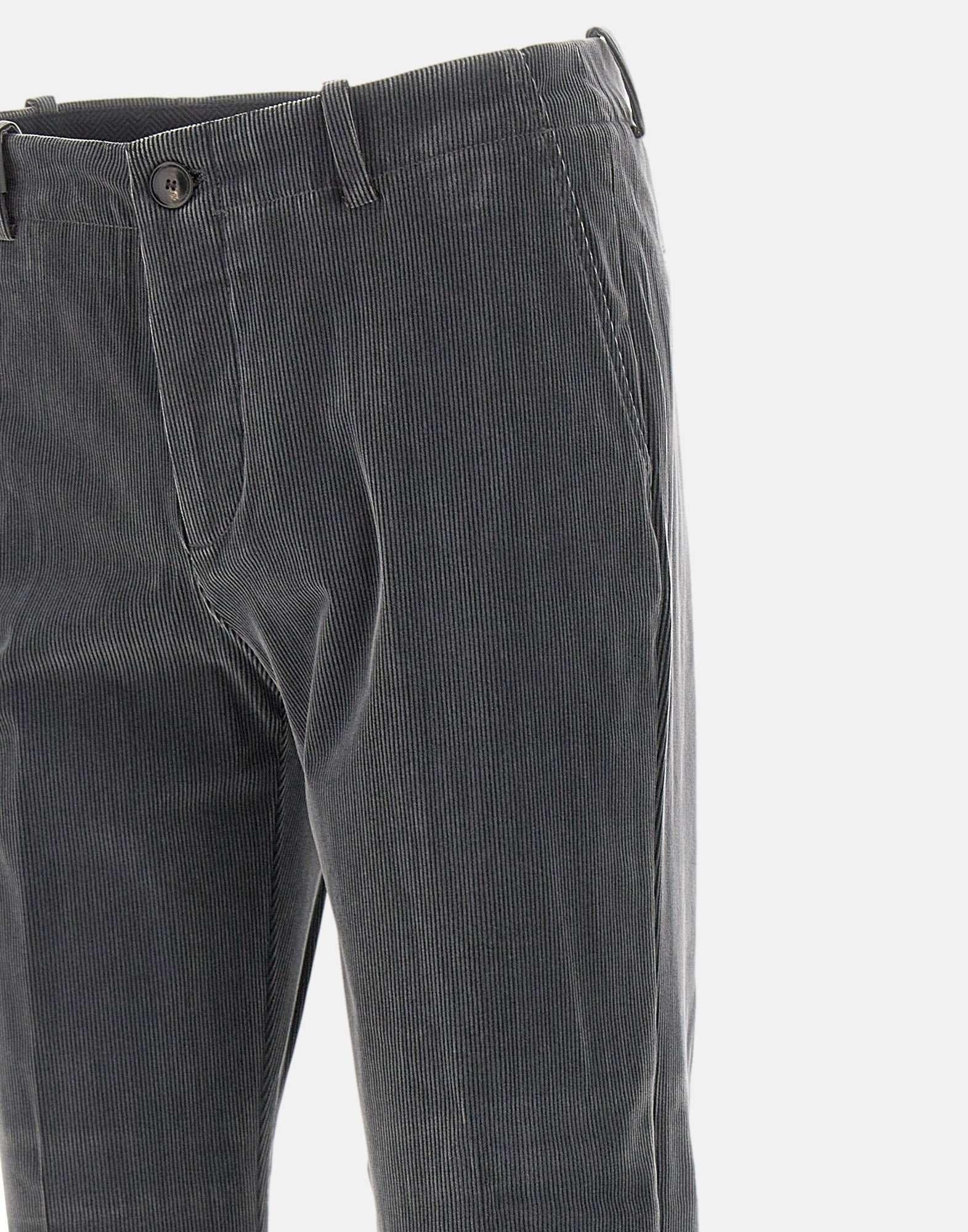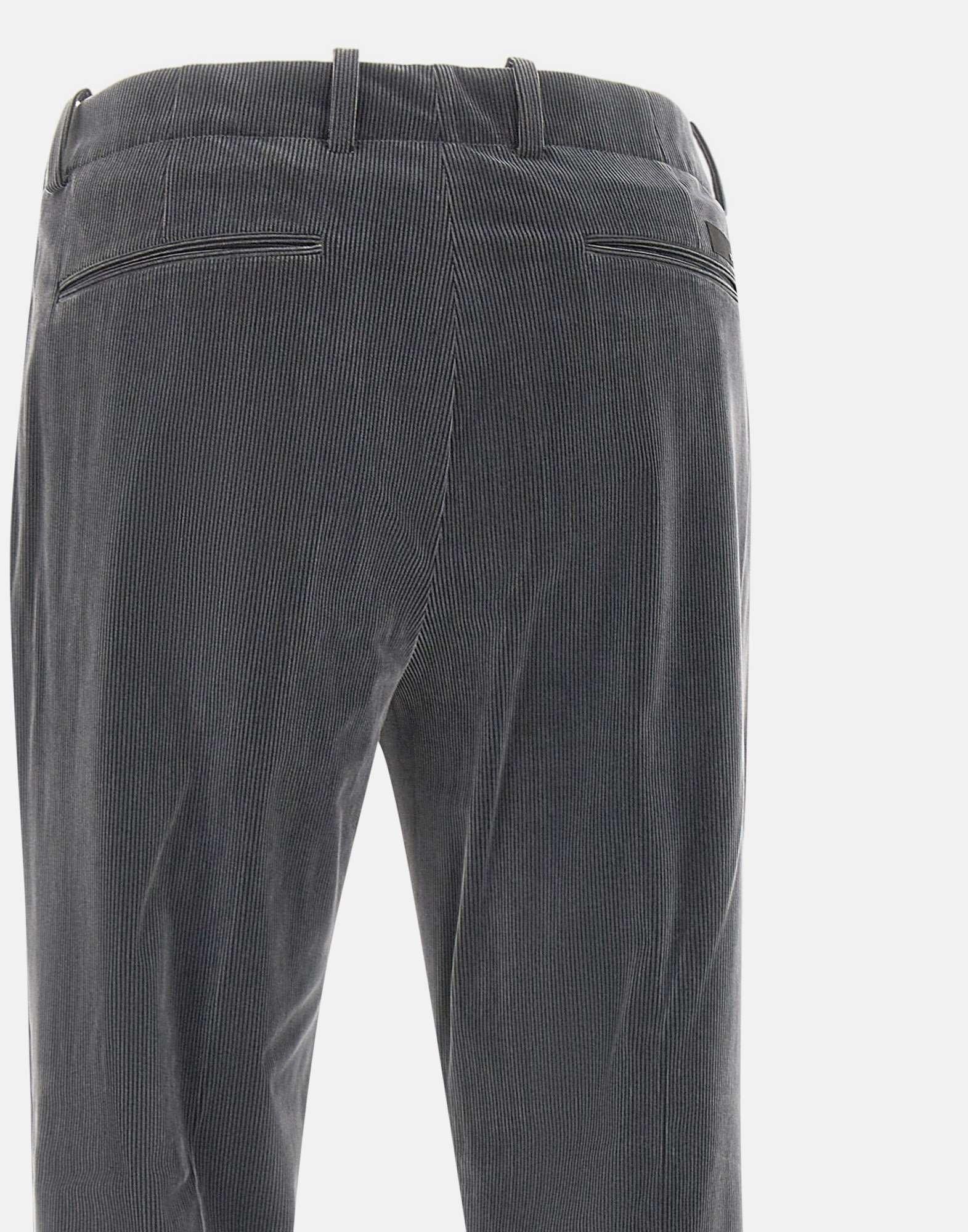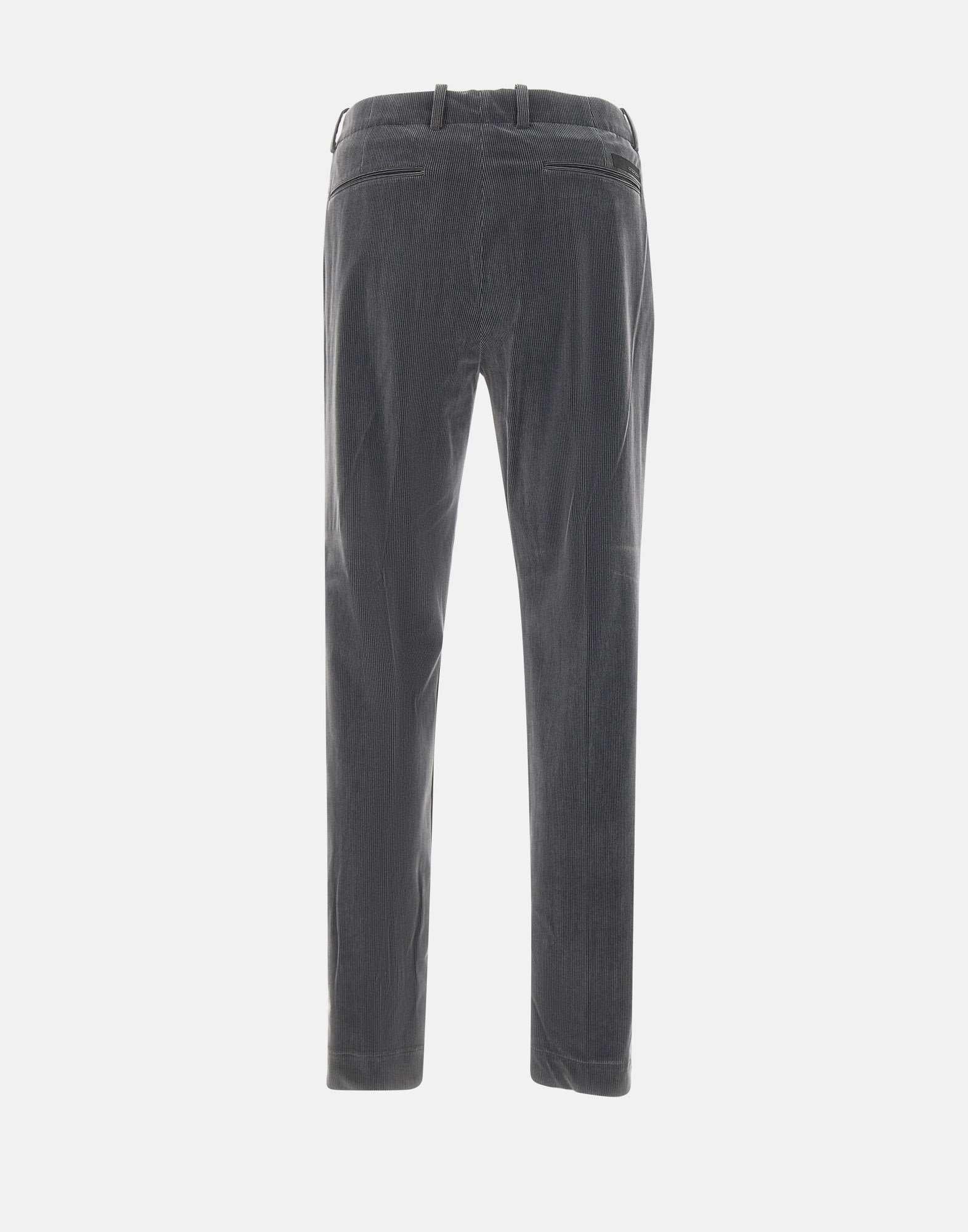 "Velvetflex 1000 Week End Pant" uomo RRD, grigio, gamba diritta con fondo 17cm, realizzati nell'esclusivo tessuto stretch SURFLEX stampato con pigmenti delavé, lavorazione floccata effetto velluto millerighe, touch particolarmente morbido, proprietà antipiega ed easy car, cintura con passanti, chiusura con bottoni nascosti, tasche laterali alla francese, posteriori a filetto, interno con stampa nell'esclusivo Monogram Razzle Dazzle, logo a microiniezione nero. Slim fit