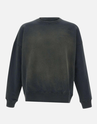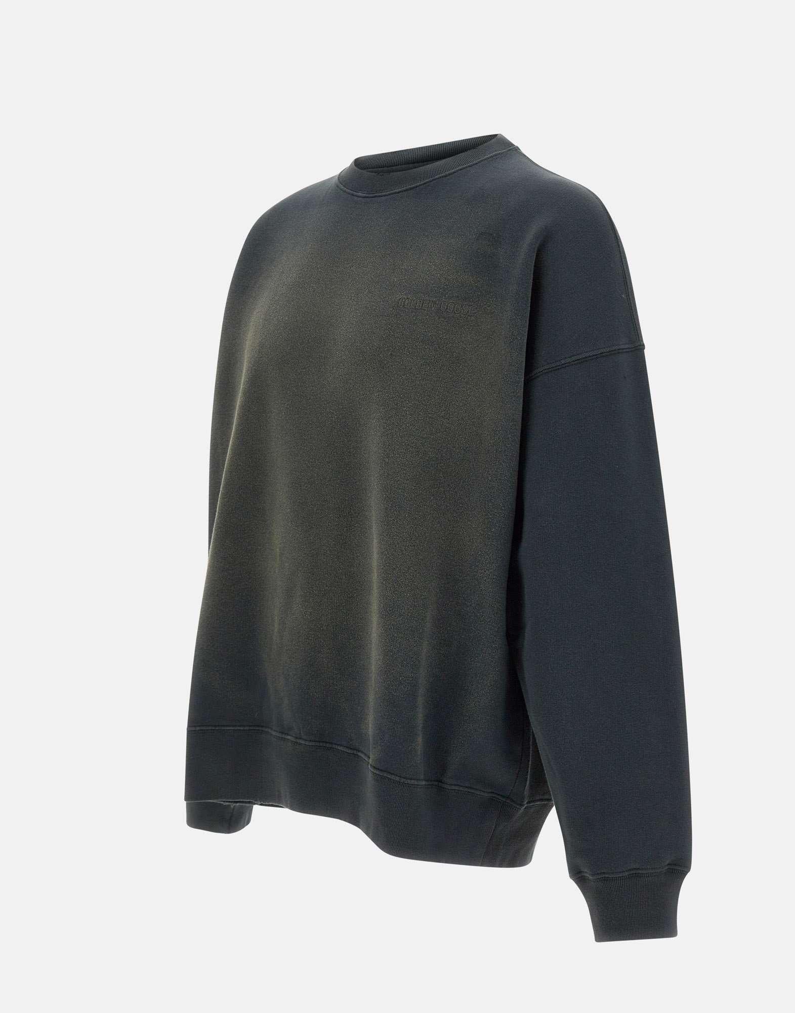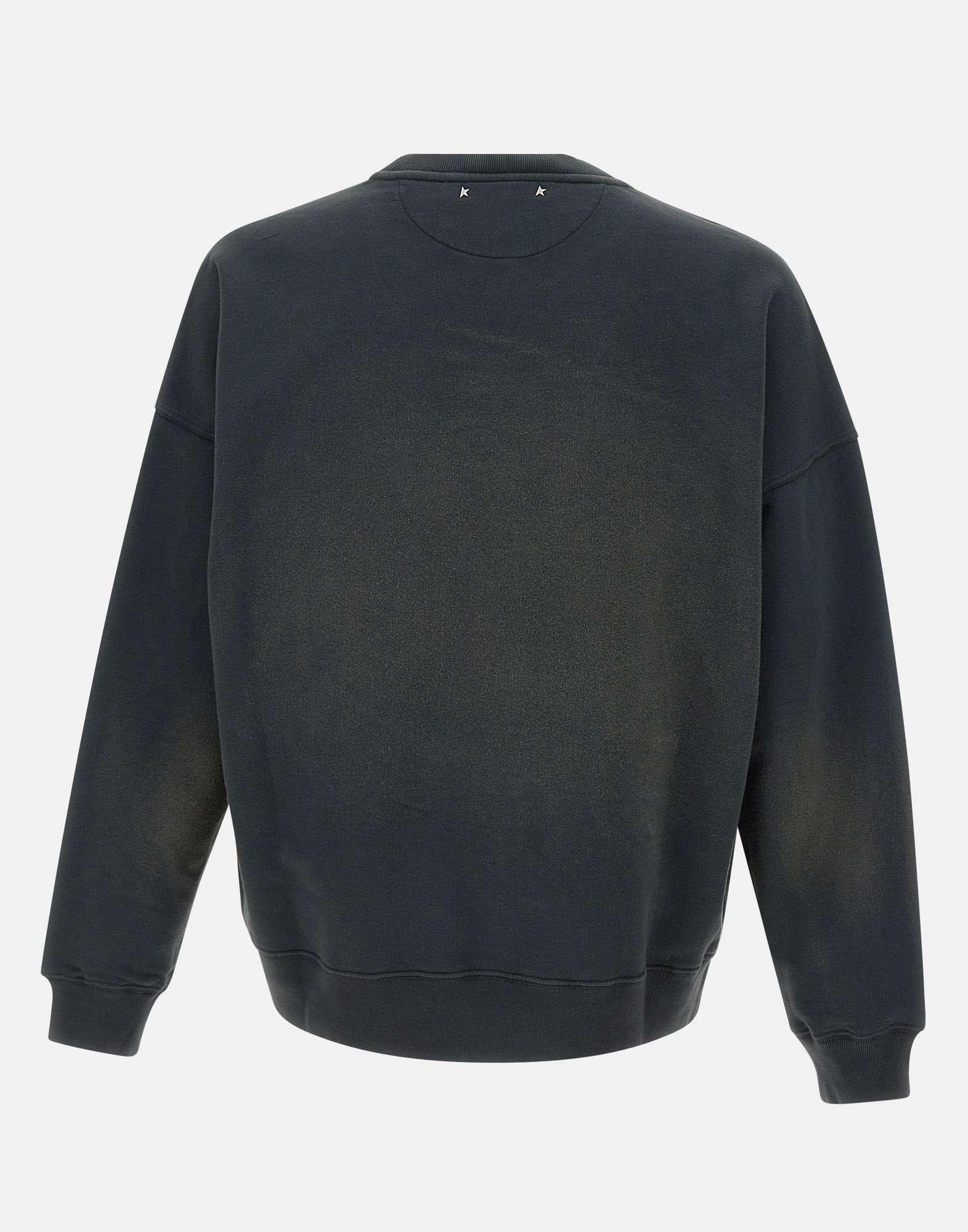 Felpa Golden Goose realizzata in cotone color nero vissuto, espressione di uno stile autentico e contemporaneo. Il modello a girocollo è caratterizzato da ricamo logato tono su tono sul cuore, che aggiunge un dettaglio discreto e distintivo. I particolari distressed e le iconiche due stelline applicate sul retro completano il design, enfatizzando l'estetica vissuta del brand. Rifinita con orlo e polsini a costine, presenta una vestibilità regolare ideale per l'uso quotidiano. Made in Italy.