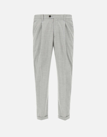 Pantaloni uomo Devore Incipit "DVR47 " in misto viscosa stretch, grigio chiaro, tessuto extra comfort al tatto e all'indosso, pince sul davanti, vita con inserti elasticati e passanti per cintura, tasche laterali a filetto, tasche posteriori monofiletto, chiusura con zip e bottoni, gamba dritta con fondo 17cm e risvolto 2,5cm, made in Italy, tapered fit.