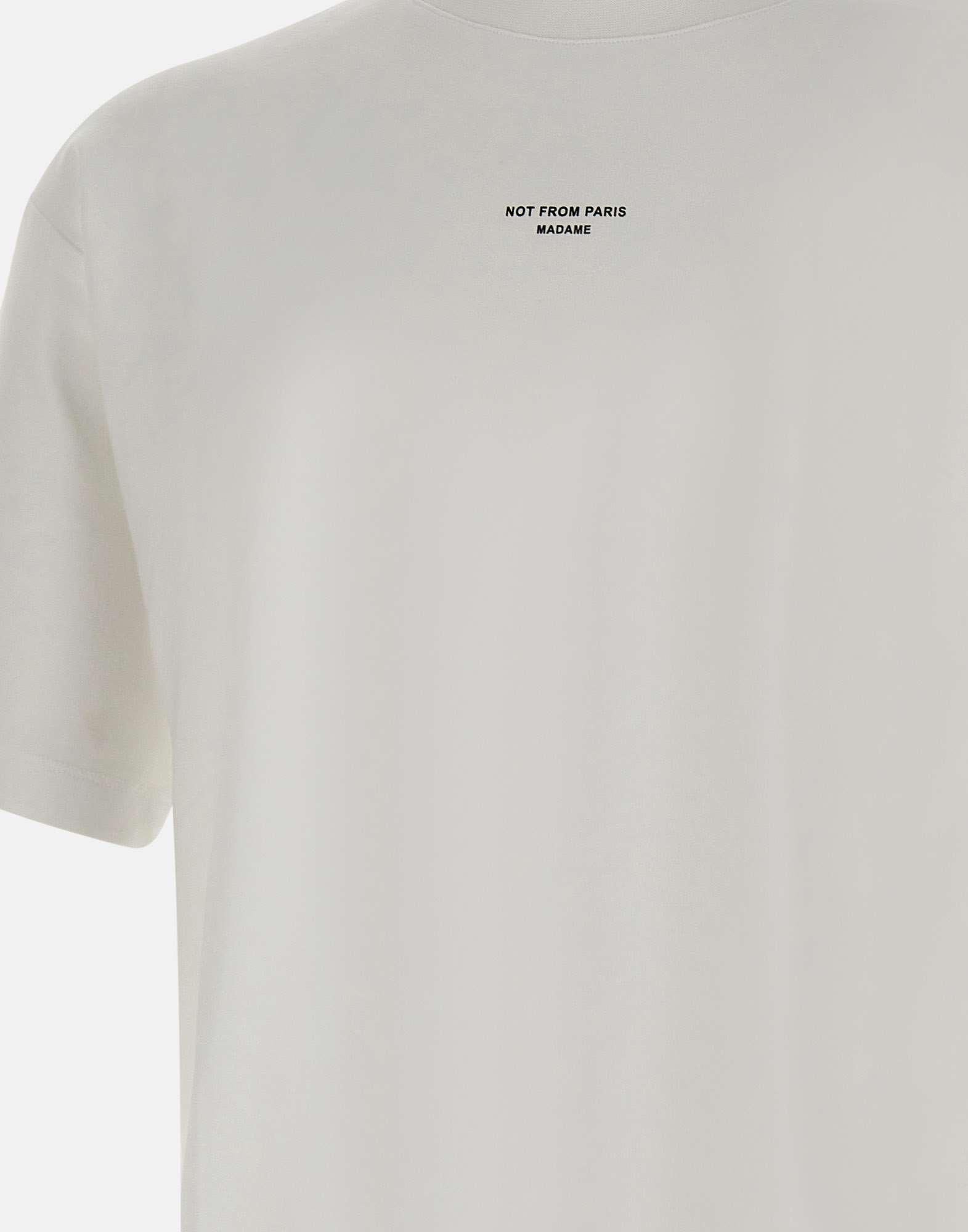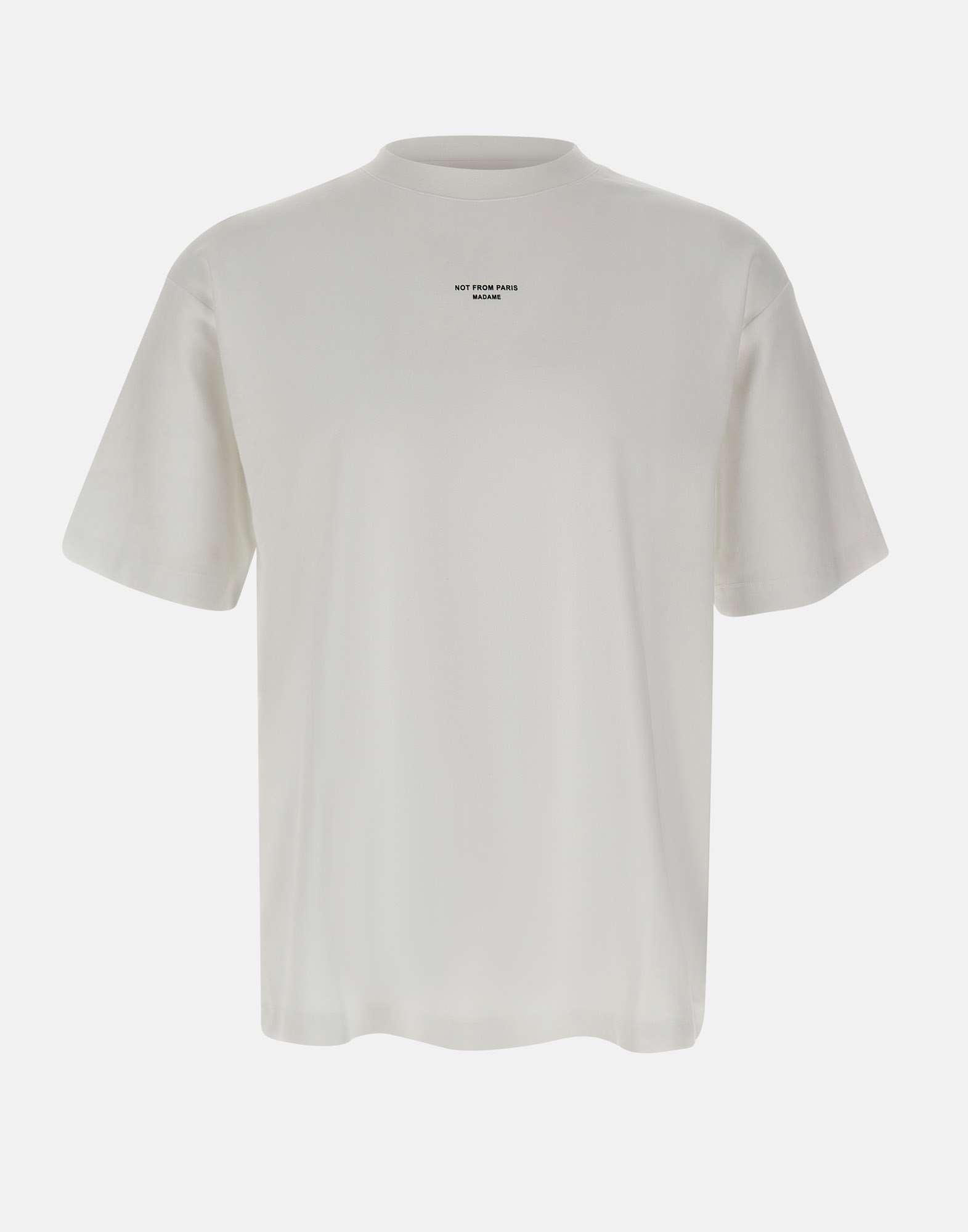 T-shirt uomo Drole De Monsieur "Slogan Classique" in cotone, bianca, maniche corte, girocollo, mini stampa logo a contrasto di colore sul petto, regular fit.