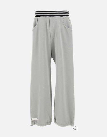 Pantaloni PDF modello "Jo Jo Pant MP" grigi, realizzati in cotone con dettagli a contrasto che aggiungono carattere al design. Presentano vita elasticizzata, tasche laterali a filo, tasca posteriore con ricamo, e fondo gamba extra large con coulisse regolabile. Completano il modello l'iconico logo a cerotto sul retro e il logo serigrafato sul fondo gamba. Un capo dallo stile contemporaneo e rilassato, perfetto per un look urbano e confortevole. Relaxed fit. Made in Italy.