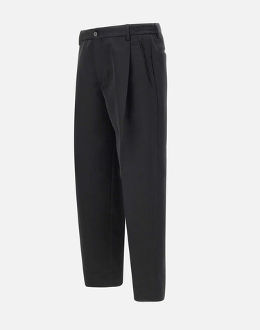 Pantaloni uomo Briglia 1949 "Manhattans" in gabardina tecnica color nero, simbolo dell'eccellenza sartoriale italiana. Presentano chiusura con zip e bottoni, vita parzialmente elasticata con passanti per cintura, tasche laterali a filo e tasche posteriori con bottoni. Il fondo da 20 cm e la gamba da 72 cm donano una linea pulita e contemporanea. La vestibilità easy fit garantisce comfort senza rinunciare all’eleganza. Made in Italy, lavabili a 30°.