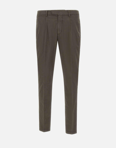 Pantaloni uomo Devorè Incipit "DVR33 " in cotone Pima peruviano e seta stretch, tabacco, tessuto extra comfort al tatto e all'indosso, pince sul davanti, vita regolare con passanti per cintura, tasche laterali a filetto, tasche posteriori con bottone a pressione, chiusura con zip e bottoni, gamba dritta con fondo 17cm, made in Italy,slim fit.