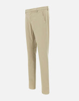 Pantaloni uomo Dondup "Gaubert" in cotone, sabbia, tessuto extra comfort al tatto e all'indosso, chiusura con bottone e zip, vita regolare con passanti per cintura, tasche laterali a filetto, tasche monofiletto sul retro con bottone e mini logo in metallo, slim fit, fondo 17cm, made in Italy