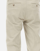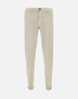 Pantaloni uomo Re-Hash "Mucha Chinos" in misto cotone, sabbia,tessuto Tencel extracomfort, chiusura con zip e bottone logato silver, tasche laterali a filetto, tasche monofiletto sul retro con bottone, fondo con risvolto, slim fit. Made in Italy