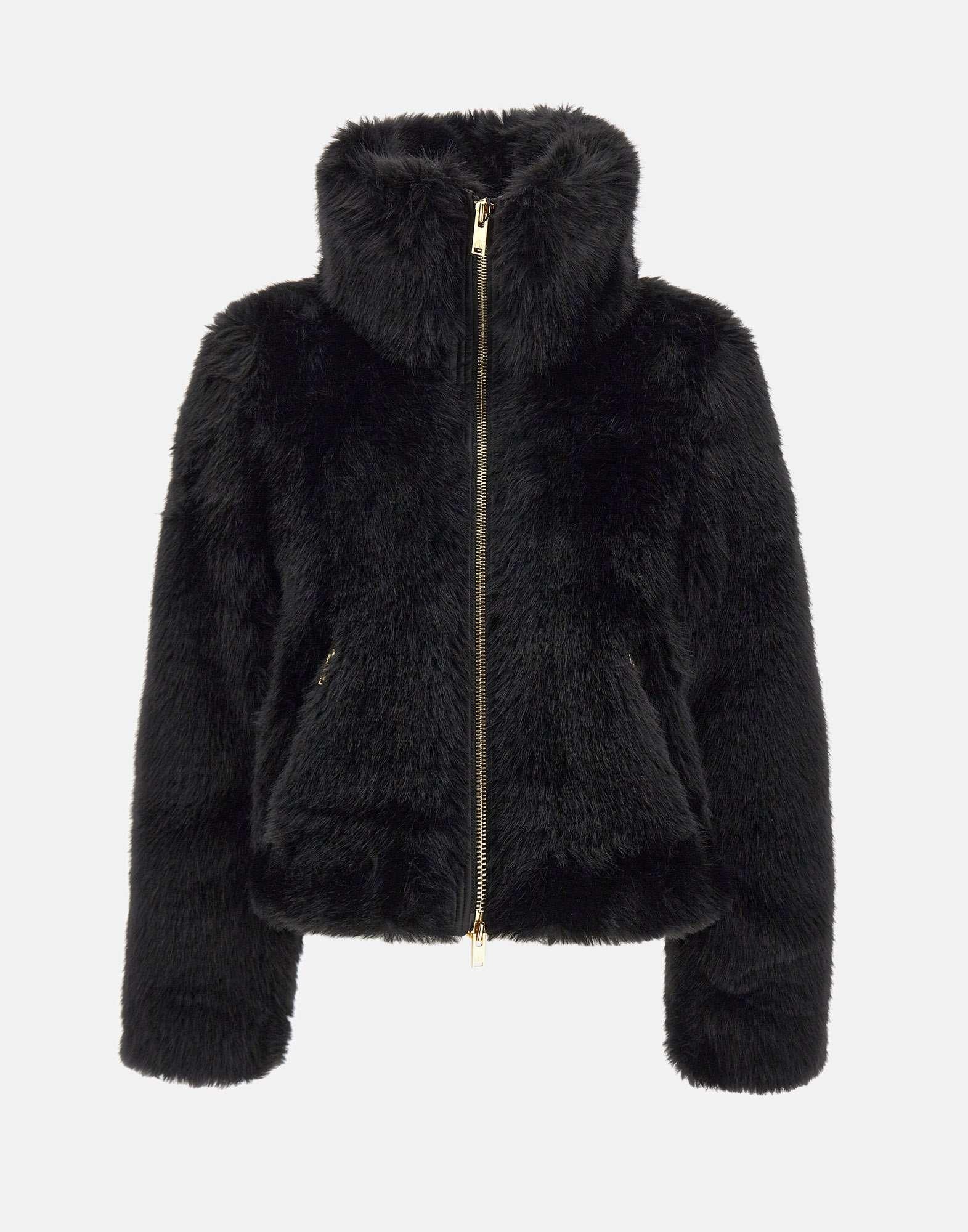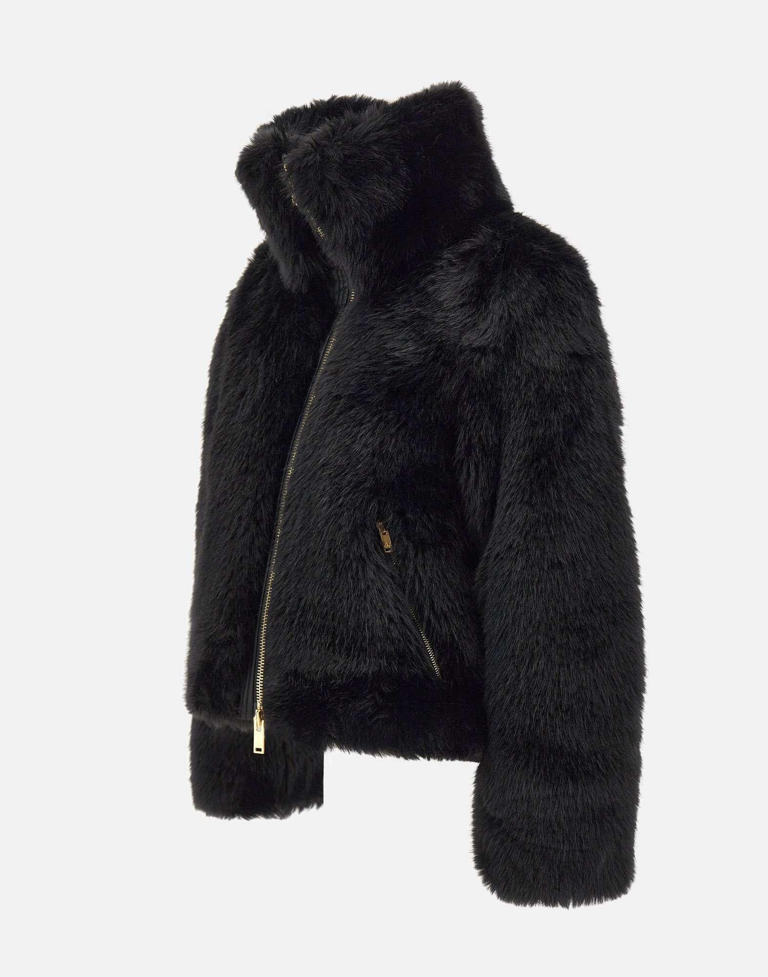 Giacca donna Moose Knuckles "Button Bunny Jkt Gold" in pelliccia sintetica a pelo lungo nel colore nero, morbida e avvolgente. La silhouette relaxed fit offre comfort e libertà di movimento, mentre i profili in pelle a contrasto e la metalleria dorata donano un tocco raffinato e contemporaneo. Dotata di un collo ampio, chiusura frontale con zip a doppio cursore, tasche laterali con zip e tasca interna, è completata da una fodera trapuntata a rombi che assicura calore e stile nelle giornate più fredde.