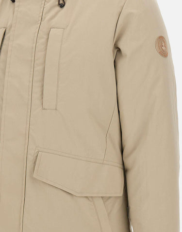 Il parka "Coto21Enzo" di Save The Duck nel colore sabbia, unisce estetica contemporanea e sostenibilità. Realizzato in nylon riciclato dallaspetto cotone, è imbottito con isolamento Plumtech riciclato, caldo e leggero. Presenta interno a contrasto di colore verde, cappuccio regolabile e accogliente con fodera trapuntata, chiusura con zip a doppio cursore e patta con bottoni automatici, tasche con patta anteriori, tasche sul petto con zip e polsini regolabili. Completano il design il logo rotondo sulla manica sinistra e il tiretto personalizzato, simboli distintivi del brand. Regular fit.
