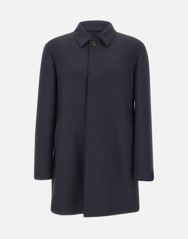 Cappotto Corneliani "Sportswear" uomo, colore blu notte, realizzato in lana stretch per garantire comfort e libertà di movimento. Presenta colletto classico, chiusura frontale con bottoni, tasche laterali a filo, spacco centrale sul retro e linea essenziale dal gusto contemporaneo. Un capo versatile che unisce eleganza e funzionalità tipiche del brand. Regular fit. Made in Italy.