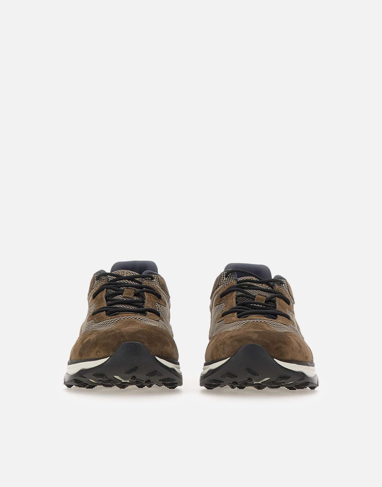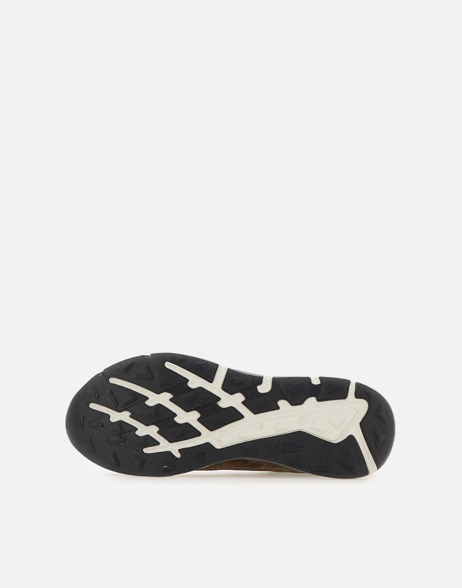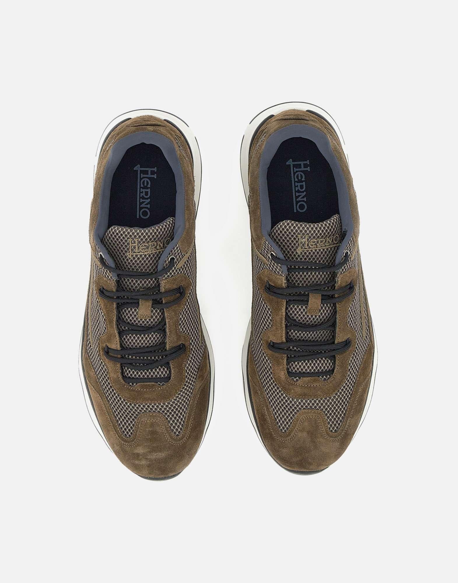 Sneakers Herno da uomo, modello running, realizzate in morbido camoscio verde bosco con dettagli in flanella. Caratterizzate da un design versatile e raffinato, presentano lacci tondi, logo sulla linguetta e logo 3D ricamato sul lato. Suola leggera in gomma che assicura comfort e aderenza. Calzata regolare. Made in Italy.