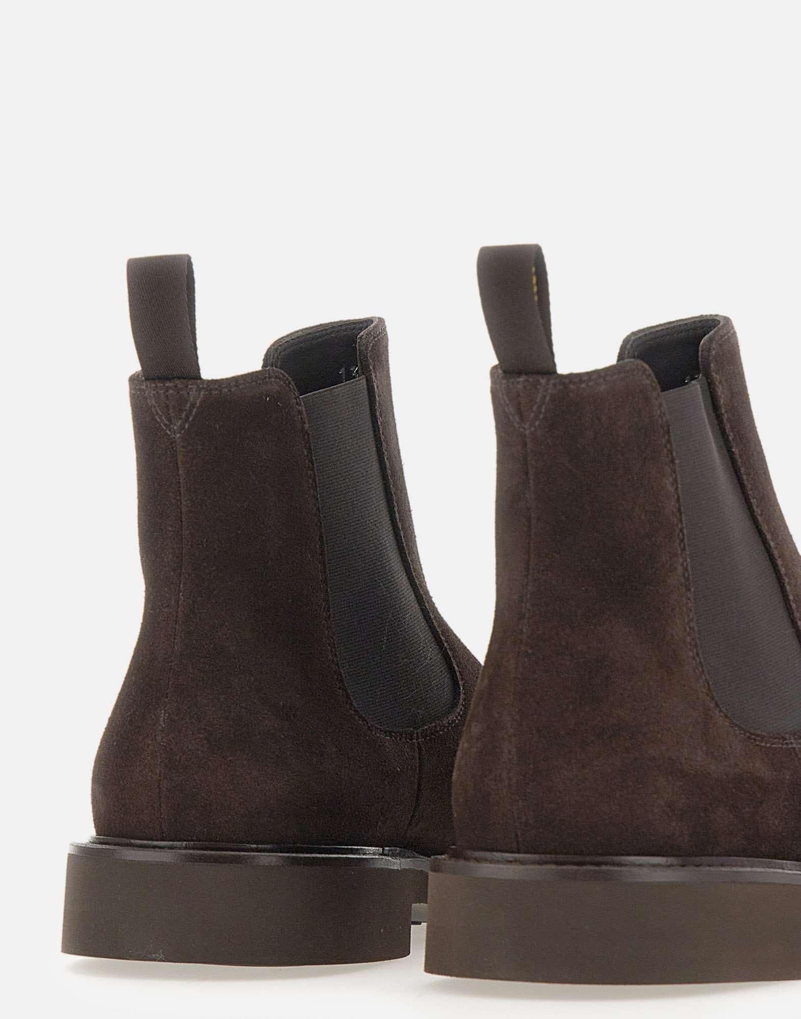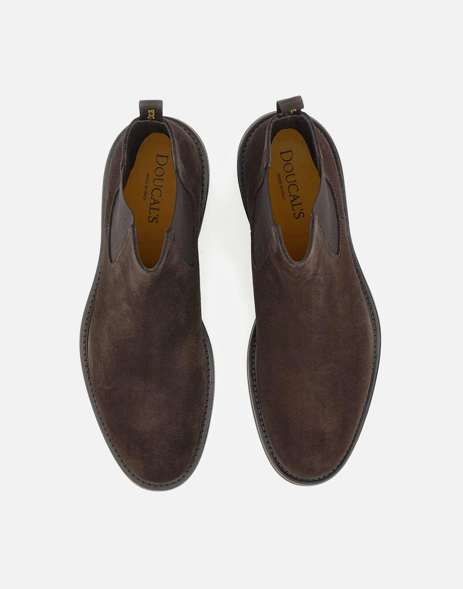 Stivali Doucal's "Visone" realizzati in pelle scamosciata color testa di moro, dal design essenziale e raffinato. Presentano inserto elasticato laterale per una calzata confortevole, tirante posteriore e suola in gomma con tasselli tono su tono con tacco da 3 cm. Un modello versatile e artigianale, perfetto per look casual o più formali.Made in Italy. Custodia in tessuto inclusa. Calzata regolare.