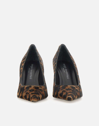 Décolleté "Dusy" di Sergio Levantesi reinterpretano leleganza femminile con un tocco grintoso. Realizzate in cavallino animalier nei toni del marrone e nero, presentano una silhouette affusolata a punta con interno in pelle premium che assicura comfort e morbidezza. Il tacco stiletto di 9 cm slancia la figura, mentre la suola in cuoio è impreziosita dal mini logo in metallo del brand. Un modello iconico e sofisticato, perfetto per look da sera o per donare carattere alloutfit quotidiano. Calzata regolare. Made in Italy.