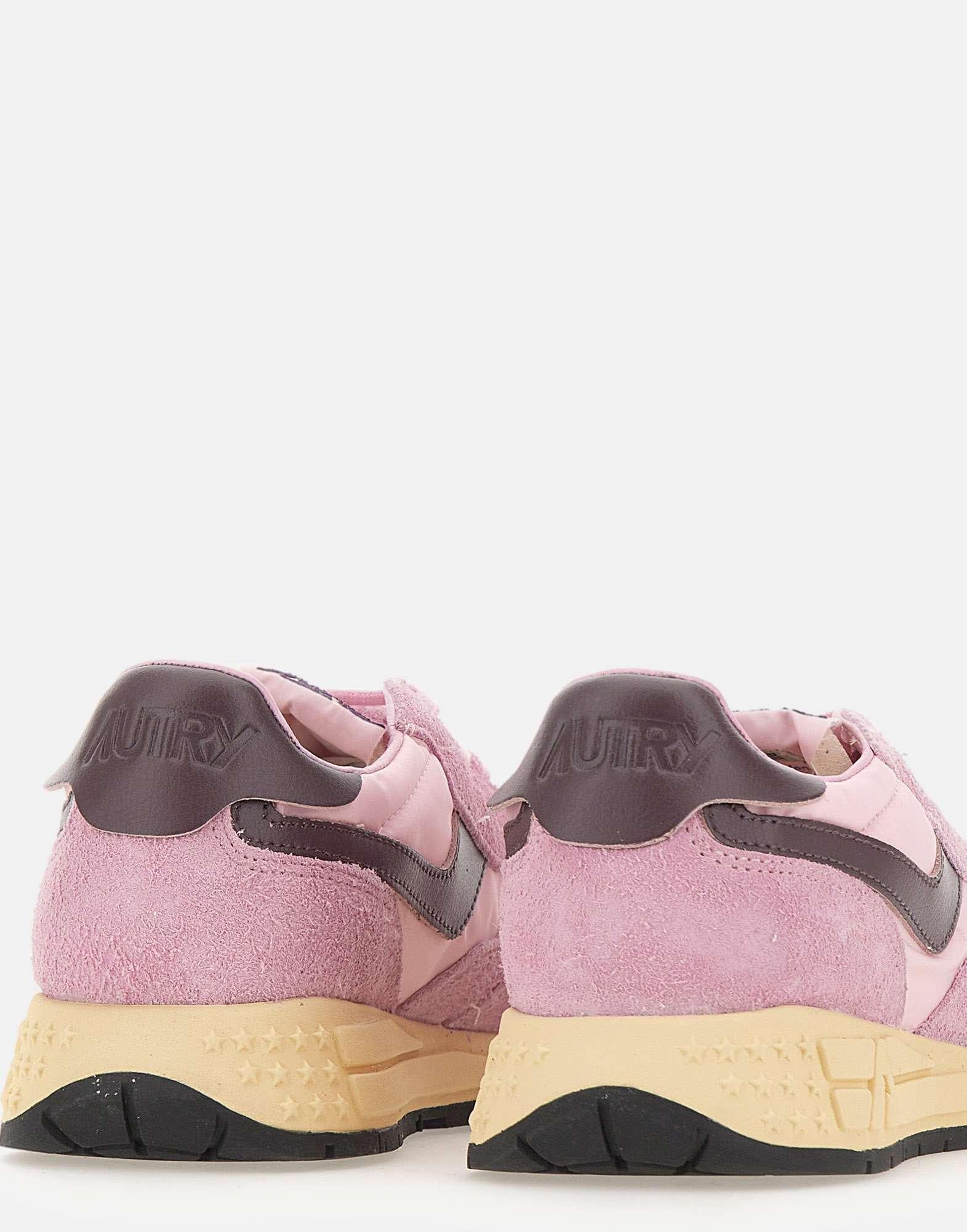 Sneakers donna Autry "Reelwind Low" in pelle scamosciata color malva con punta in mesh e inserti in pelle liscia color prugna sul talloncino logato e sui lati. Caratterizzate da una silhouette slanciata e da un design rétro ispirato agli anni '80, combinano l'estetica iconica di Autry con dettagli da running shoe. Lacci piatti in cotone rosa, linguetta logata e logo sul lato esterno. La suola in gomma alta 3,5 cm, personalizzata con motivo a stelle e simbolo A-arrow, garantisce leggerezza, flessibilità e grip ottimale. Ideali per uno stile dinamico e contemporaneo.