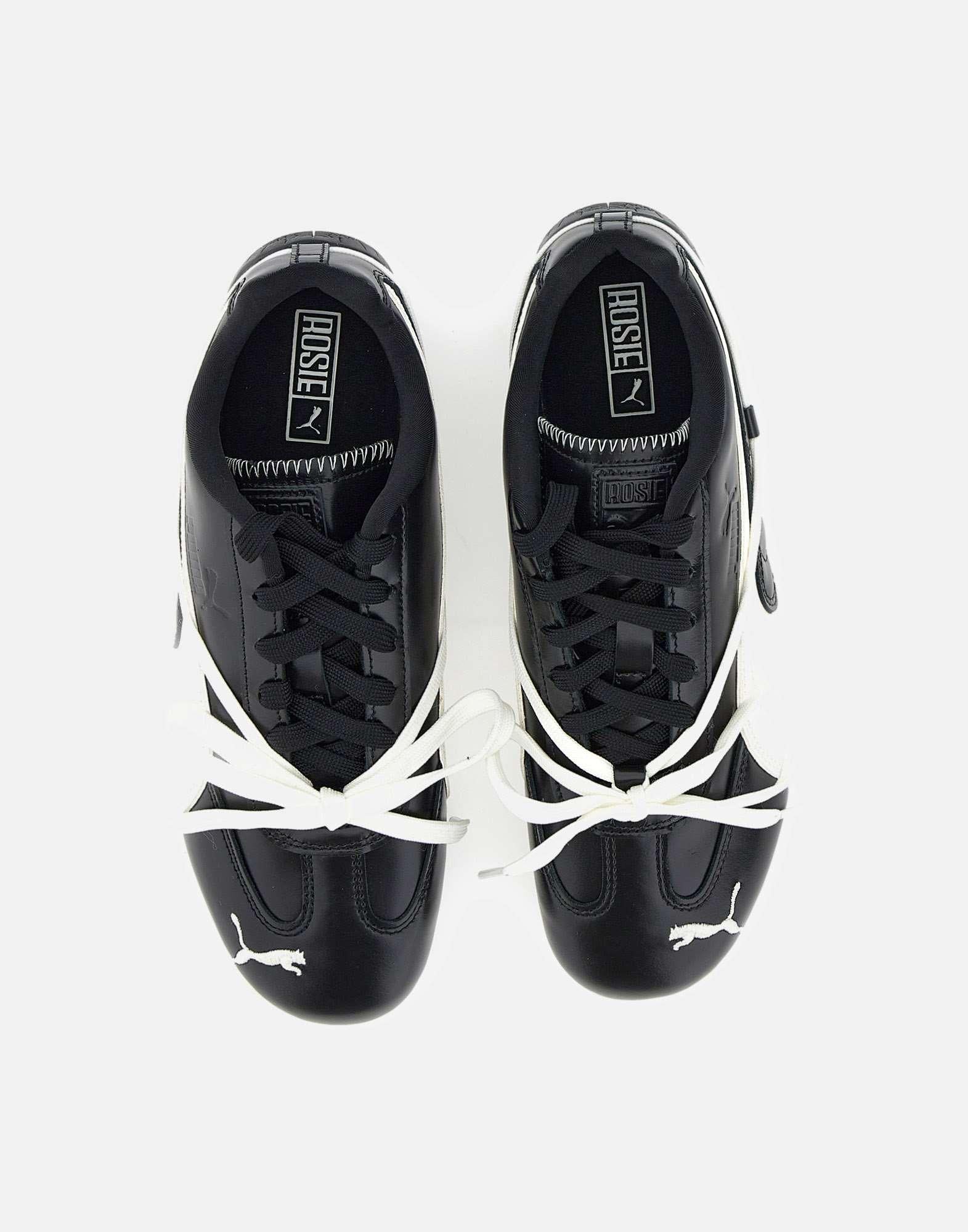 Sneakers donna Puma X Rosè "Speedcat", nere, dalla capsule esclusiva firmata Rosé che unisce eleganza sportiva, dettagli couture e spirito street. Modello a punta arrotondata, chiusura con lacci e tacco piatto, presenta logo impresso sulla linguetta e ricamato sulla punta. Calzata regolare, taglia UK 6 corrisponde a EU/IT 39. Fornite in una speciale scatola stampata, includono libretto per l’allacciatura e set di targhette ROSIE. Perfette per look autentici e contemporanei.
