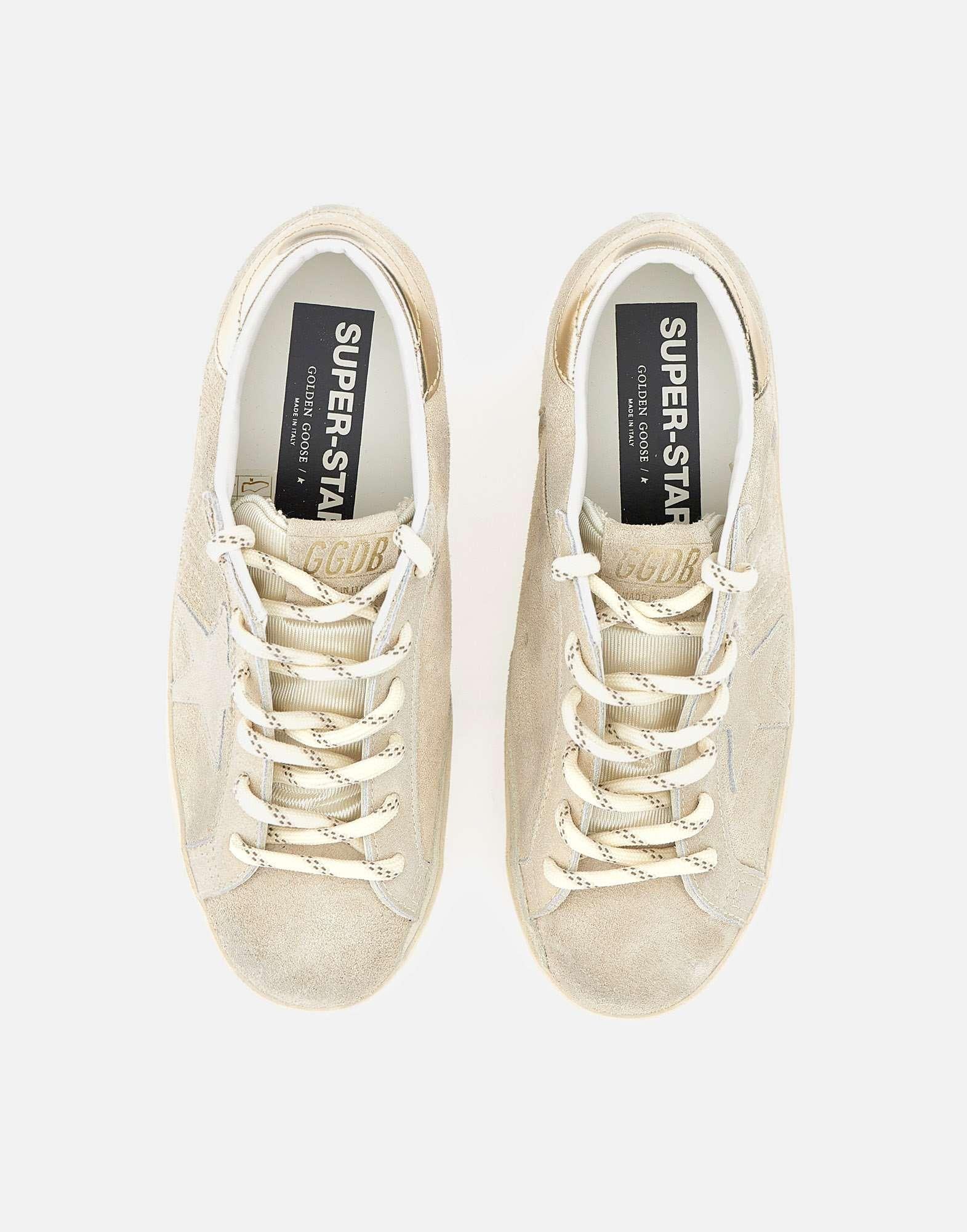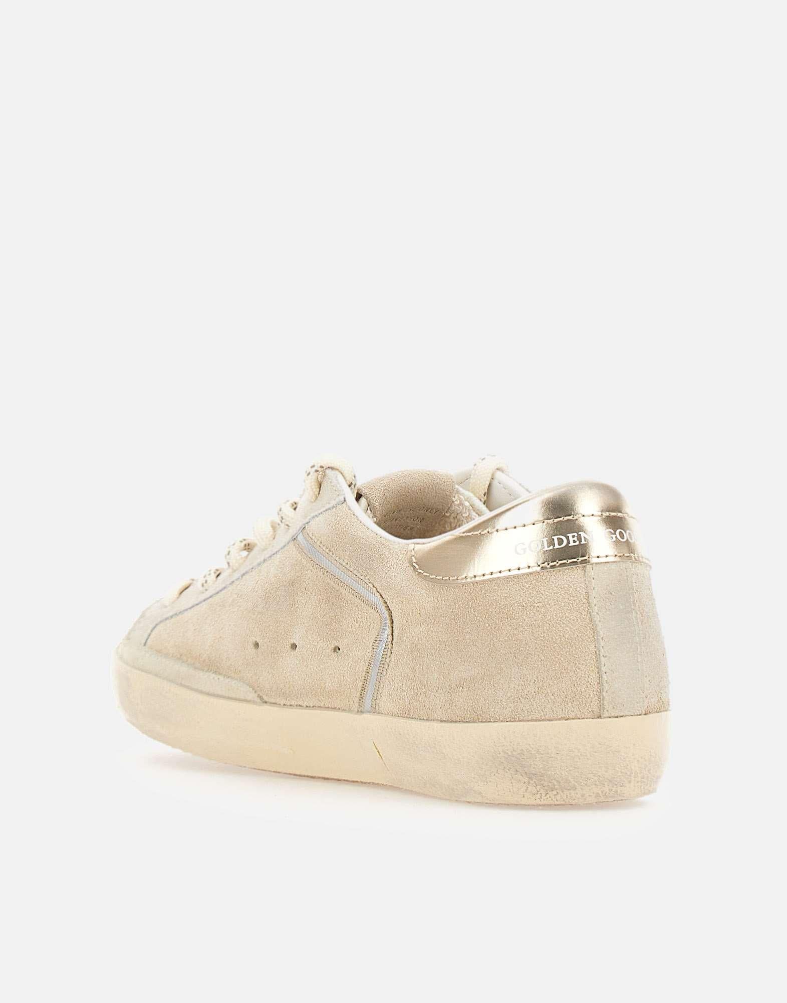 Sneakers donna Golden Goose "Super-Star Classic with List" in pelle scamosciata beige con inserti color argento, un'icona dal fascino senza tempo in continua evoluzione. Il modello è caratterizzato da stella in tono e talloncino logato lucido, per un dettaglio luminoso e distintivo. La linguetta in tessuto color panna e i lacci tubolari bicolor completano il look con un contrasto caldo. Sul lato esterno è stampato il logo. Suola in gomma alta 2,5 cm e dust bag inclusa. Include anche solette in tessuto peloso per una calzata più calda. Made in Italy.