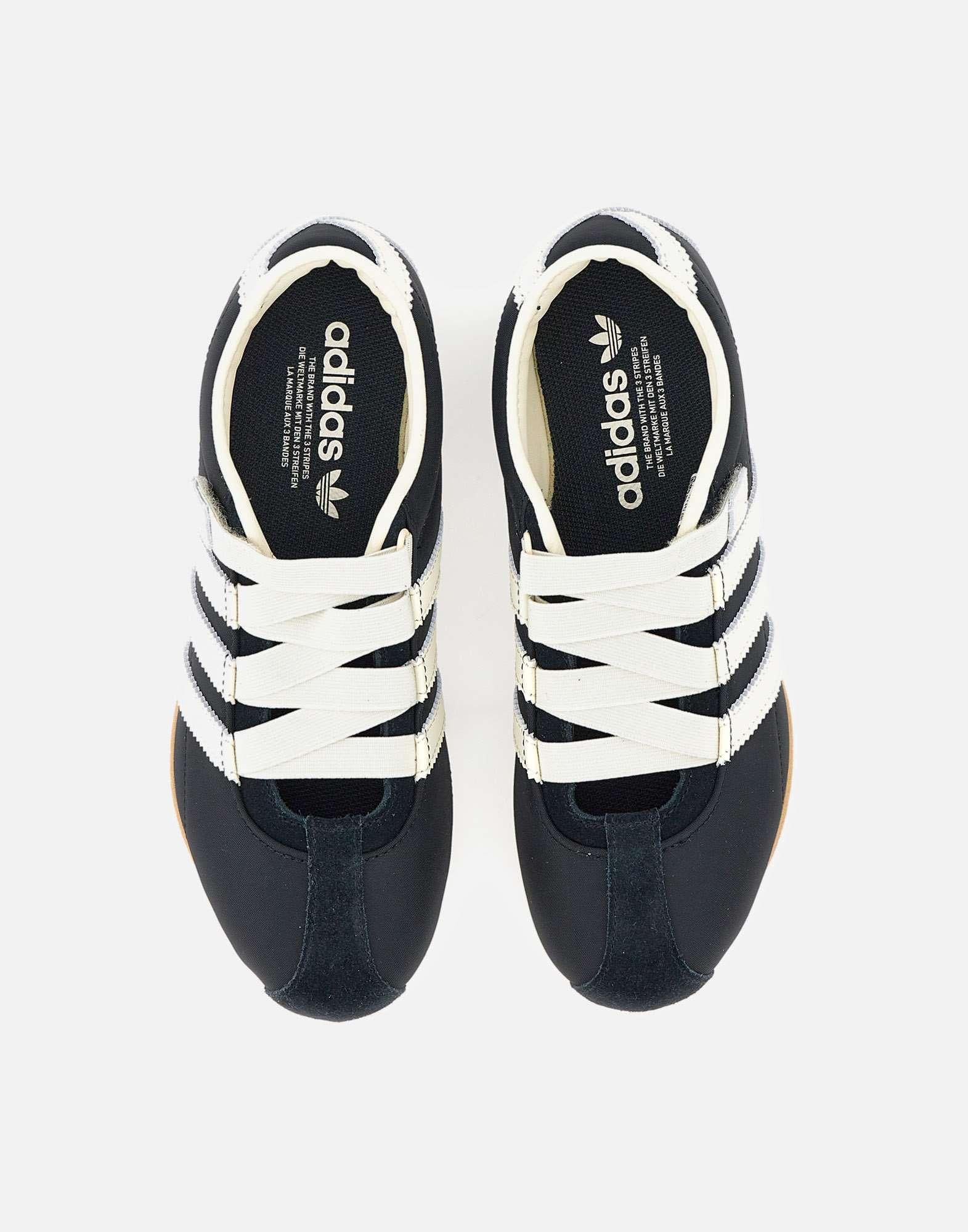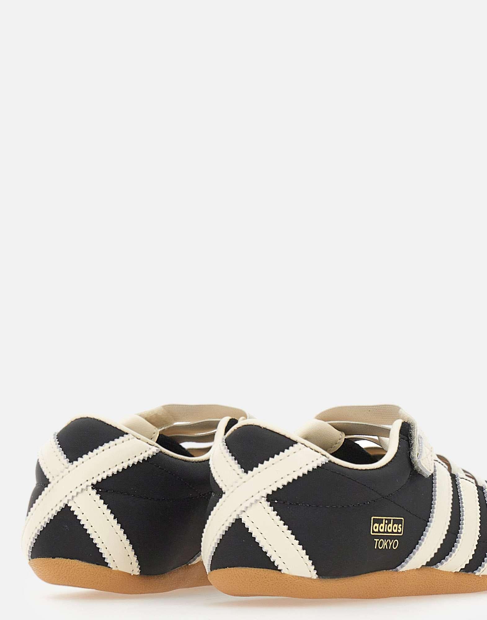 Sneakers Adidas "Tokyo MJ" in tessuto nero con strisce laterali bianche e inserti bianchi sul tallone, pensate per un look leggero e contemporaneo, ideale per le giornate di sole. La struttura snella e a basso profilo richiama l'epoca degli sport retrò degli anni '70, portando una freschezza attuale a dettagli dal gusto vintage. La chiusura con fascia elastica e velcro offre una vestibilità aderente e pratica, facile da indossare e togliere. La fodera in materiale sintetico assicura comfort quotidiano, mentre la suola resistente alta 0,5 cm completa il modello. Vestibilità regolare.