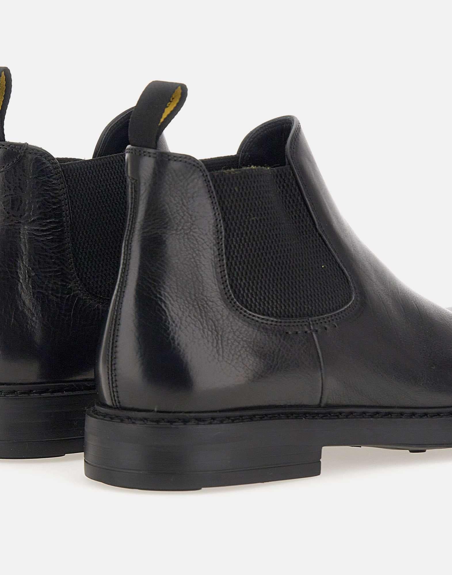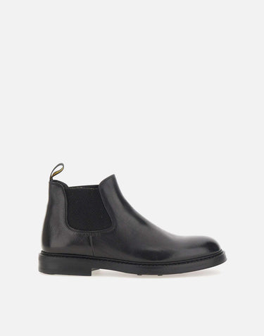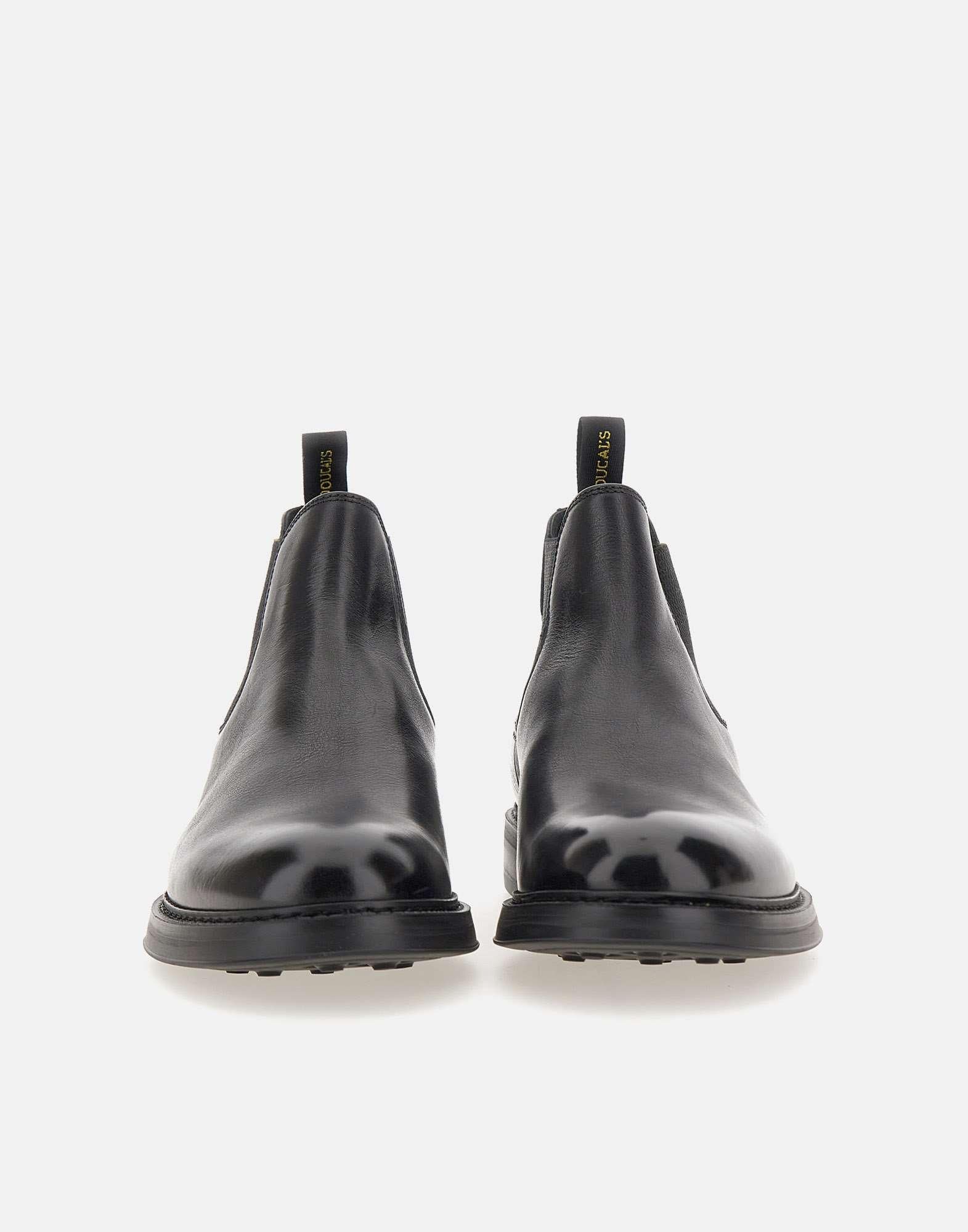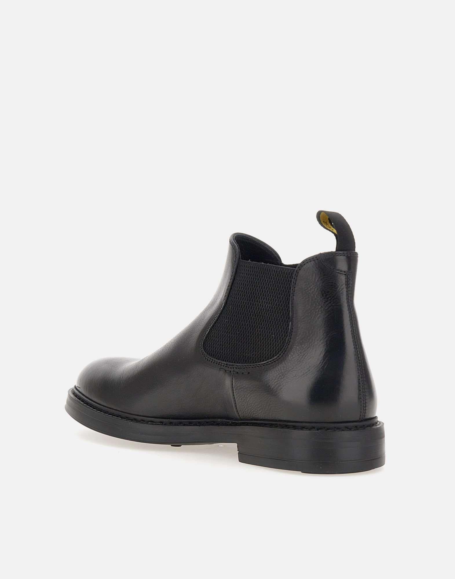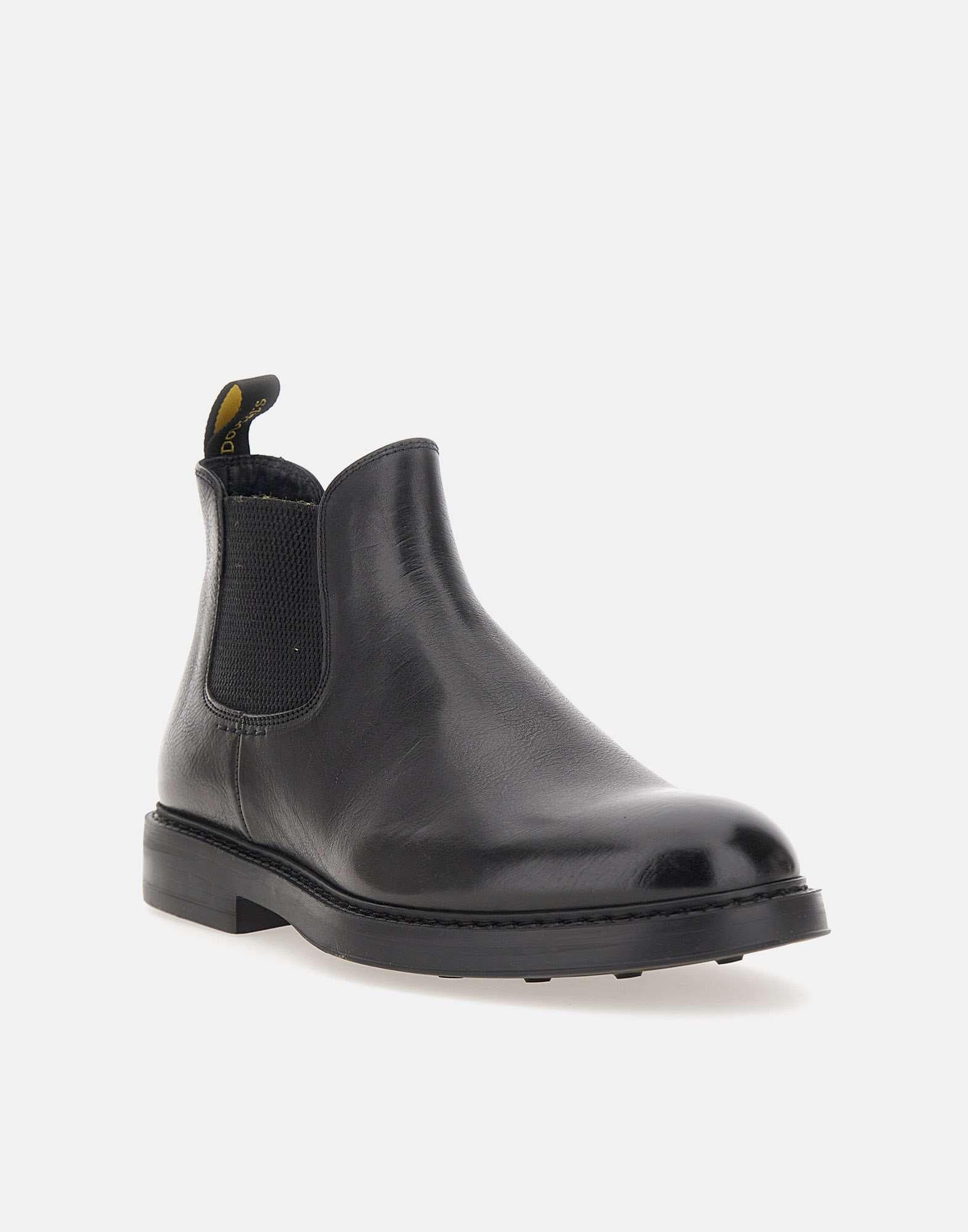 Stivali uomo Doucal's "Triumph" in pelle nera, con punta tonda e dettaglio elastico laterale in tessuto micro nido d’ape per una calzata pratica e confortevole. Linguetta posteriore per facilitare la calzata. Suola in gomma alta 2,5 cm per aderenza e stabilità. Made in Italy. Calzata regolare.