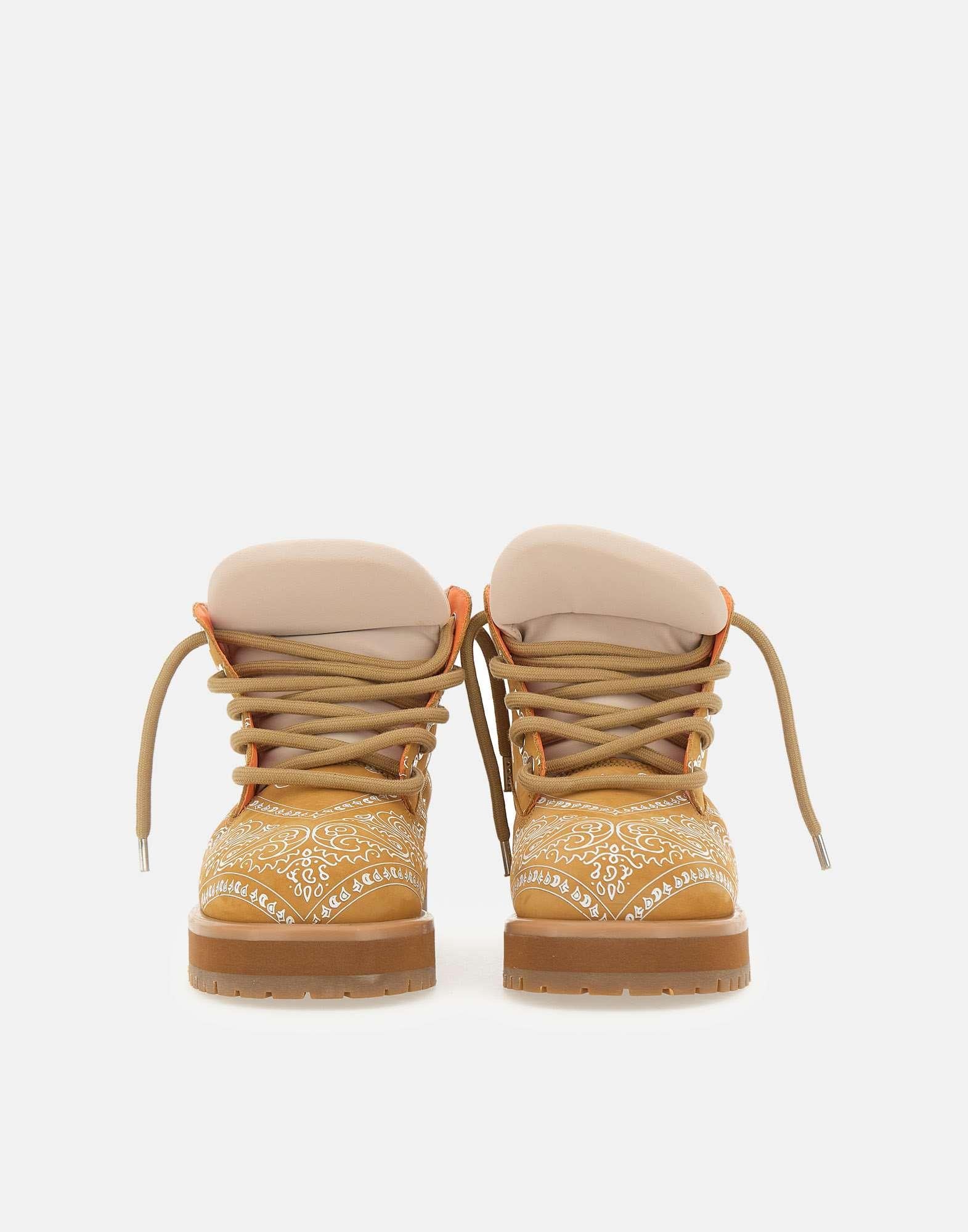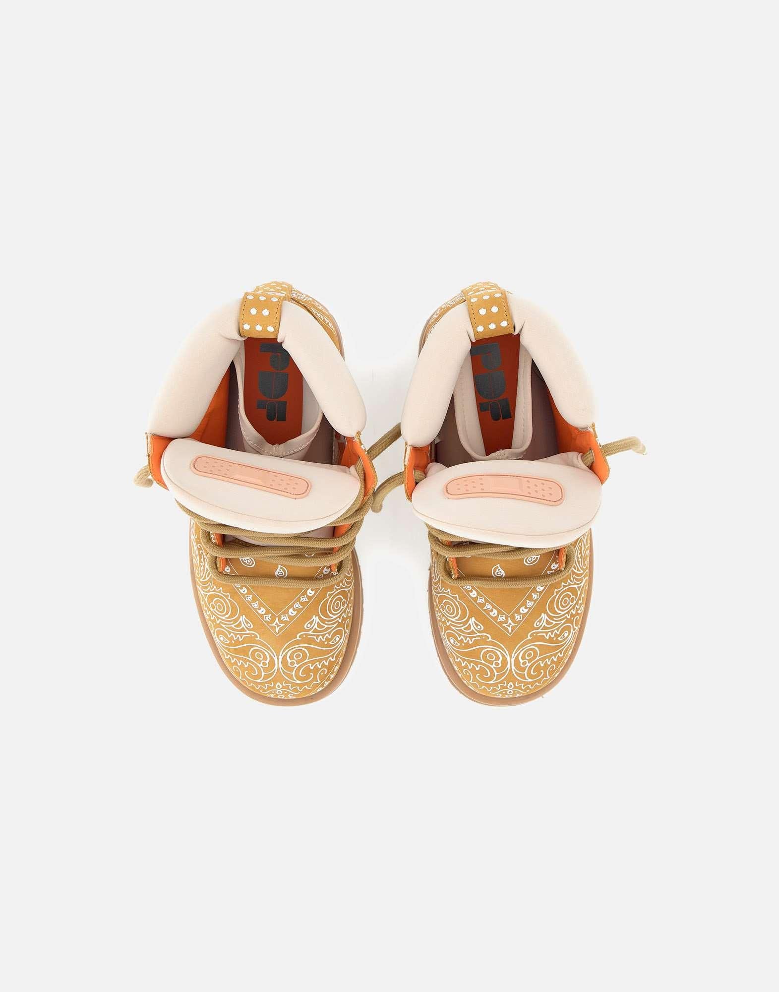 "Strada Low Bandana" PDF, stile deciso e urban. Realizzate nella tonalità giallo senape con fantasia bandana a contrasto, queste scarpe uniscono carattere e comodità. Dotate di chiusura con lacci, occhielli silver, e collare imbottito stile "calzino", garantiscono una calzata ampia e confortevole. La punta tonda e la linguetta con iconico logo a cerotto aggiungono un tocco distintivo al design. La suola in gomma carrarmato assicura grip e resistenza, mentre il tacco da 4,5 cm dona un leggero slancio senza rinunciare al comfort.