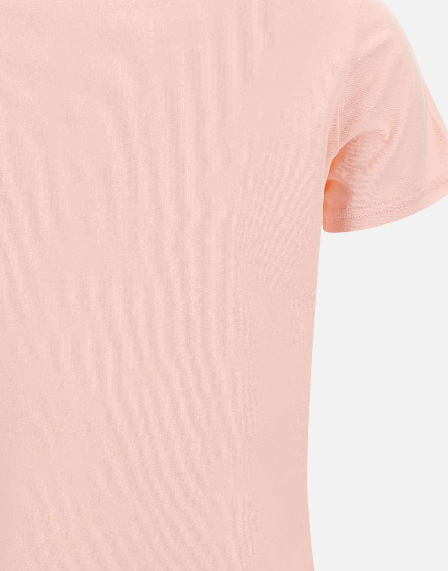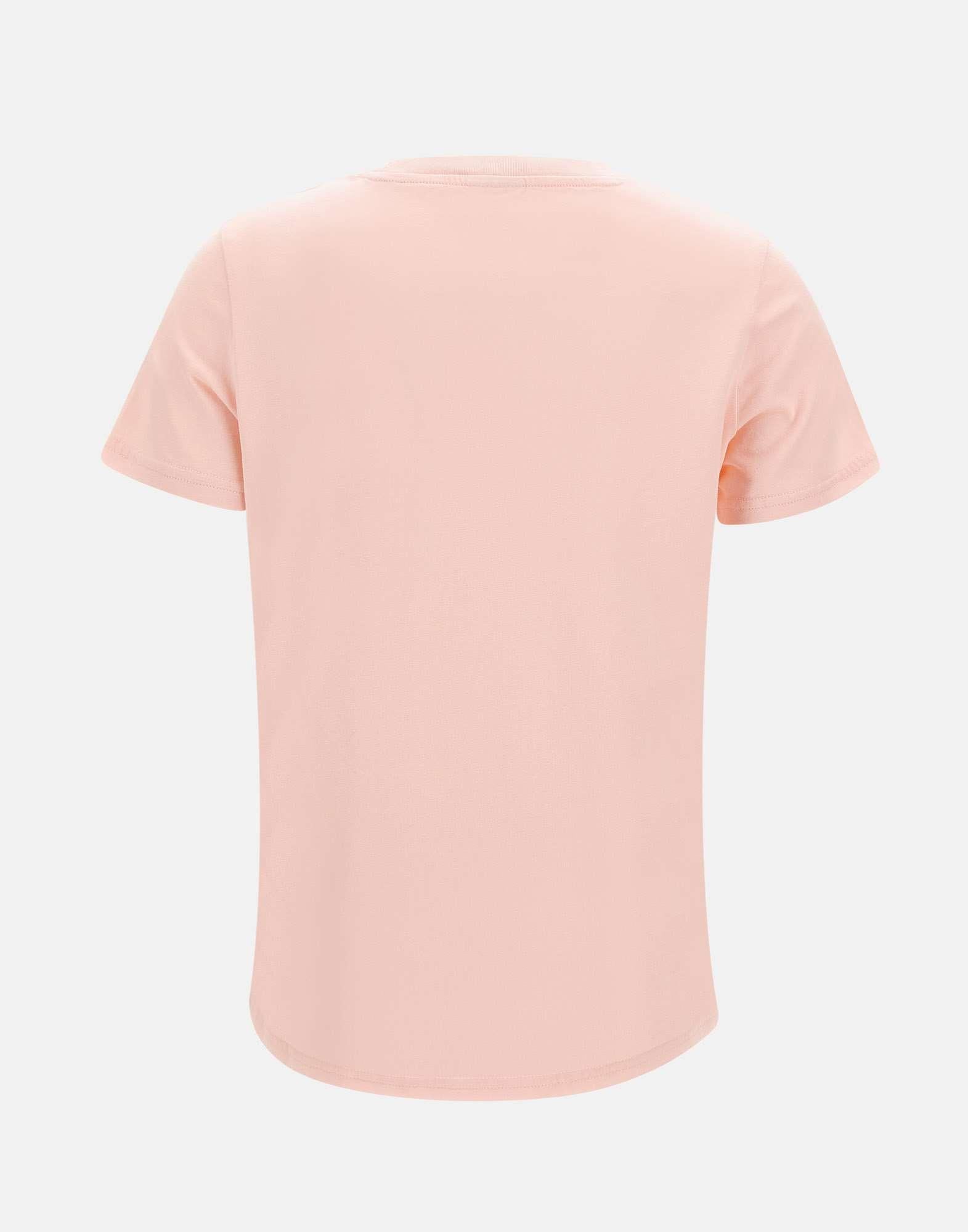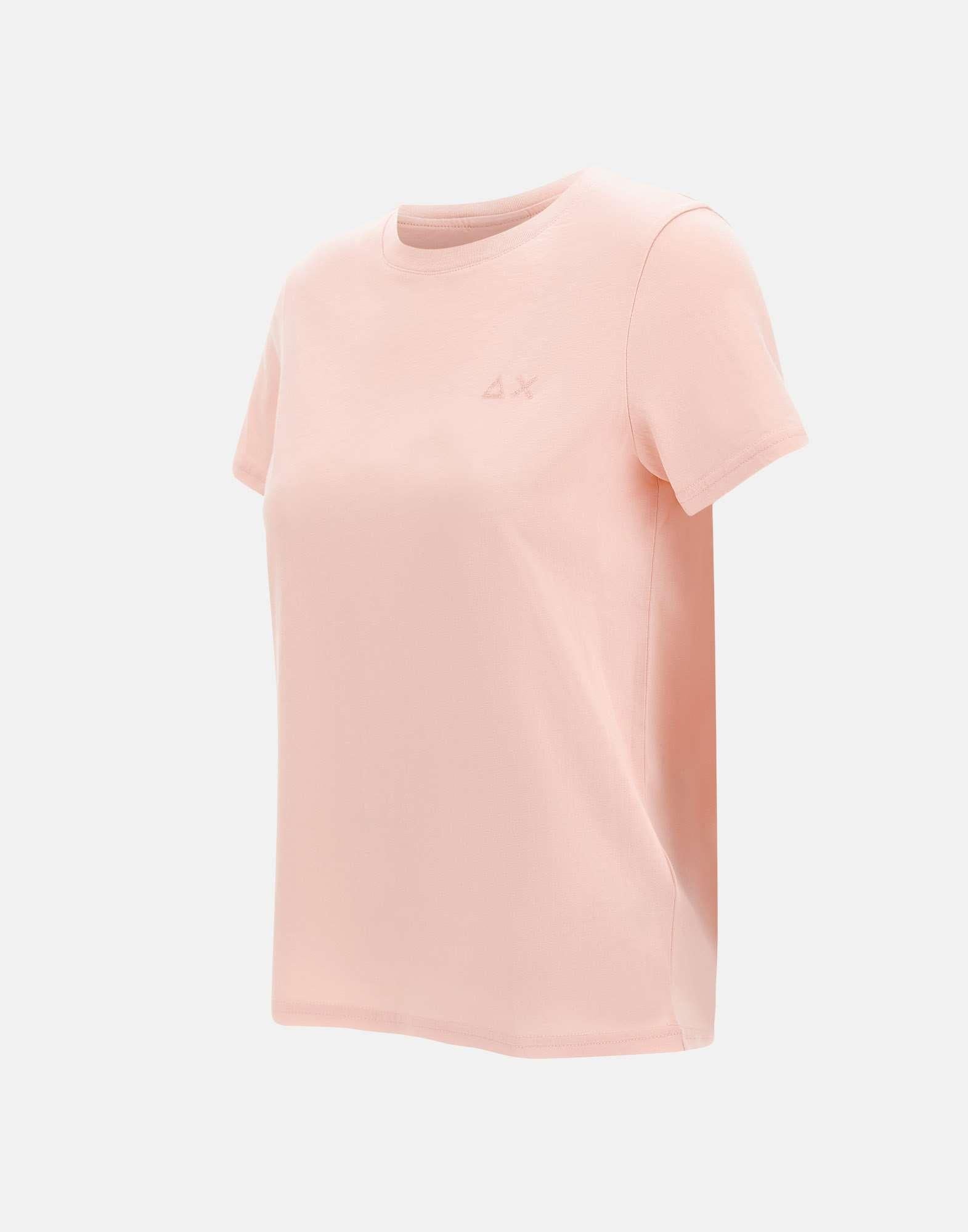 T-shirt donna Sun68 "Basic S/S" in jersey di cotone colore rosa salmone, dal design semplice e raffinato. Presenta maniche corte, girocollo e logo con paillettes sul petto che aggiunge un tocco luminoso e femminile. La vestibilità regular fit garantisce comfort e versatilità, perfetta per look casual con un accento brillante.