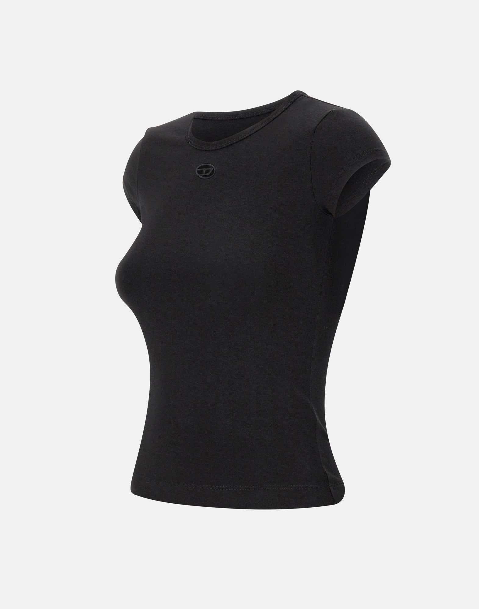 T-shirt "T-Angie" Diesel nel colore nero è un capo essenziale dal design pulito e contemporaneo. Realizzata in 100% cotone organico, garantisce comfort, traspirabilità e rispetto per lambiente. Il modello presenta maniche corte, scollo tondo classico e una vestibilità regular fit, perfetta per un look casual ma curato. Il dettaglio distintivo è il logo Oval D Diesel ricamato al centro sul davanti, simbolo di autenticità e stile urbano.