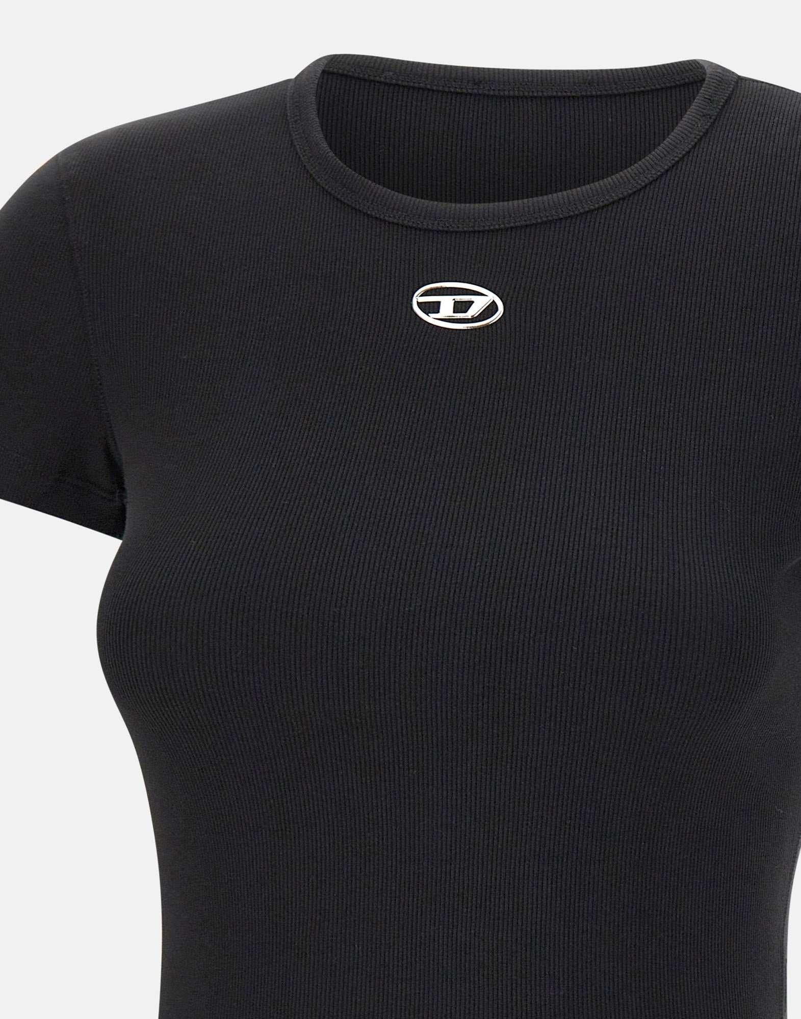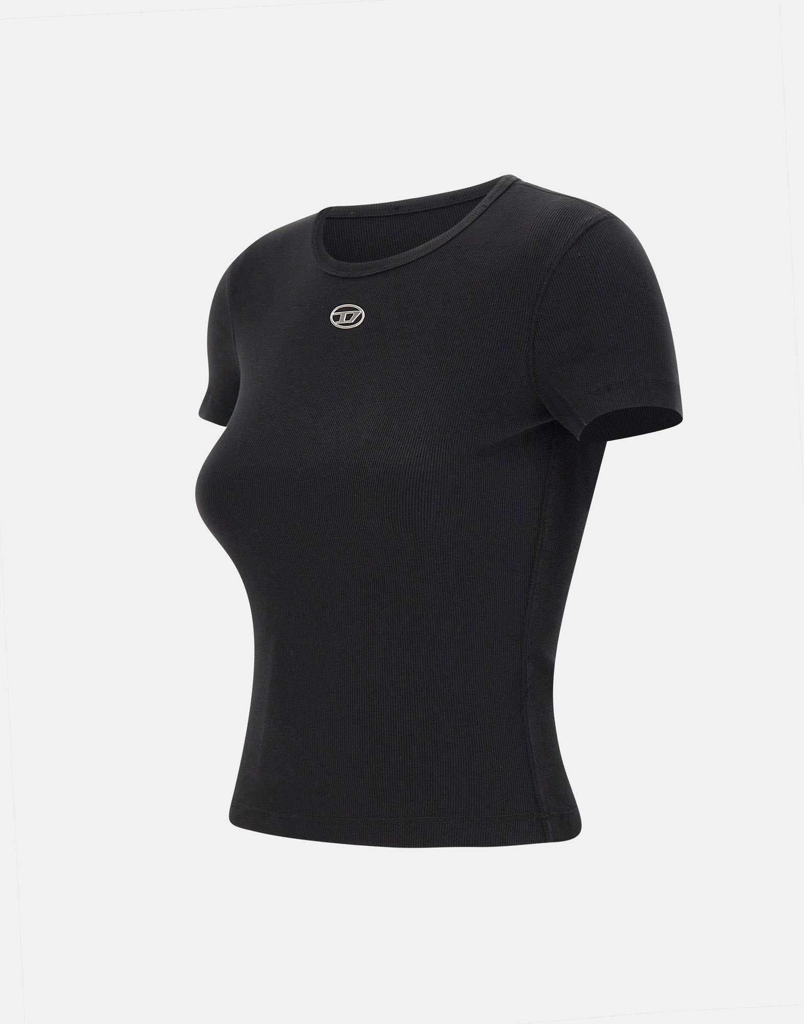 T-shirt "T-ele-long" Diesel nel colore nero è un capo essenziale dal design pulito e contemporaneo. Realizzata in 100% cotone organico stretch, garantisce comfort, traspirabilità e rispetto per lambiente. Il modello presenta maniche corte, scollo tondo classico e una vestibilità regular fit, perfetta per un look casual ma curato. Il dettaglio distintivo è il logo Oval D Diesel silver al centro sul davanti, simbolo di autenticità e stile urbano.