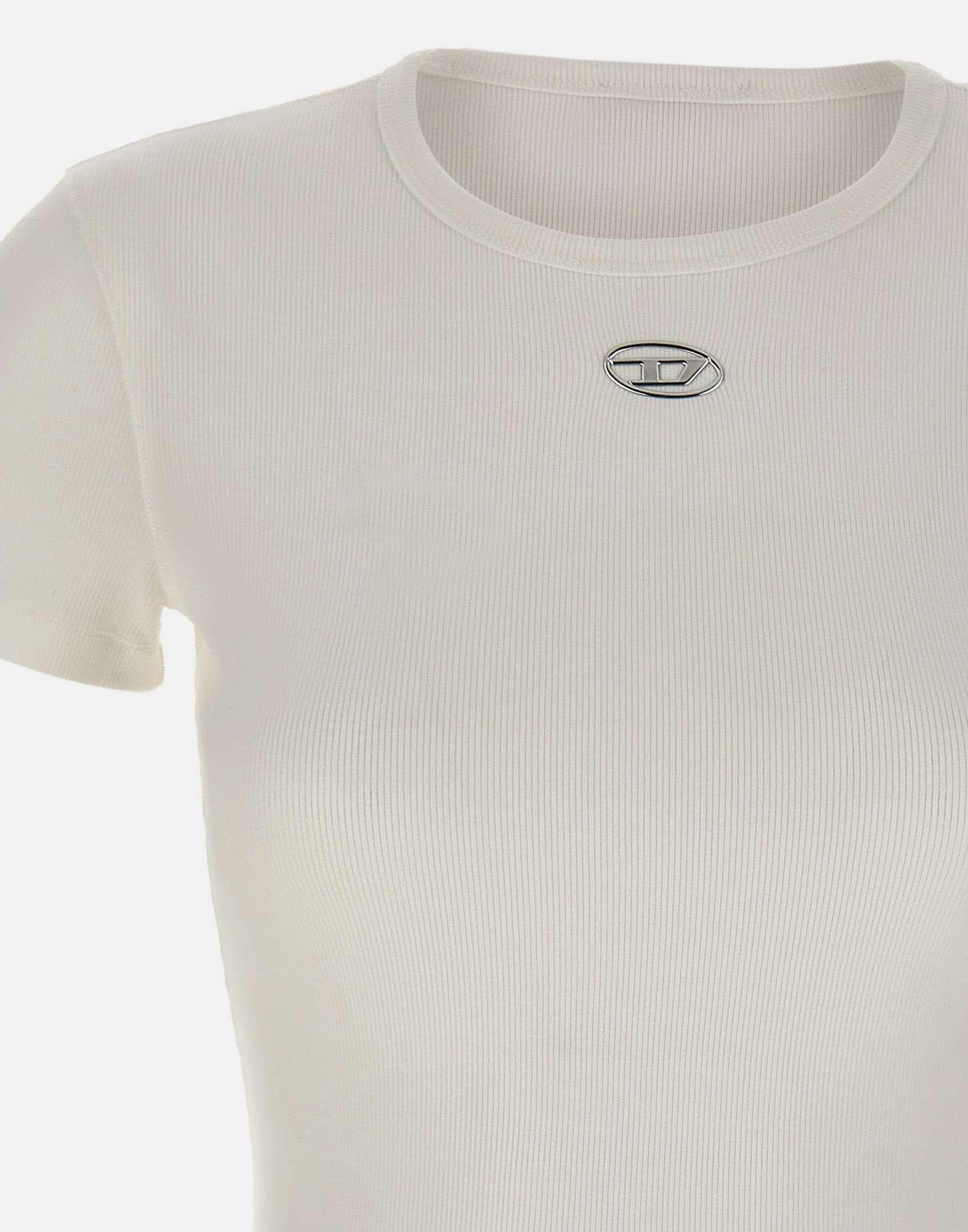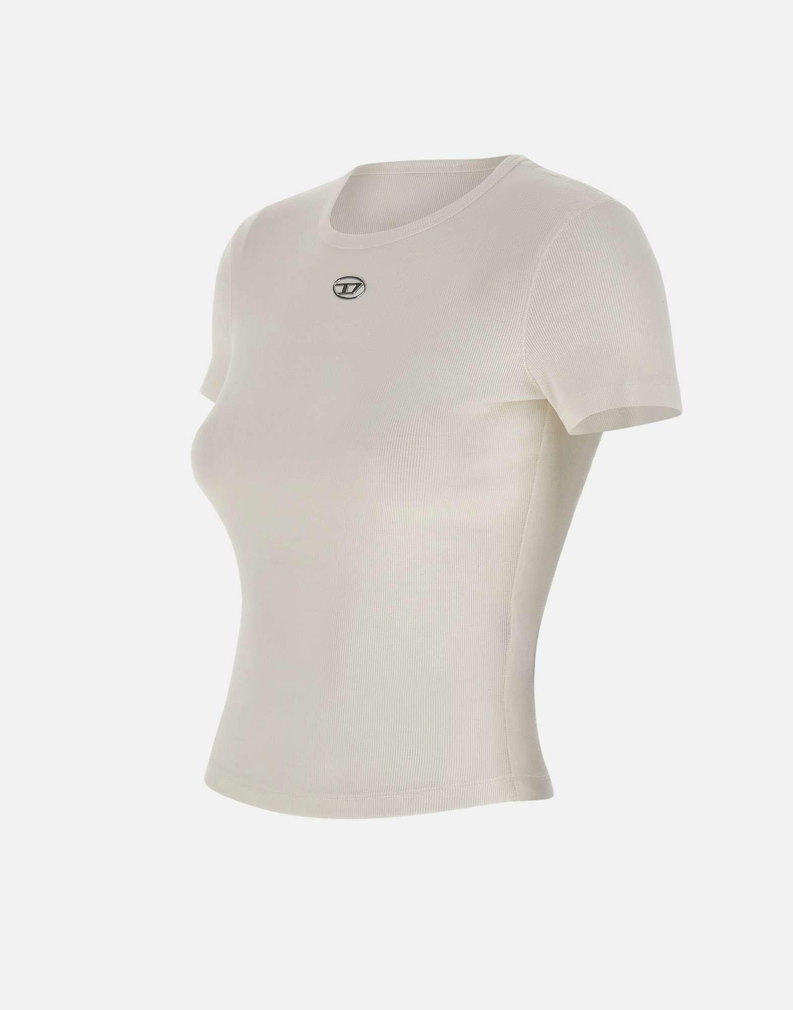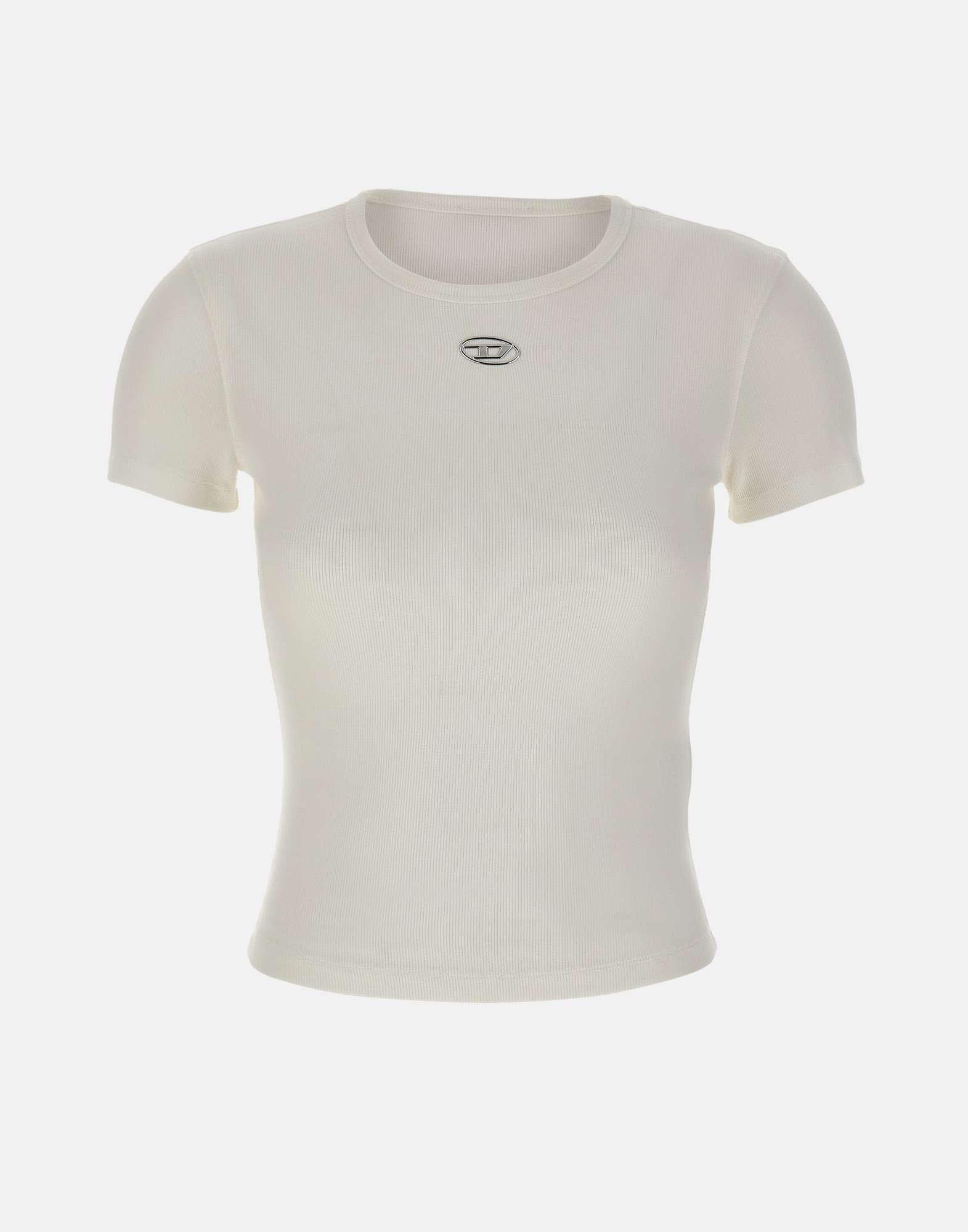 T-shirt "T-ele-long" Diesel nel colore bianco è un capo essenziale dal design pulito e contemporaneo. Realizzata in 100% cotone organico stretch, garantisce comfort, traspirabilità e rispetto per lambiente. Il modello presenta maniche corte, scollo tondo classico e una vestibilità regular fit, perfetta per un look casual ma curato. Il dettaglio distintivo è il logo Oval D Diesel silver al centro sul davanti, simbolo di autenticità e stile urbano.