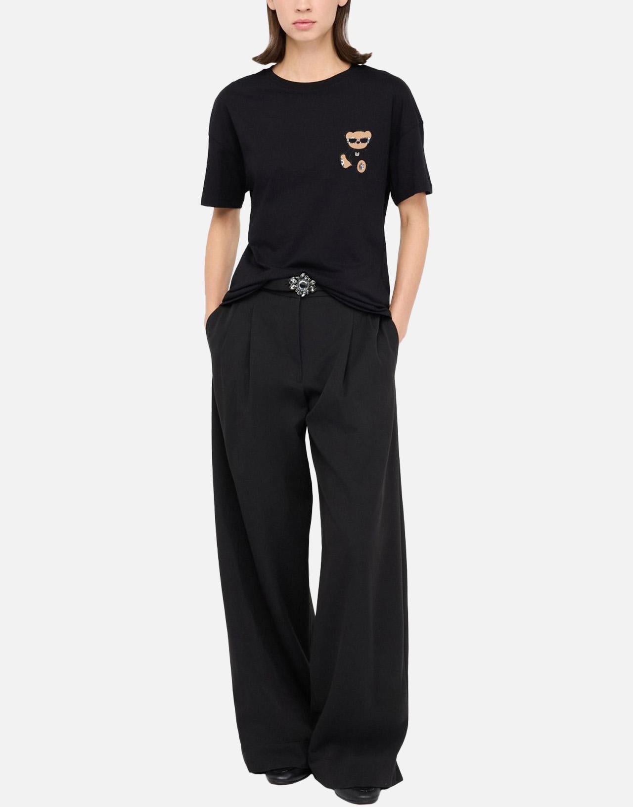 T-shirt Liu-Jo, colore nero, un capo essenziale e versatile, arricchito da dettagli preziosi che la rendono unica. Realizzata in 100% cotone di alta qualità, fa parte della linea sostenibile Liu Jo Better, dedicata a una moda più attenta allambiente. Il design presenta un girocollo classico, maniche corte e una comoda vestibilità regular fit. Il ricamo sul davanti è impreziosito da strass applicati, per un tocco brillante e femminile. Perfetta da indossare con jeans, pantaloni o gonne, sia per il giorno che per la sera.