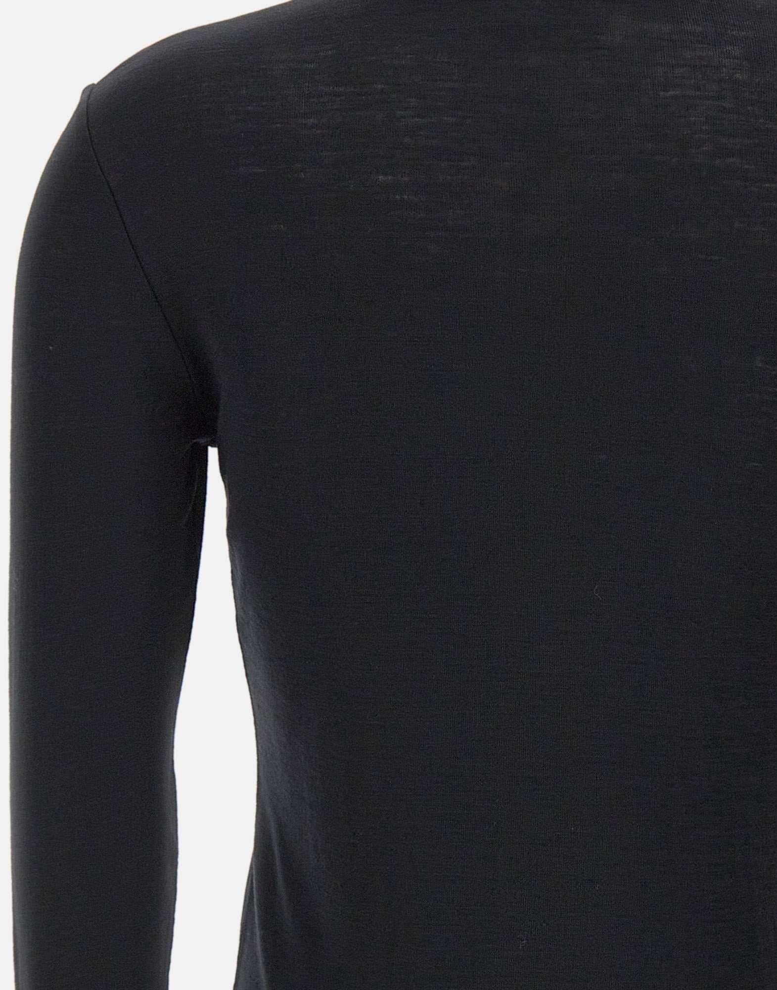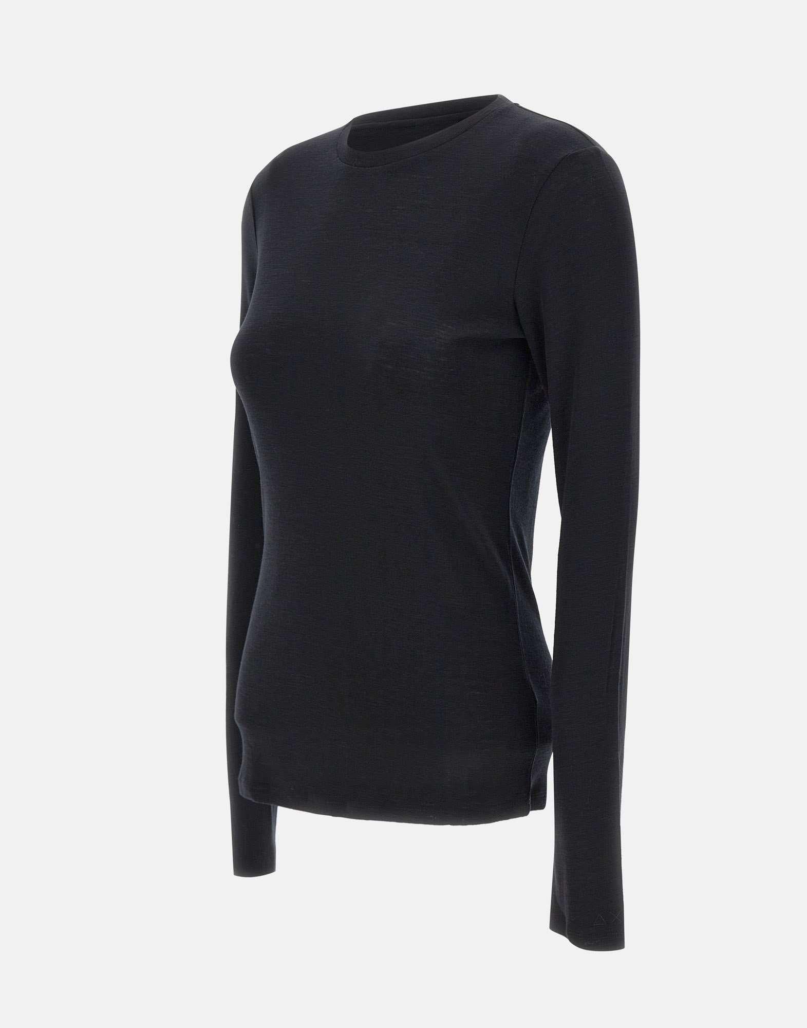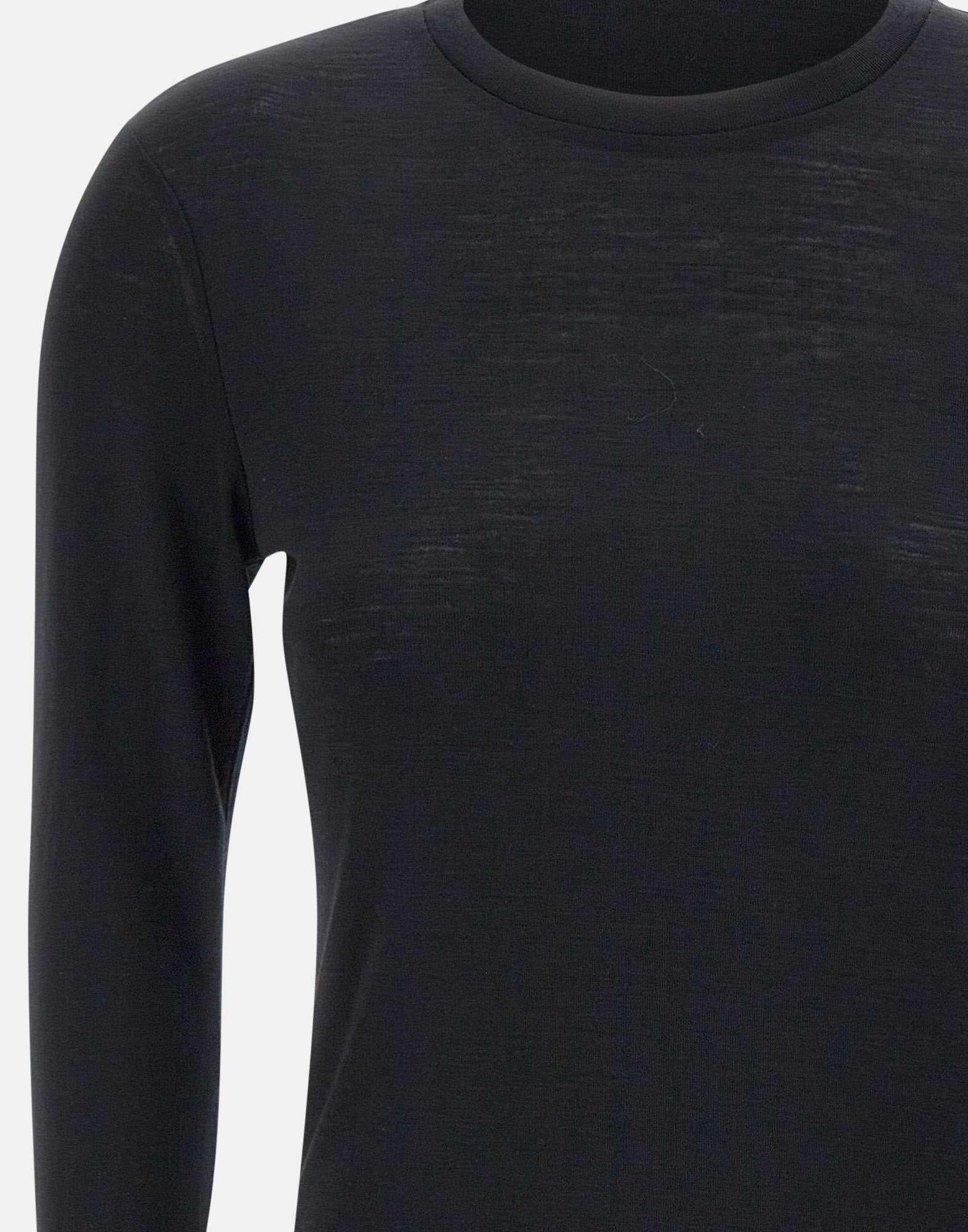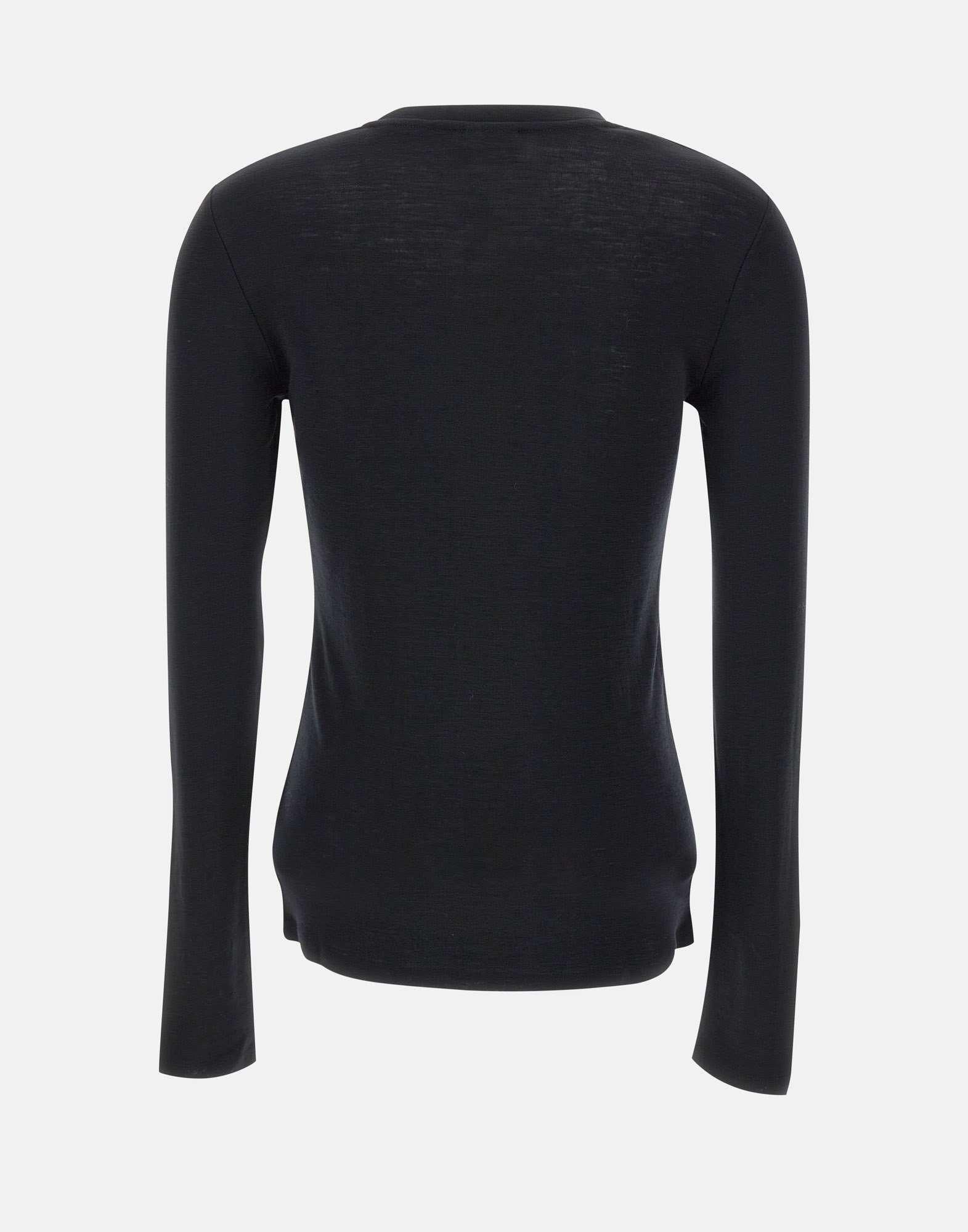 T-shirt donna Sun68 in lana merino extra fine color nero, morbida e leggera al tatto. Presenta maniche lunghe, scollo tondo e vestibilità regular fit per un comfort naturale e una linea essenziale. Un capo versatile e raffinato, perfetto da indossare da solo o come strato sotto giacche e maglie nei mesi più freddi.