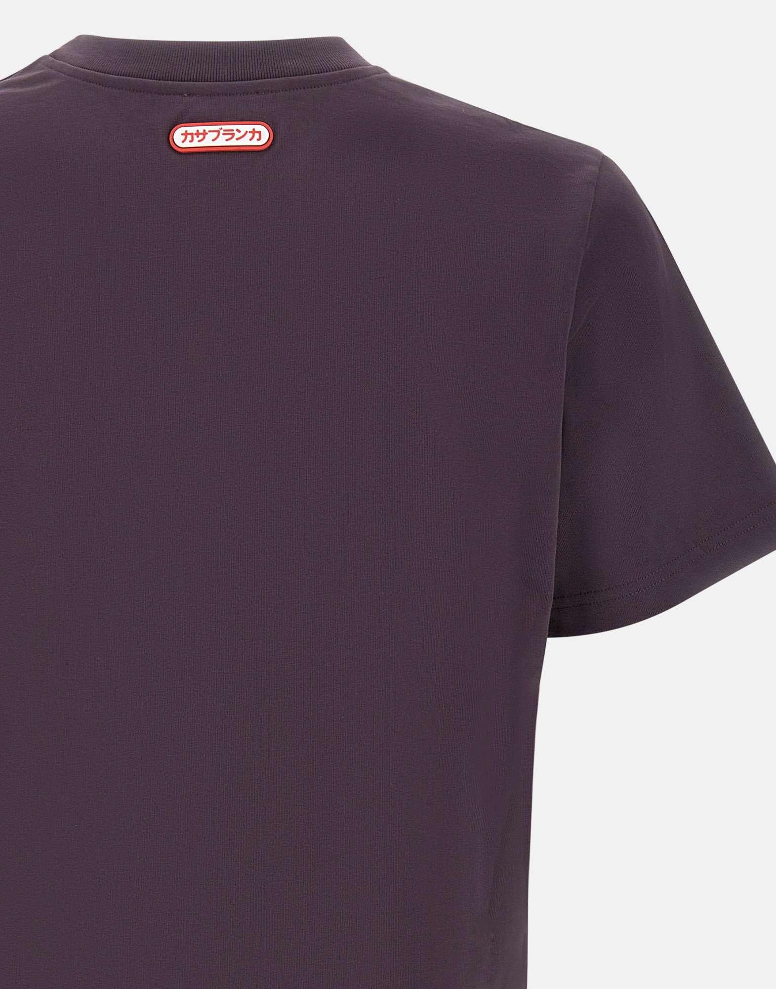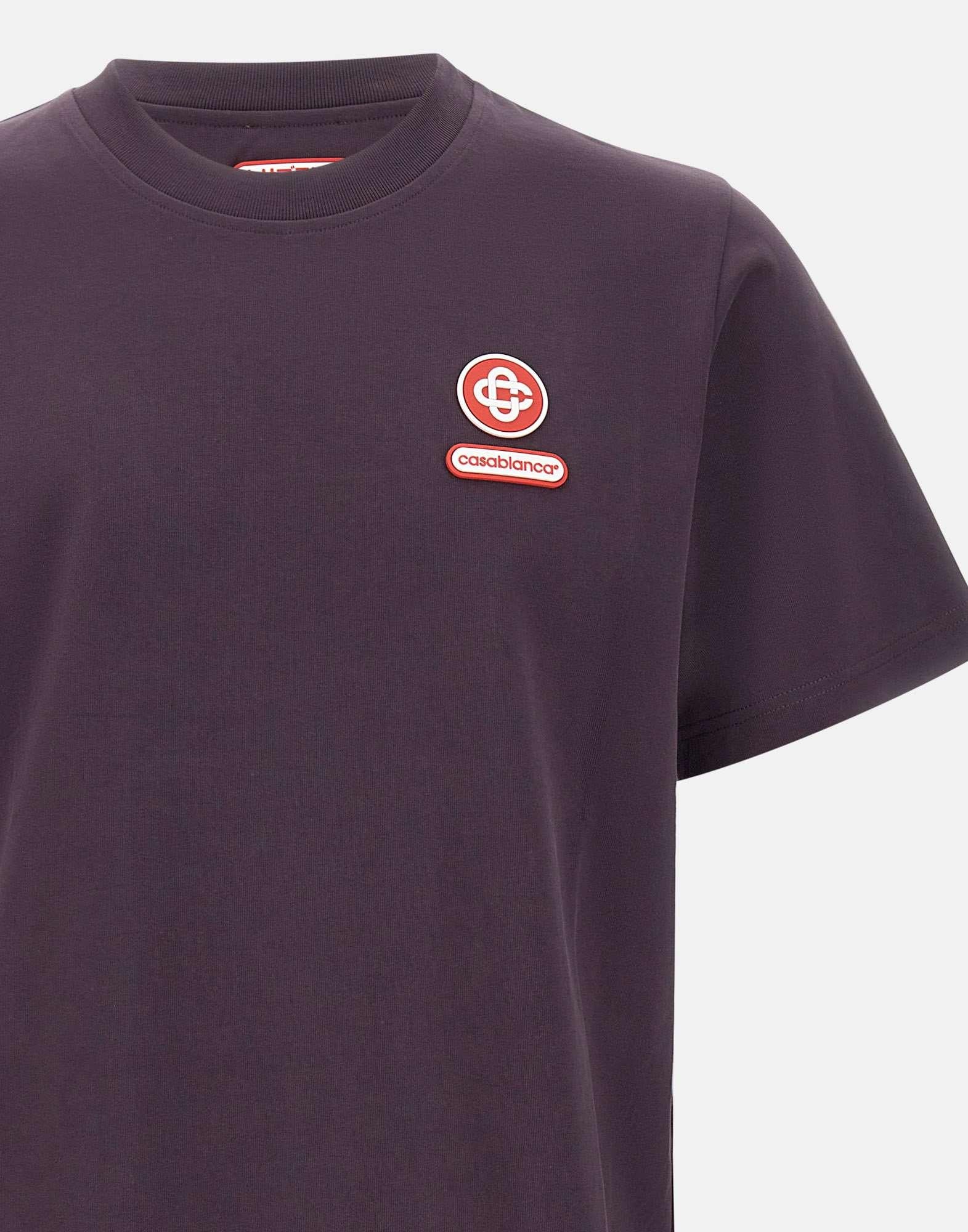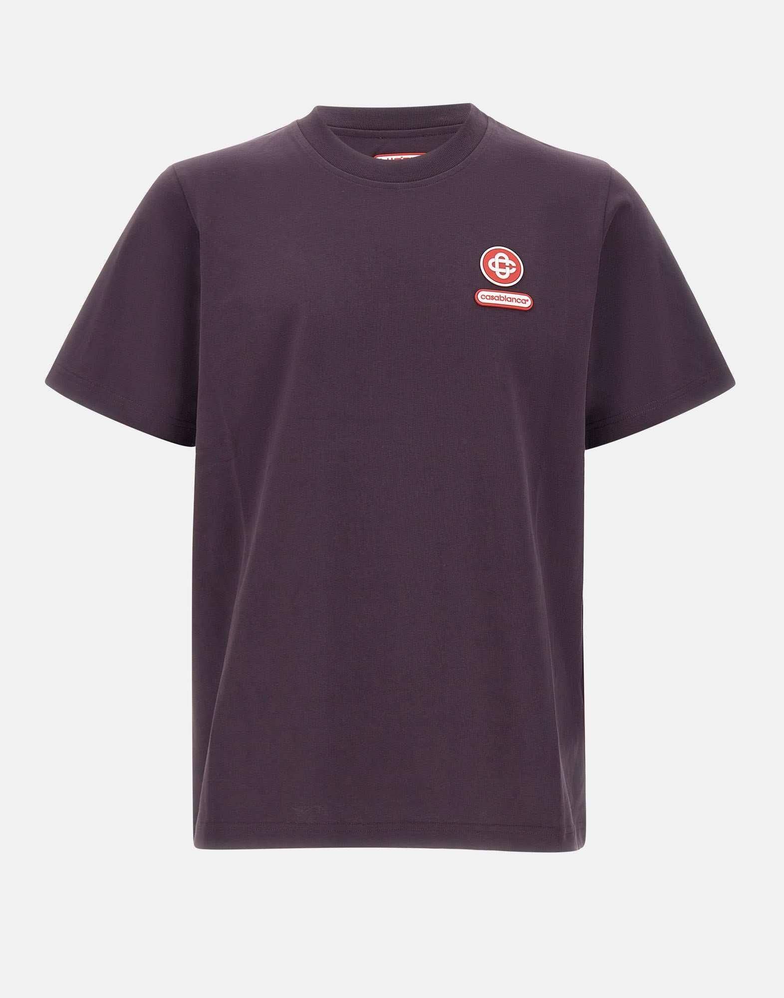 T-shirt uomo Casablanca "Logo patch" realizzata in cotone biologico color viola. Il modello presenta il caratteristico logo CC intrecciato applicato sul petto e un classico girocollo a costine che definisce il design essenziale. La vestibilità rilassata garantisce comfort e un'attitudine contemporanea.