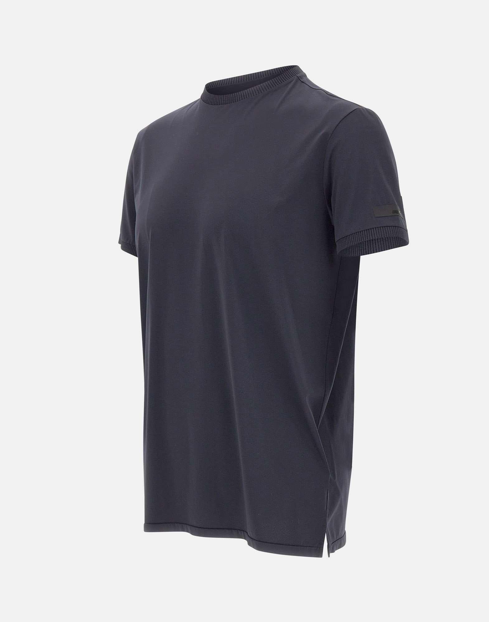 T-shirt uomo RRD "Oxford Gdy Shirty" realizzata in tessuto Oxford color blu scuro, leggera, traspirante e dal tocco delicatamente morbido. Il design minimalista e senza tempo è arricchito dalla lavorazione a costine elasticizzate su girocollo e maniche corte, realizzata nello stesso filato, che definisce la vestibilità attraverso un raffinato contrasto di texture. Il tessuto elasticizzato assicura comfort e freschezza, rendendo questa t-shirt ideale per completare look casual e semi formali, anche sotto il blazer come alternativa contemporanea alla camicia. Il filetto arancio fluo sul fondo e il logo a microiniezione nero sulla manica sinistra aggiungono una nota distintiva ed esclusiva. Vestibilità regolare.