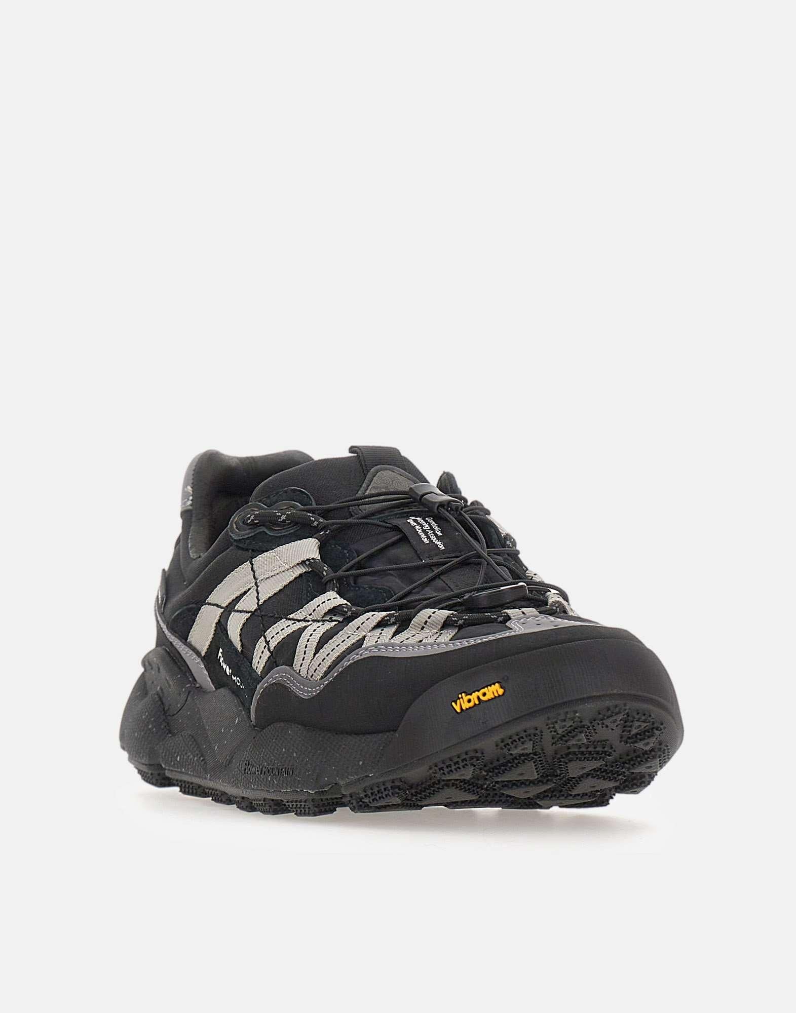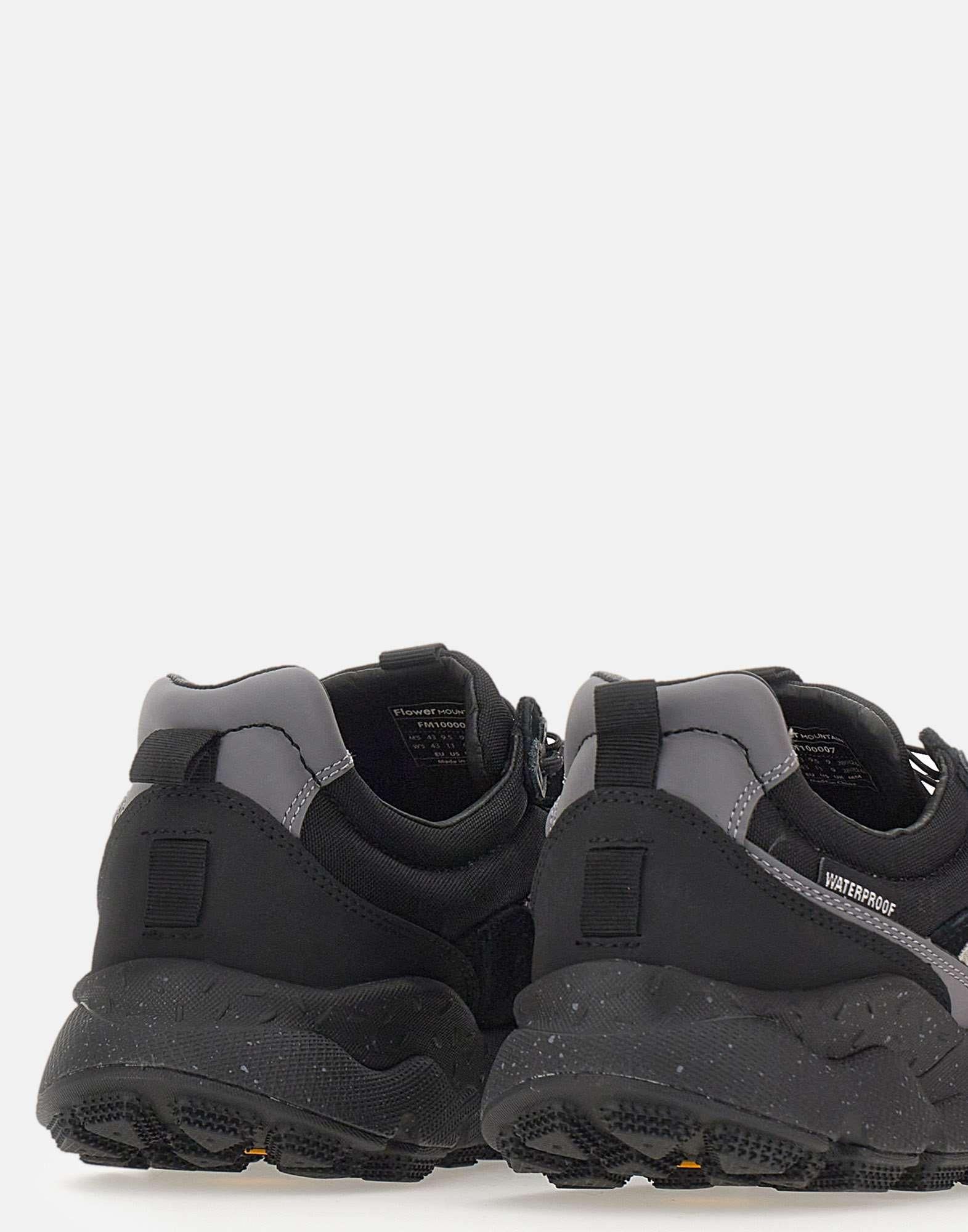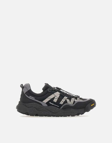 Sneakers Flower Mountain "Iwano 2Uni" nero e grigio, realizzate in tessuto tecnico e suede con membrana waterproof che garantisce protezione e traspirabilità. Dotate di stringhe tecniche con sistema quick stop per una calzata rapida e sicura, soletta interna in sughero naturale antibatterico e suola Vibram con disegno Megagrip per massima aderenza e stabilità. Rifinite con tirante posteriore e loghi del brand. Calzata regolare.