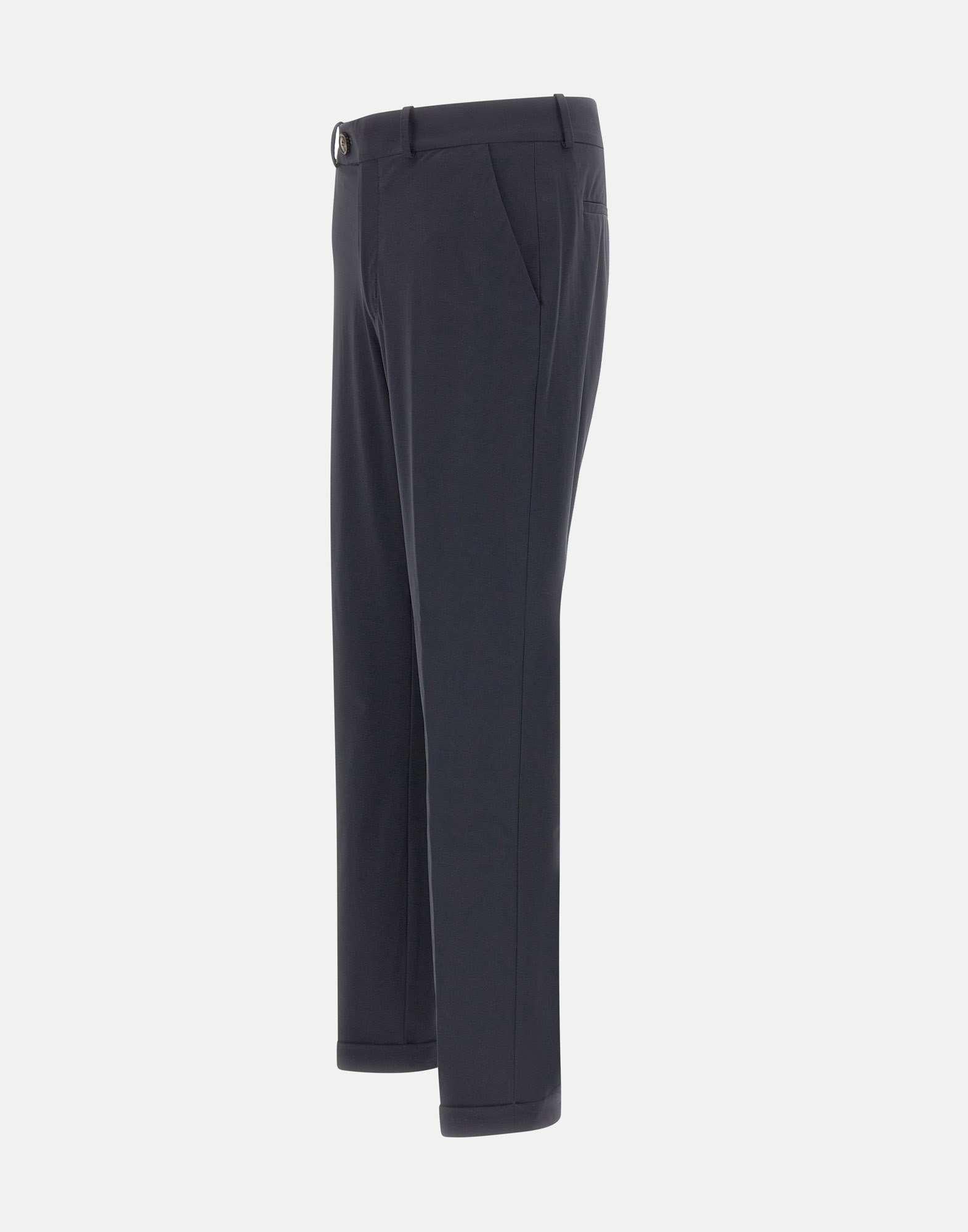 Pantaloni uomo RRD "Surflex Soft Touch Chino" realizzati nell'esclusivo tessuto stretch SURFLEX smerigliato color blu scuro, morbido e confortevole, con look opaco ispirato alla gabardina e costruzione classica dal taglio pulito. Il modello presenta vita a passanti e chiusura con zip nascosta dalla patta, tasche anteriori alla francese e tasche posteriori a filetto rifinite dall'inconfondibile logo a microiniezione nero. All'interno, la fascia è stampata nel Monogram Razzle Dazzle e sottolineata dalla termonastratura "Made with love, designed in Tuscany". Le qualità antipiega ed easy care rendono questi chino ideali per ufficio, occasioni formali e viaggi, perfetti anche per completare un blazer coordinato in un outfit professionale. Fit regolare e gamba dritta, con risvolto alla caviglia di 3,5 cm. Ampiezza fondo: 17 cm.