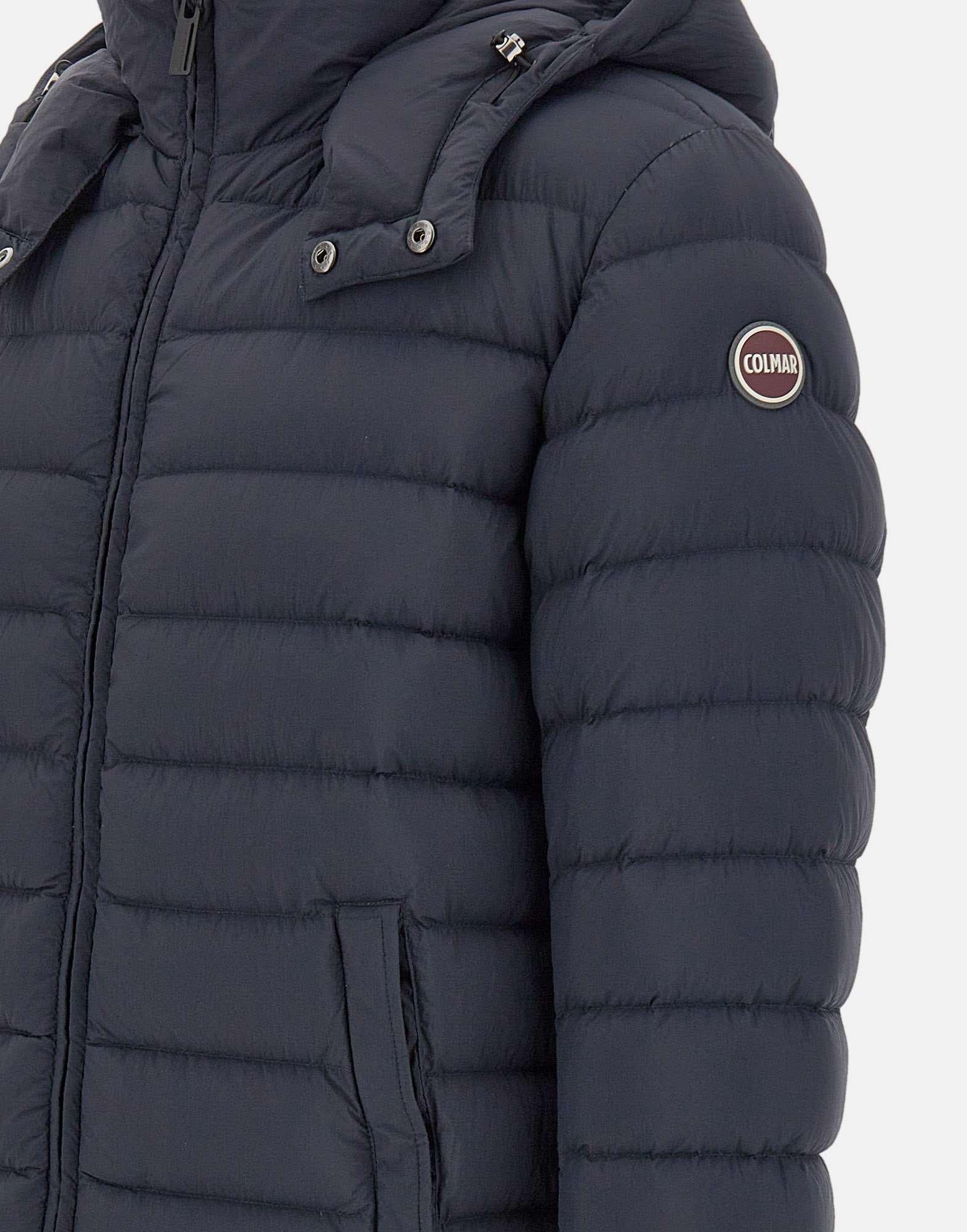 Piumino uomo Colmar Originals "Mindset" in tessuto opaco blu, water resistant. Chiusura frontale con zip a doppio cursore, cappuccio staccabile con coulisse di regolazione e spacchetti laterali con zip per maggiore comfort di movimento. Dotato di tasche laterali e tasca interna con zip. Imbottitura in piuma naturale per un isolamento termico ottimale. Logo Colmar Originals applicato sulla manica sinistra e patch logo sul retro. Regular fit.