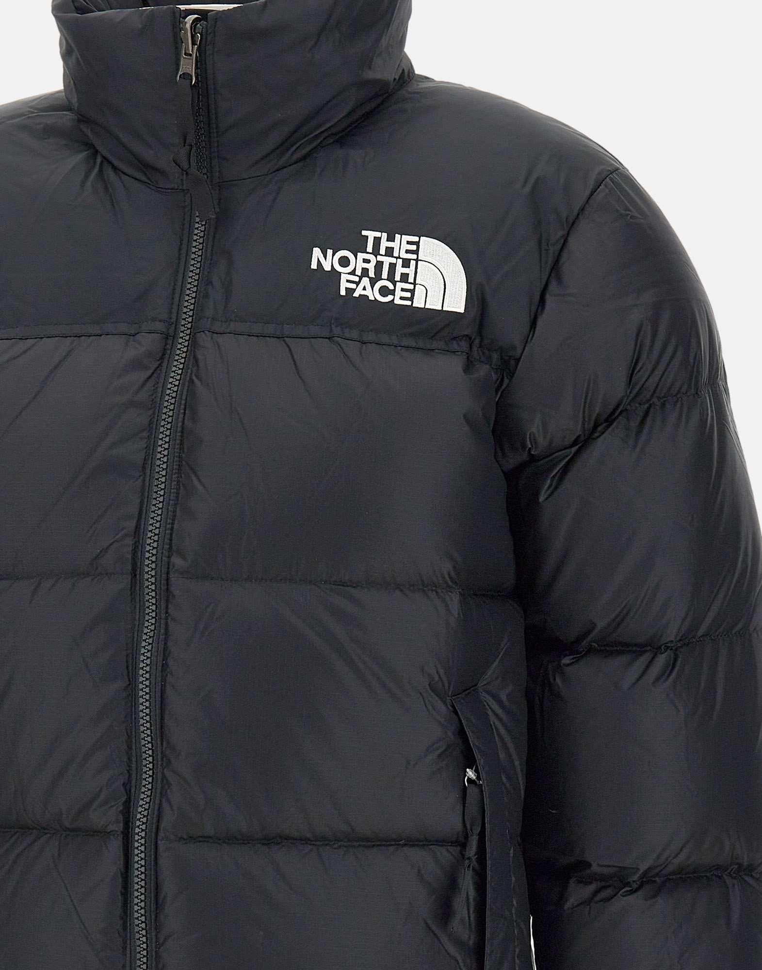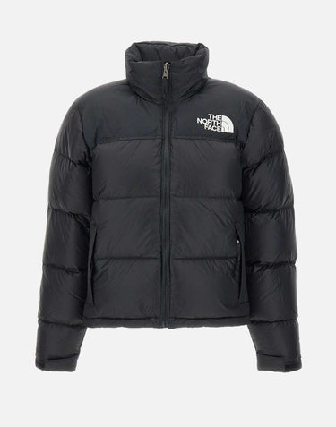 Piumino donna The North Face "W 1996 Retro Nuptse", nero, taffetà di nylon riciclato, modello che richiama la tendenza anni '90, design squadrato, imbottitura in piuma d'oca RDS, finitura idrorepellente, cappuccio nascosto, chiusura frontale con zip, due tasche laterali con zip, iconico logo bianco ricamato sul petto e sul retro, coulisse al fondo per regolare la vestibilità, oversize fit