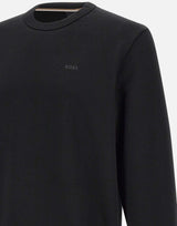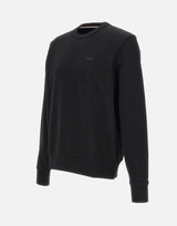Felpa uomo Boss modello "H Sharpe", realizzata in cotone e proposta in nero. Il design presenta maniche lunghe, scollo tondo e bordi a costine, con interno garzato per garantire comfort e morbidezza. Il logo ricamato sul petto aggiunge un tocco distintivo. Vestibilità relaxed.